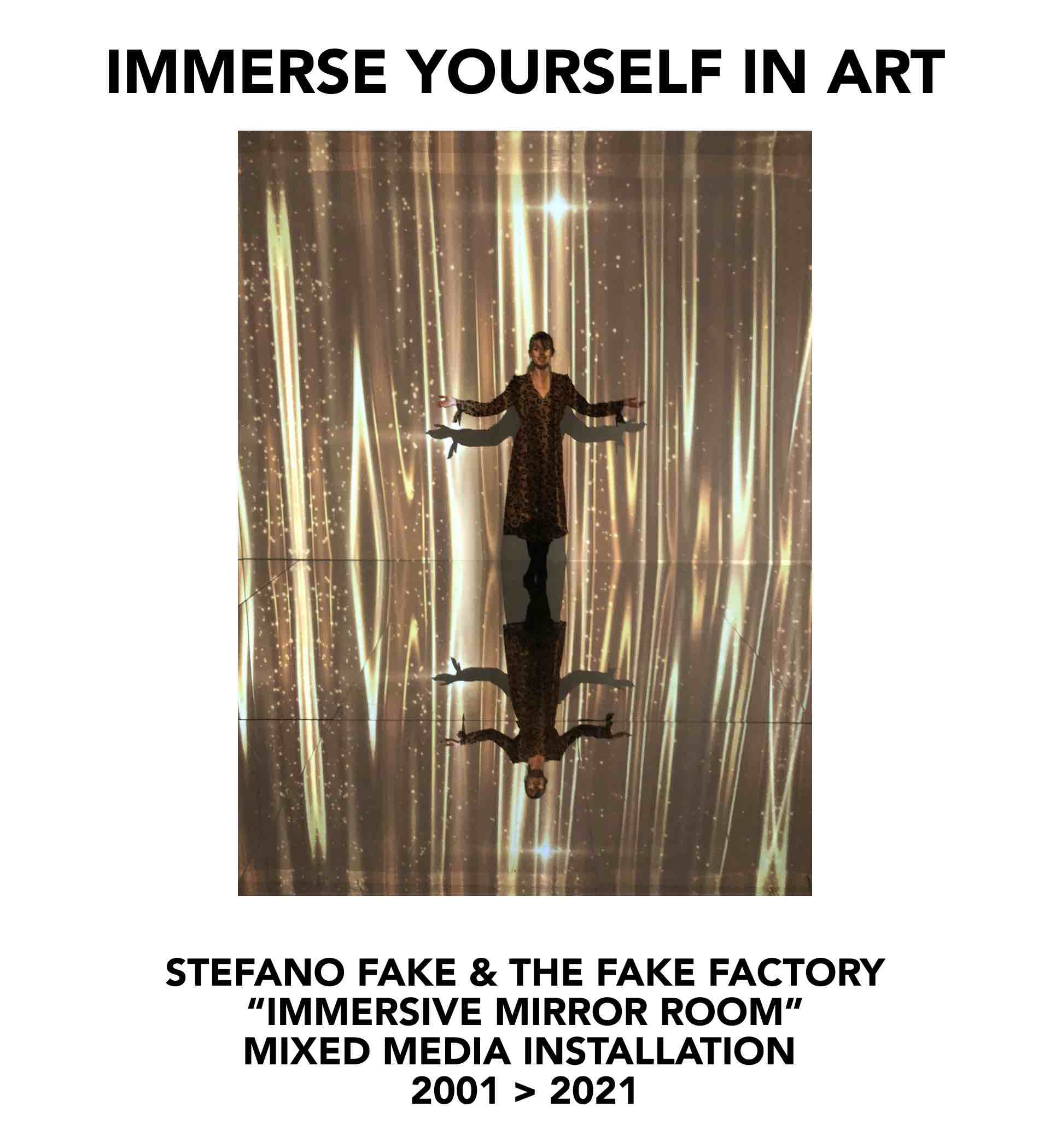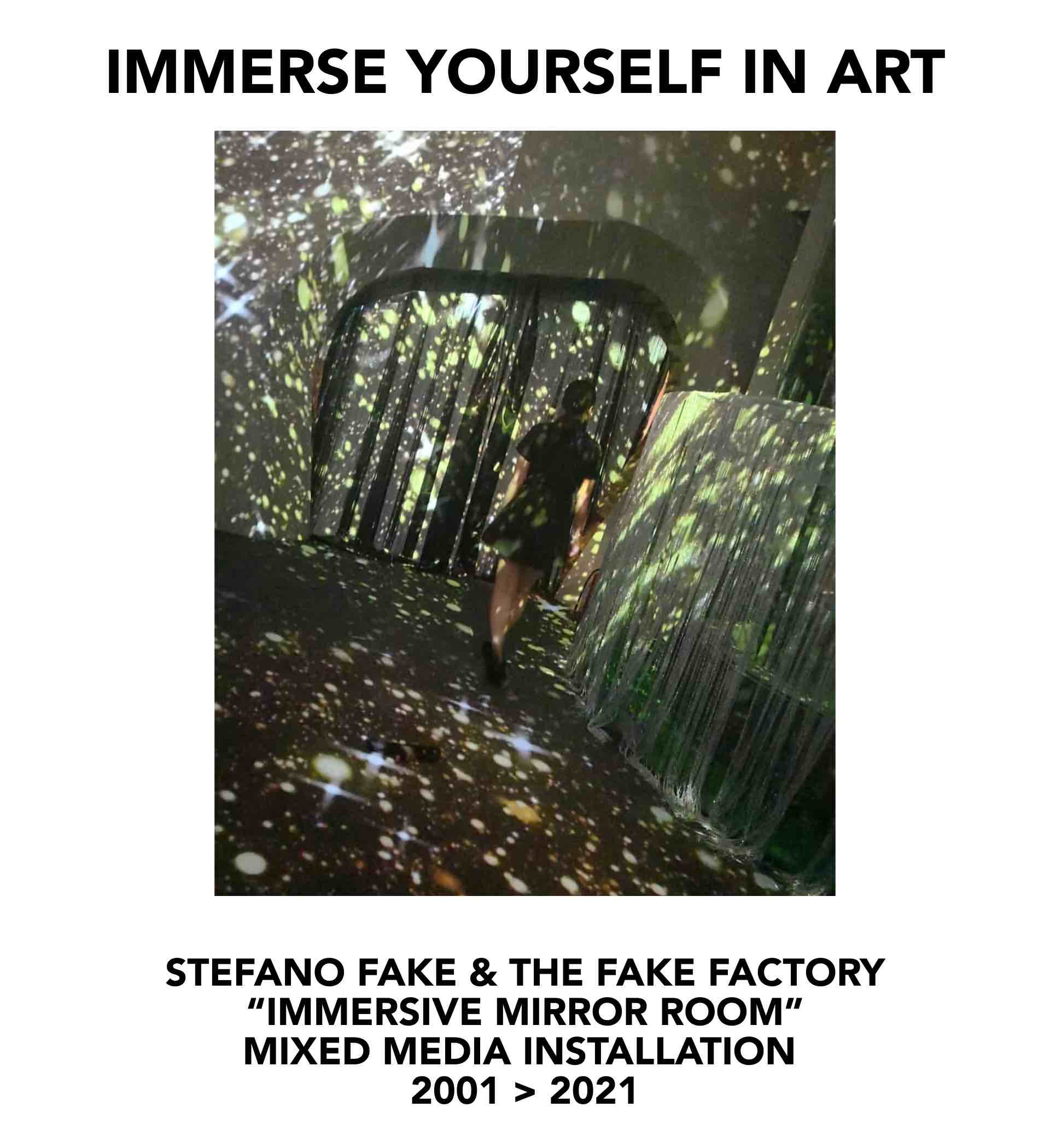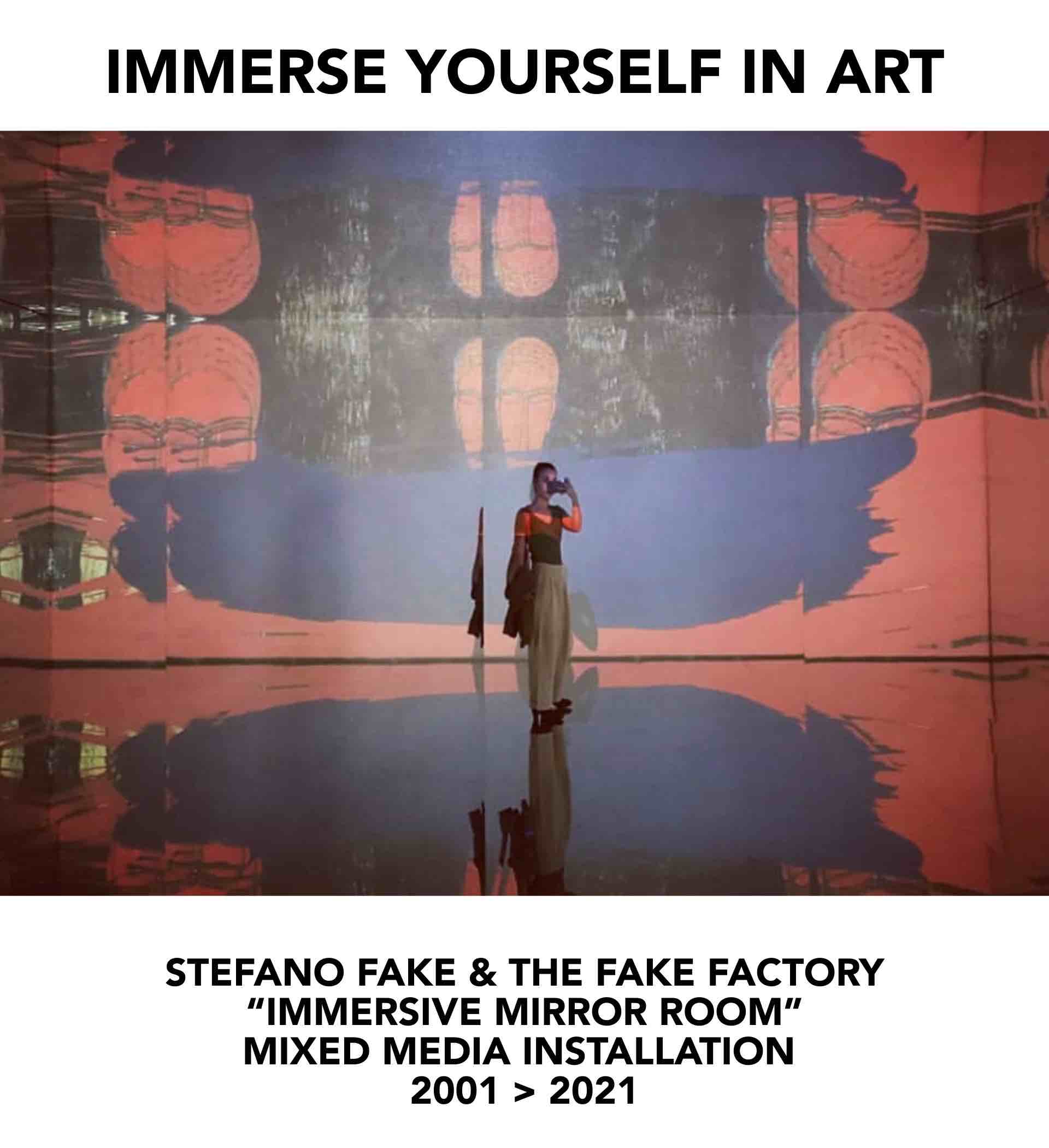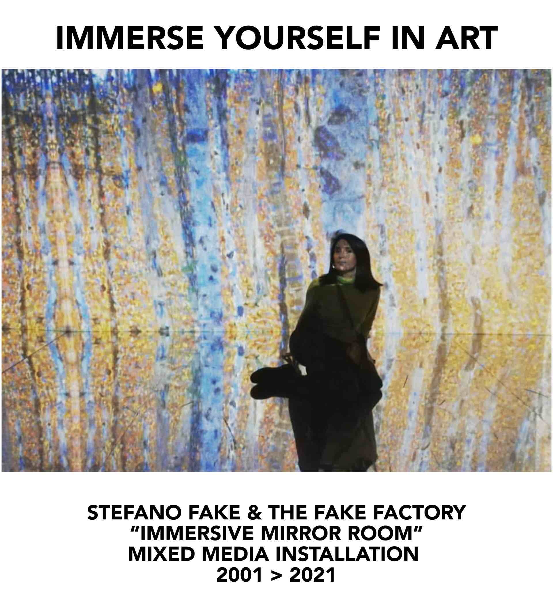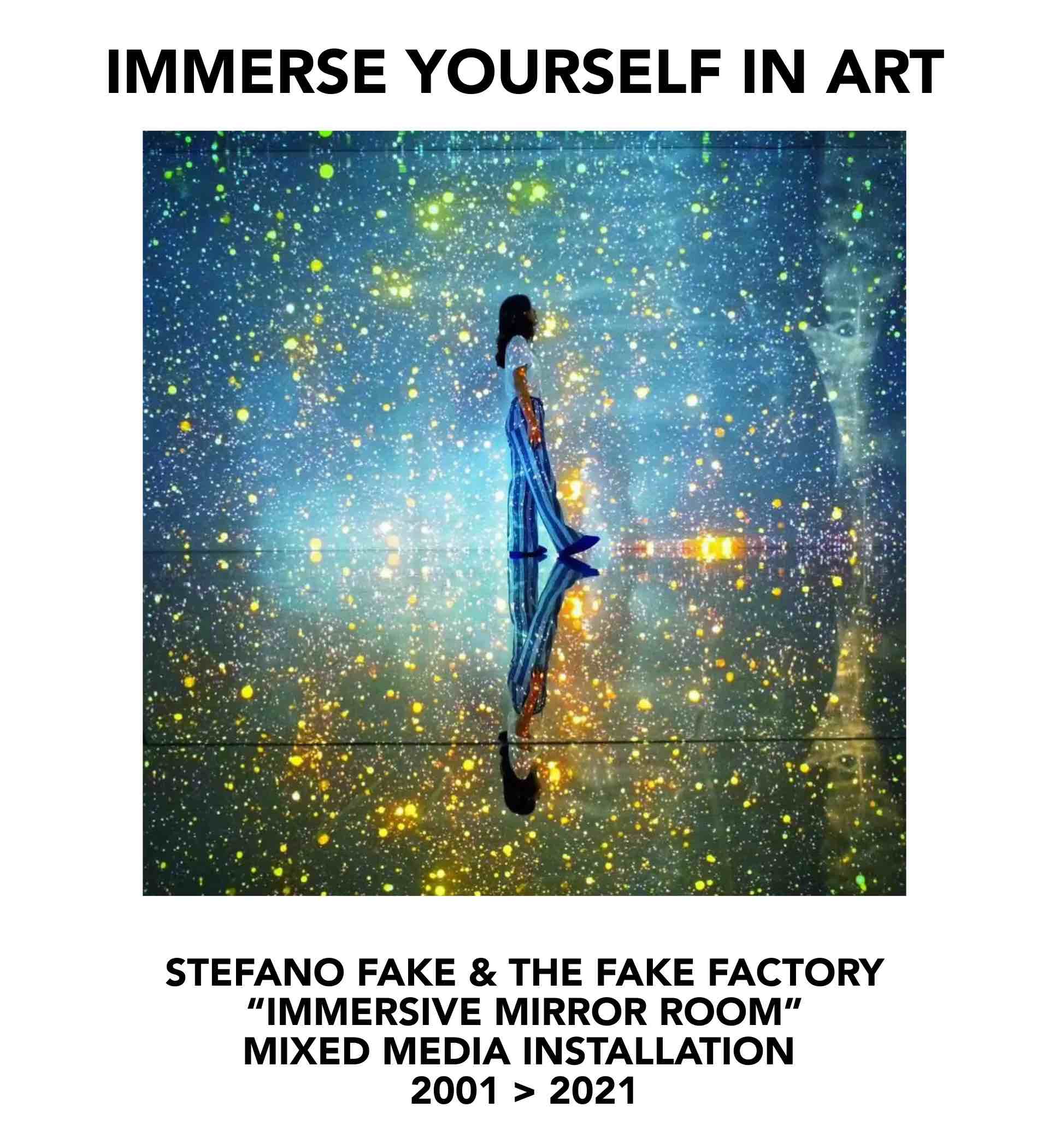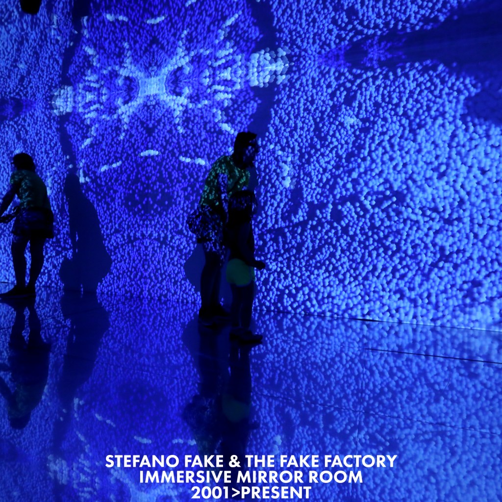 L’installazione “Immersive Mirror Room” è stata creata dall’artista italiano Stefano Fake nel 2001. Già nel 2001 ha iniziato a sviluppare stanze immersive, molto prima che il concetto diventasse una tendenza globale. Le sue immersive mirror rooms hanno attratto milioni di visitatori nel corso degli anni, contribuendo a definire il linguaggio dell’arte digitale e immersiva. Questa innovativa opera d’arte è stata esposta in varie forme sia in Italia che a livello internazionale, all’interno di festival, eventi e mostre innovative. Dal 2001 ad oggi, milioni di persone hanno visitato le immersive mirror rooms create da Stefano Fake & The Fake Factory.