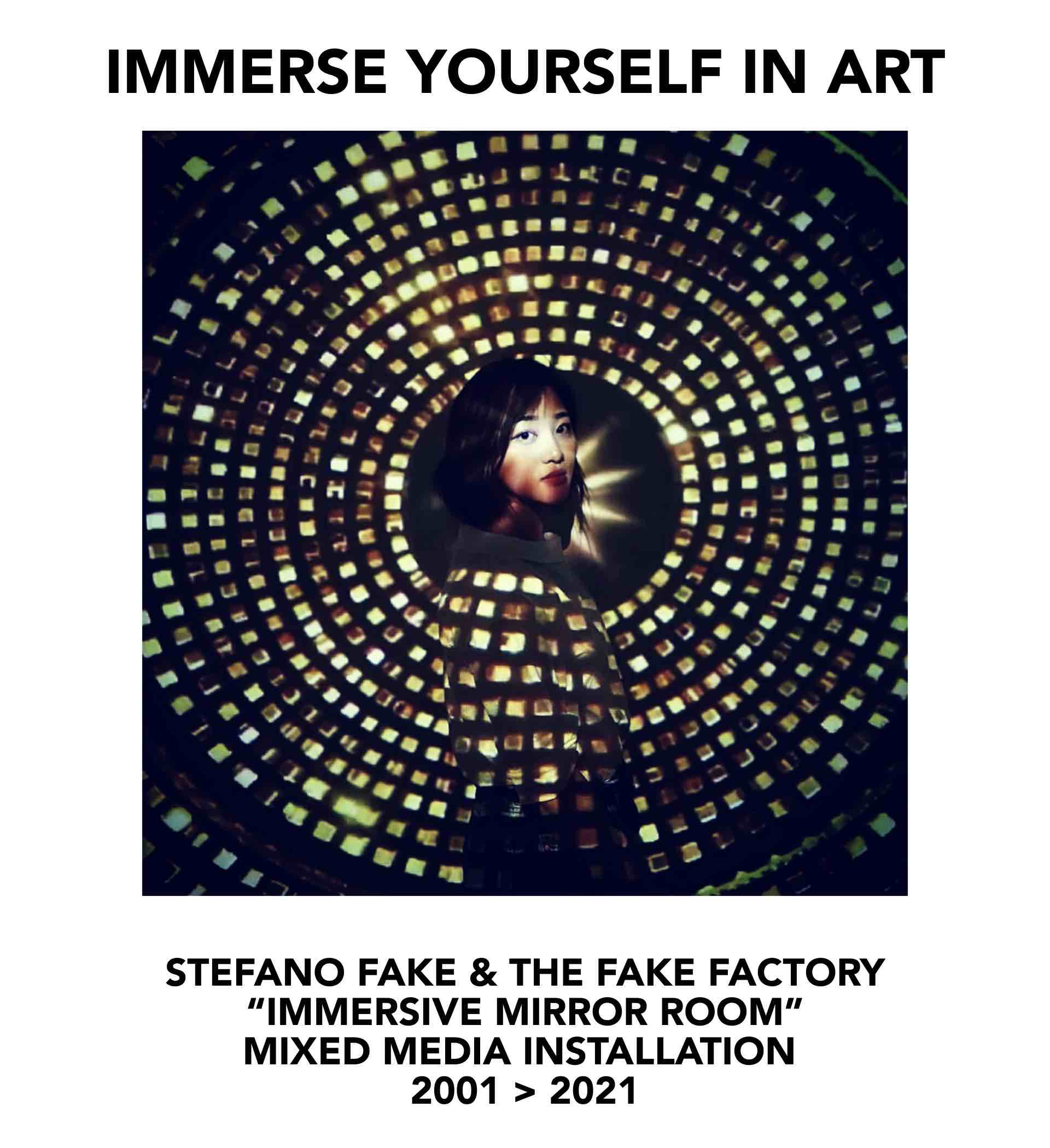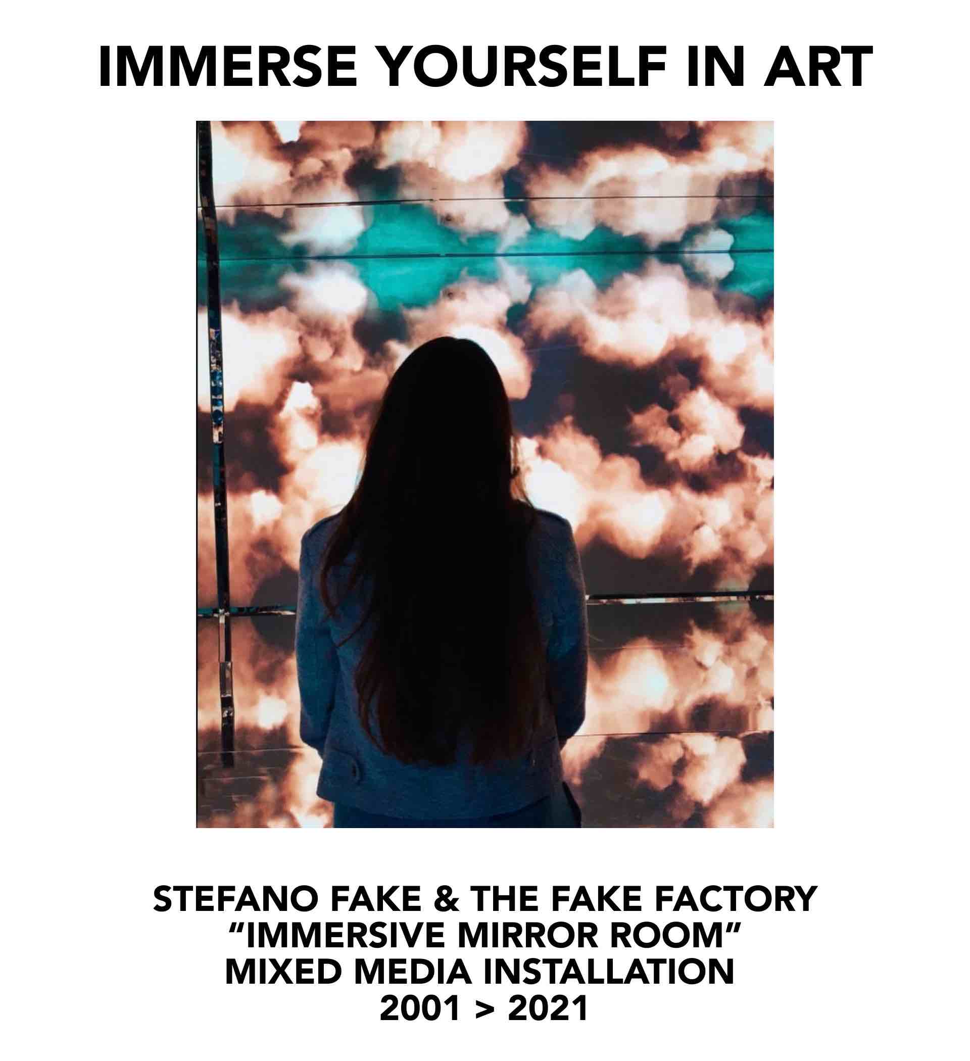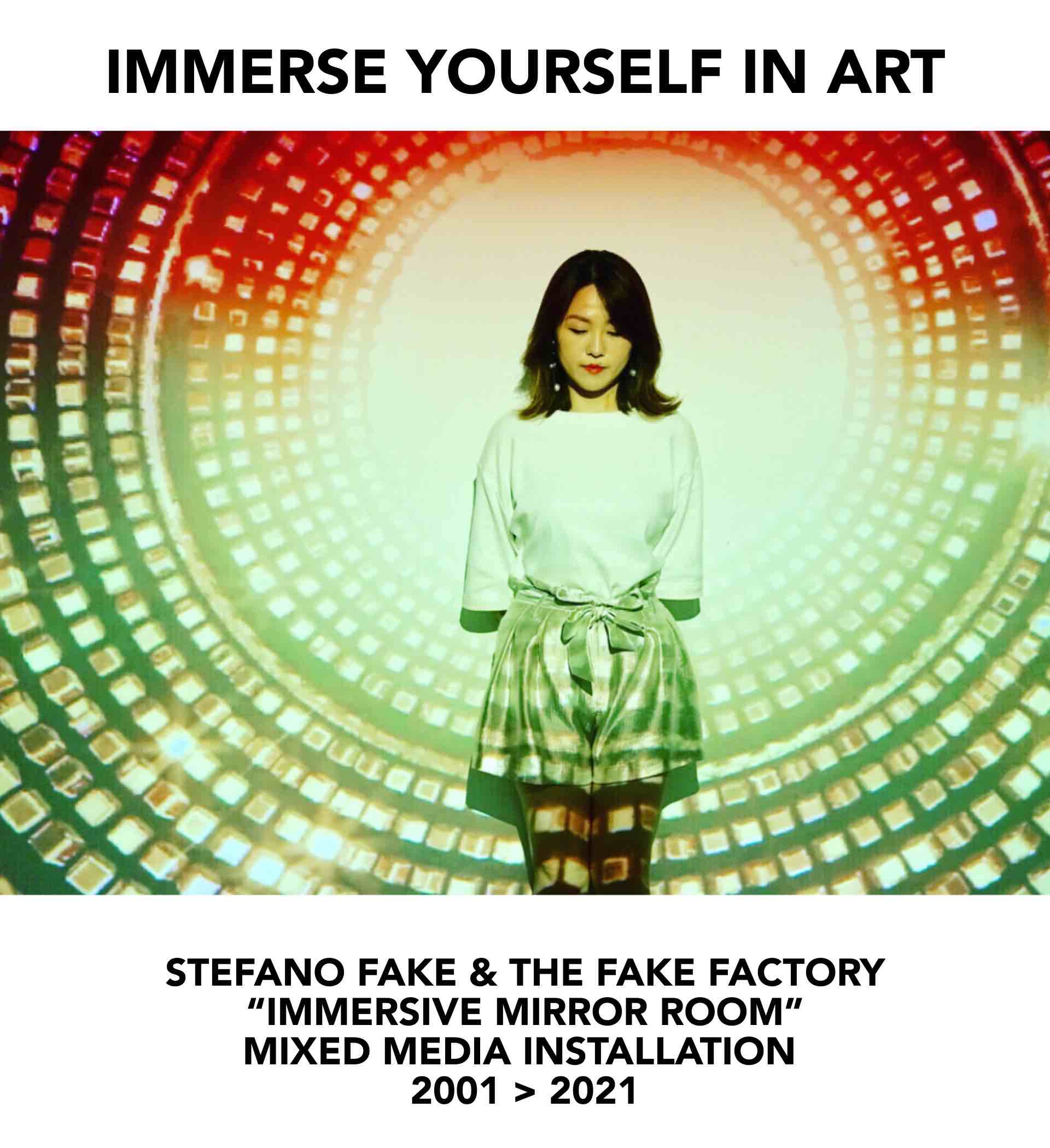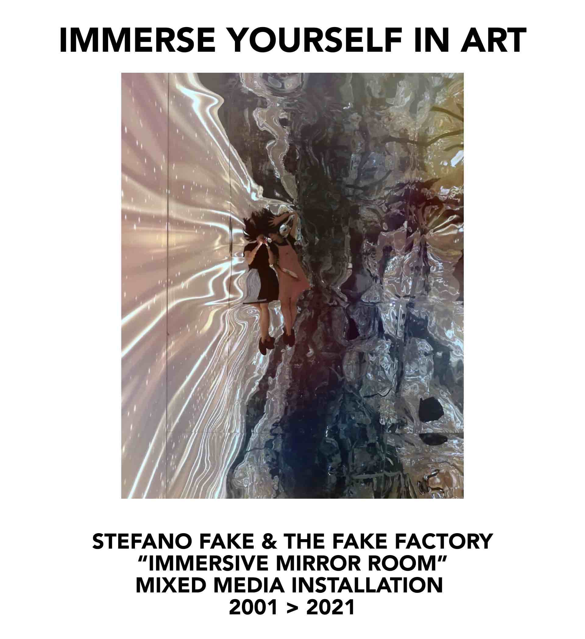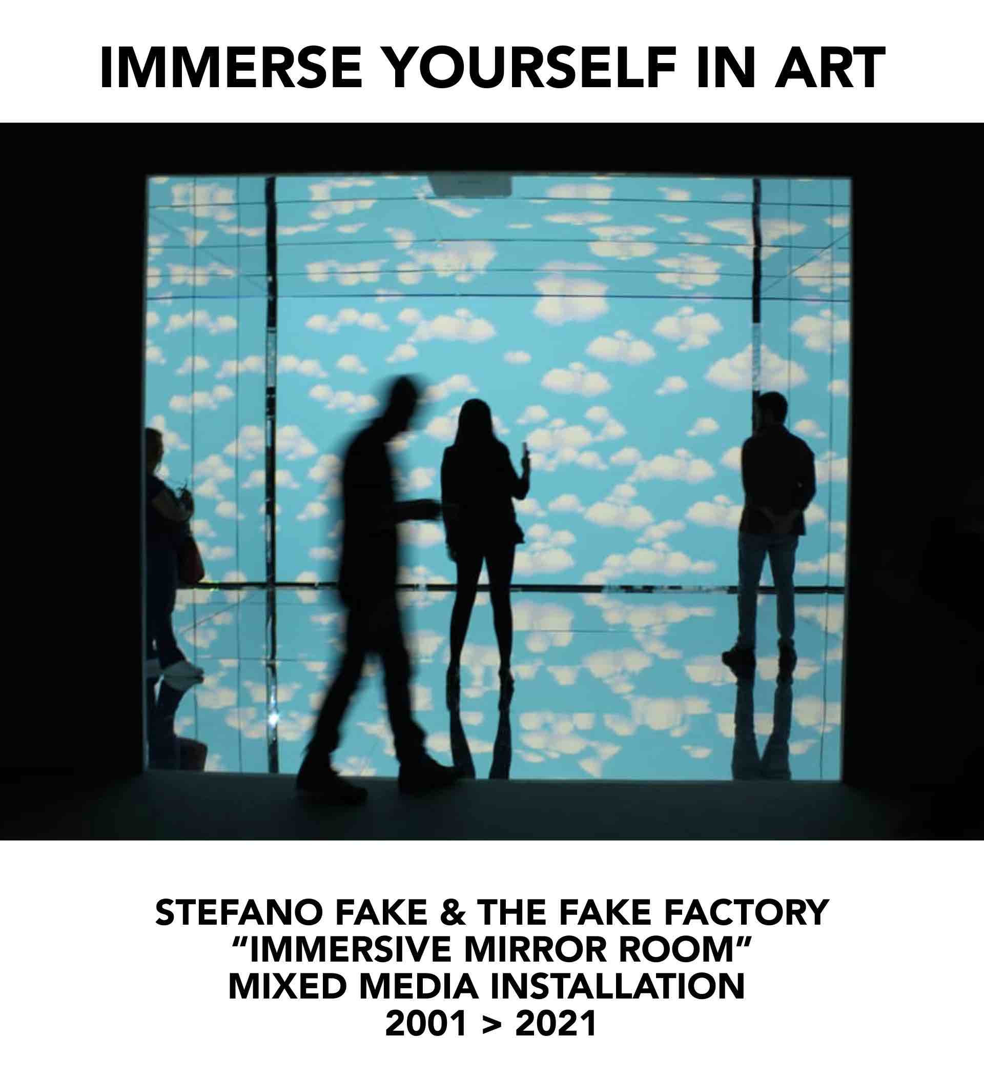 L’installazione “Immersive Mirror Room” è stata creata dall’artista italiano Stefano Fake nel 2001. Già nel 2001 ha iniziato a sviluppare stanze immersive, molto prima che il concetto diventasse una tendenza globale. Le sue immersive mirror rooms hanno attratto milioni di visitatori nel corso degli anni, contribuendo a definire il linguaggio dell’arte digitale e immersiva. Questa innovativa opera d’arte è stata esposta in varie forme sia in Italia che a livello internazionale, all’interno di festival, eventi e mostre innovative. Dal 2001 ad oggi, milioni di persone hanno visitato le immersive mirror rooms create da Stefano Fake & The Fake Factory.