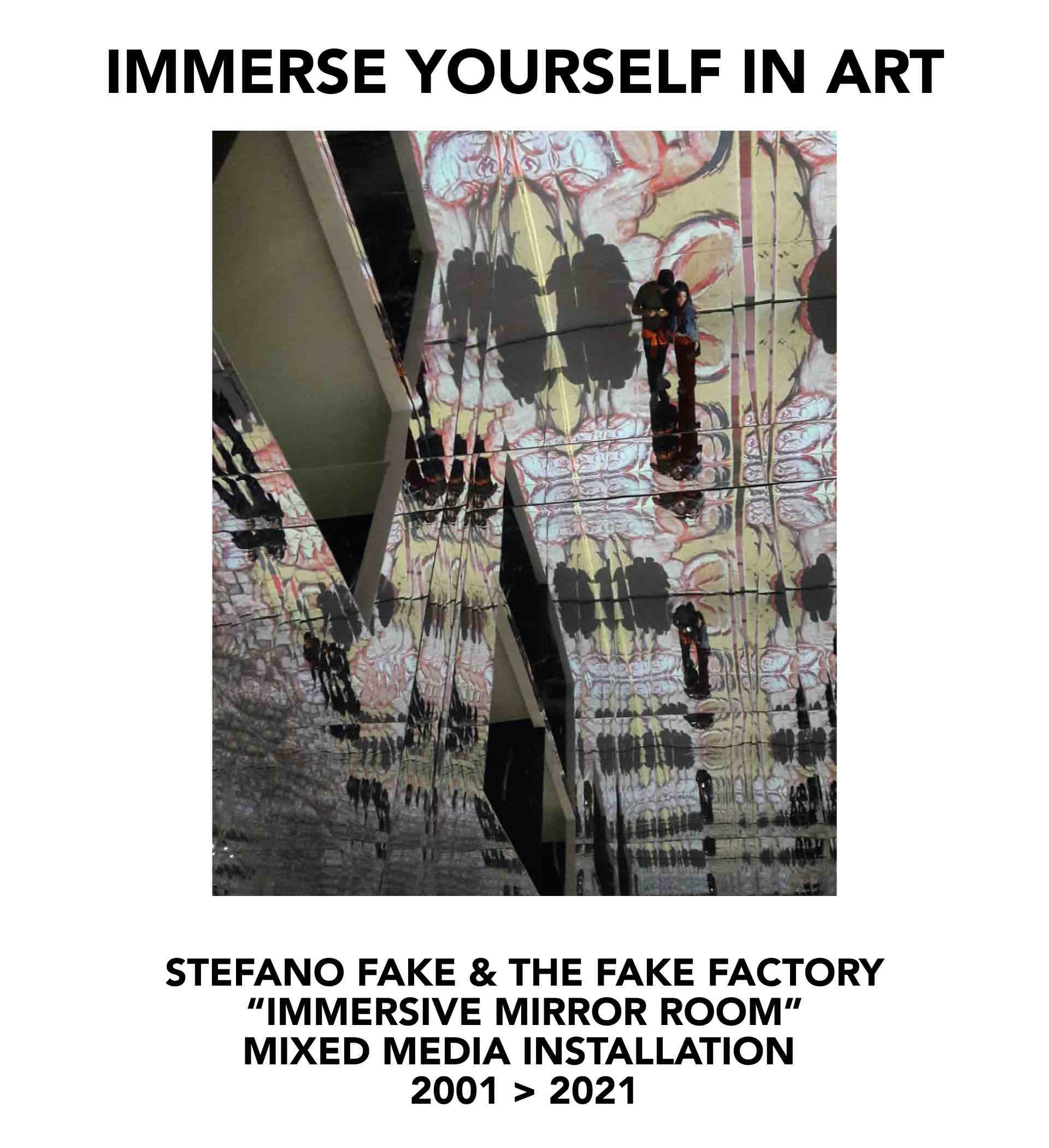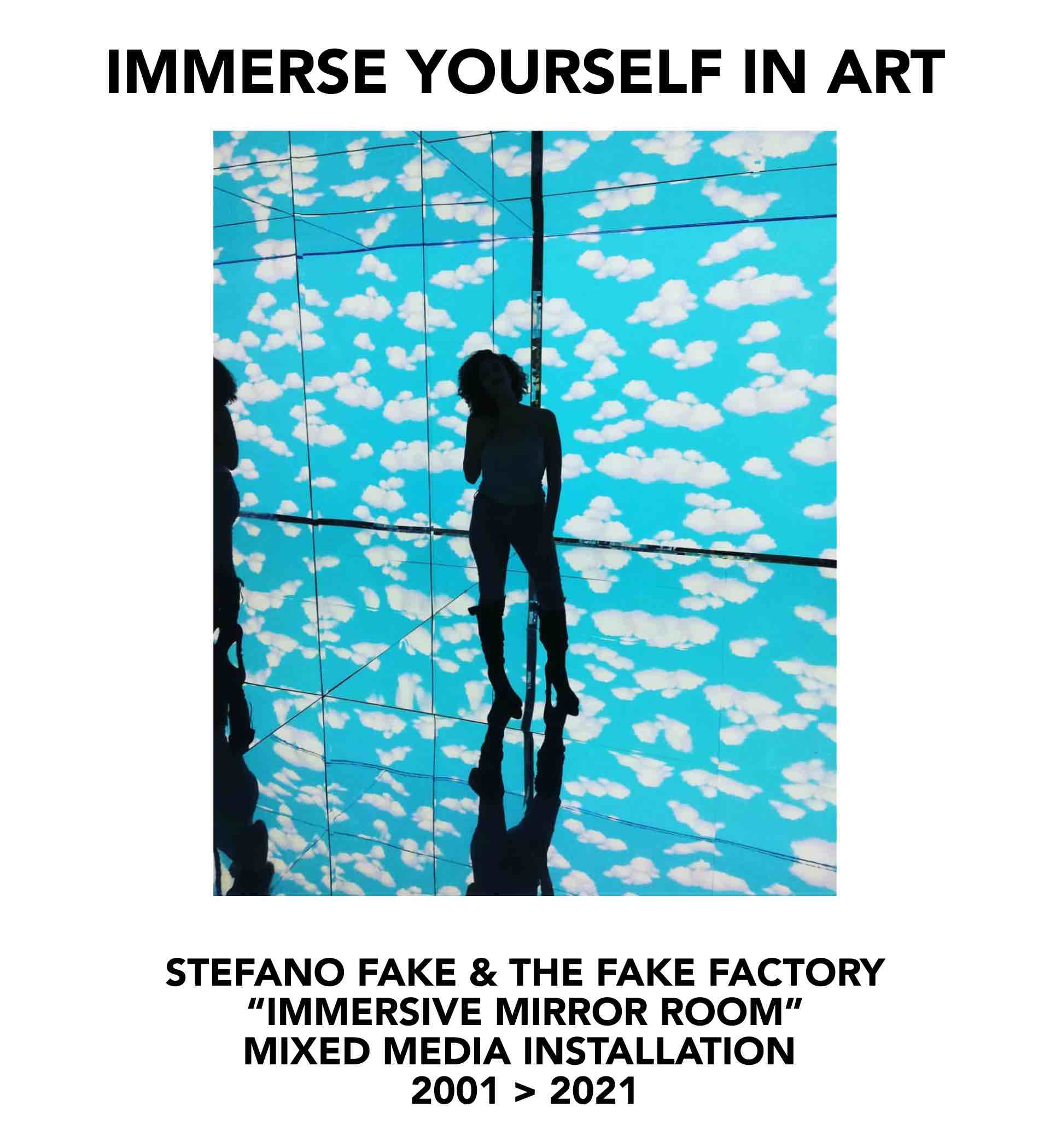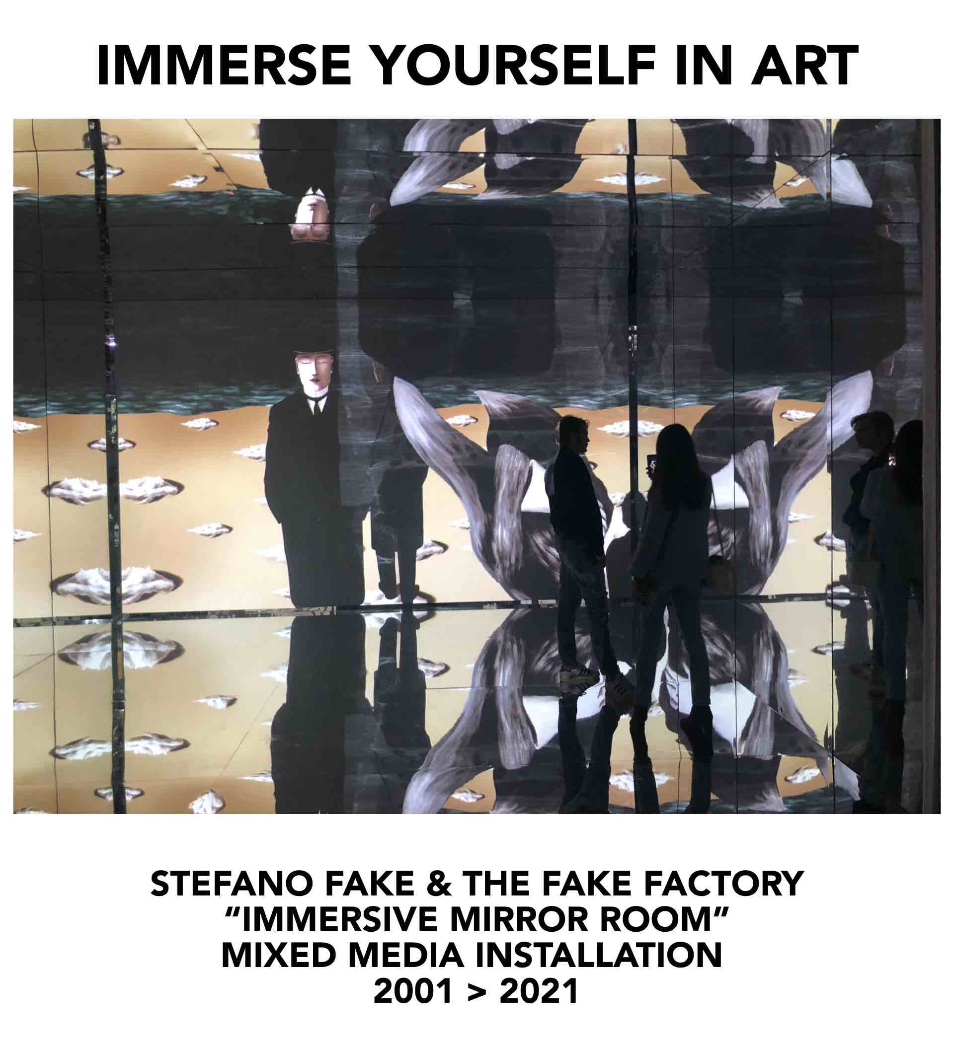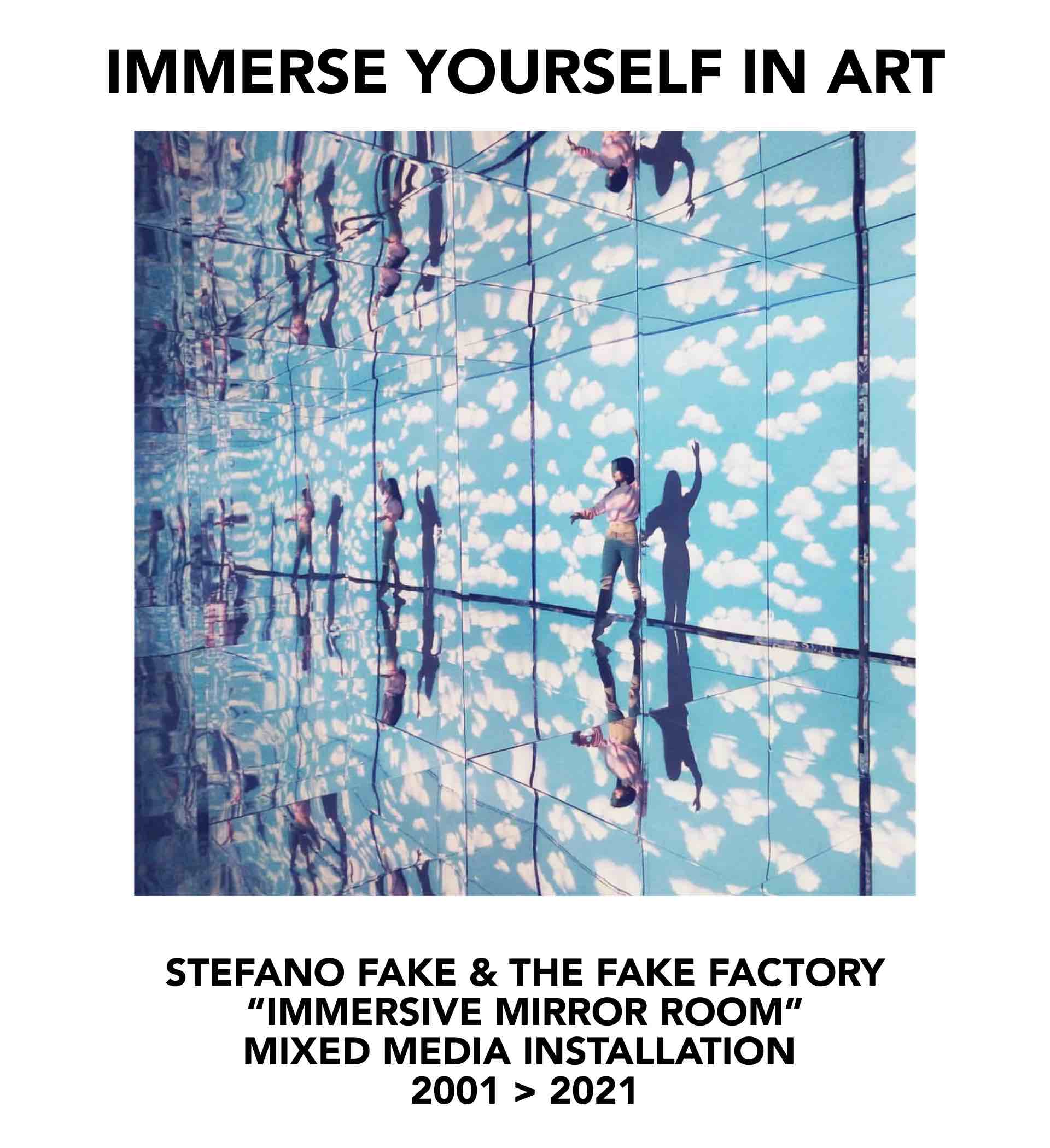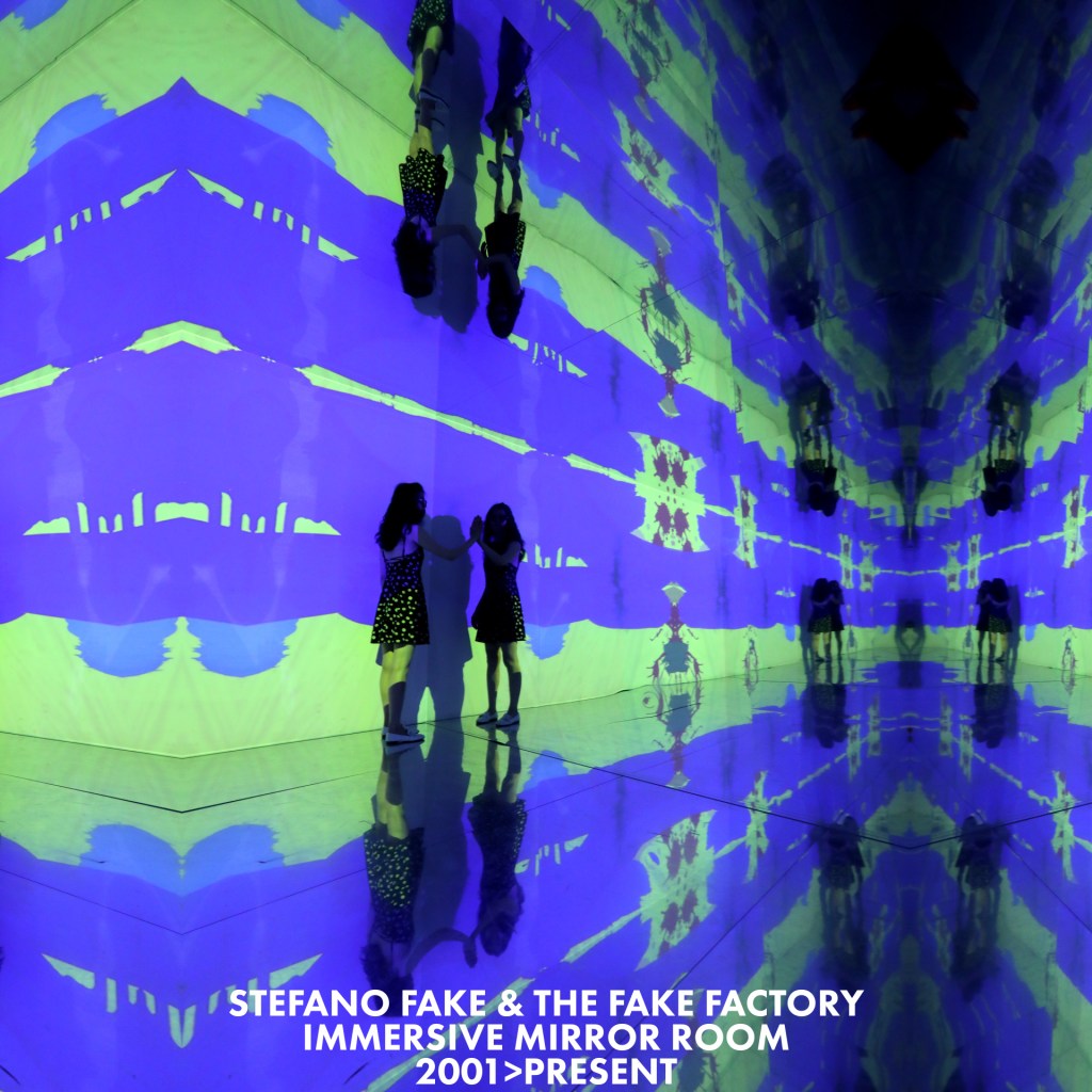 L’installazione “Immersive Mirror Room” è stata creata dall’artista italiano Stefano Fake nel 2001. Già nel 2001 ha iniziato a sviluppare stanze immersive, molto prima che il concetto diventasse una tendenza globale. Le sue immersive mirror rooms hanno attratto milioni di visitatori nel corso degli anni, contribuendo a definire il linguaggio dell’arte digitale e immersiva. Questa innovativa opera d’arte è stata esposta in varie forme sia in Italia che a livello internazionale, all’interno di festival, eventi e mostre innovative. Dal 2001 ad oggi, milioni di persone hanno visitato le immersive mirror rooms create da Stefano Fake & The Fake Factory.