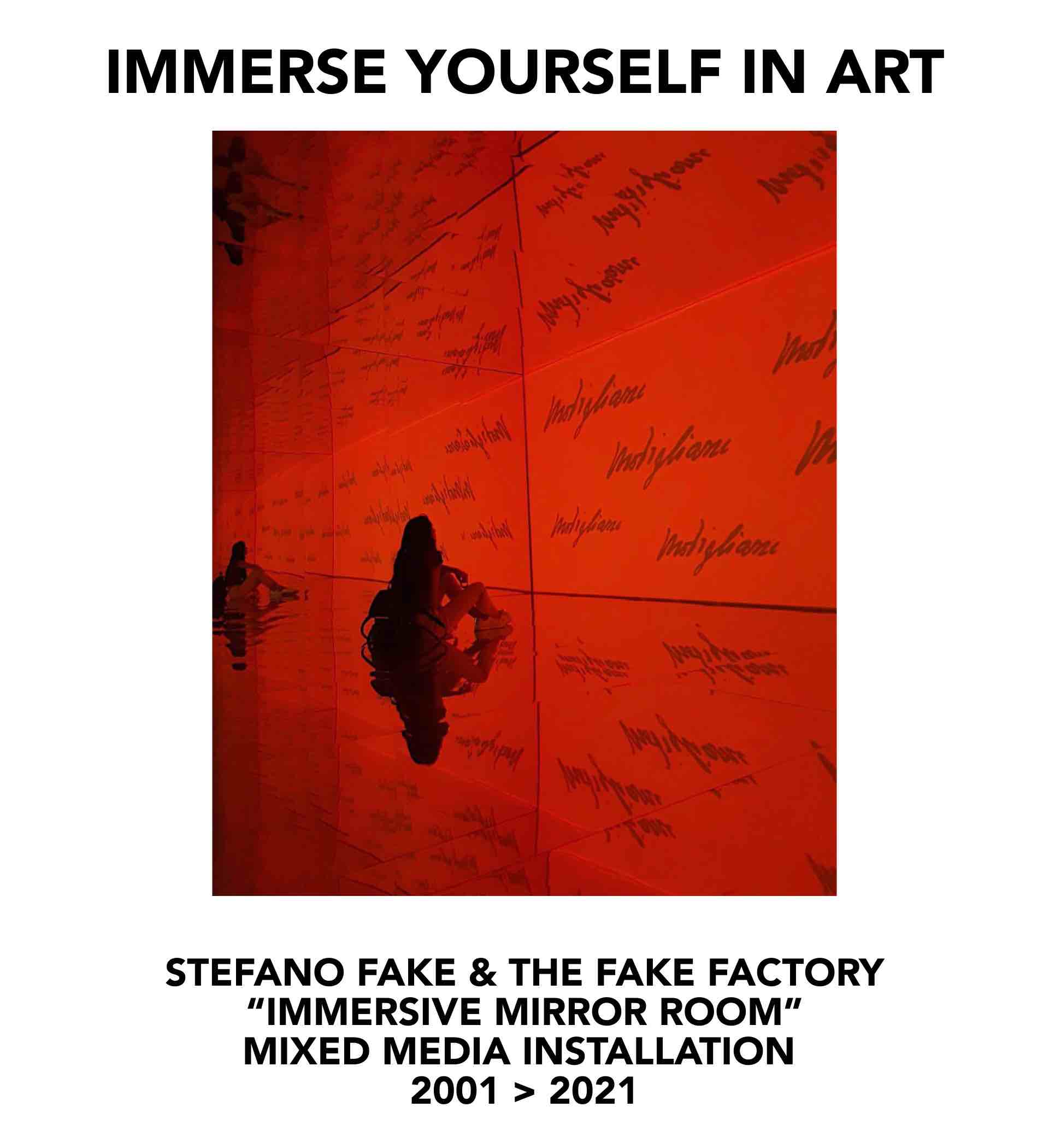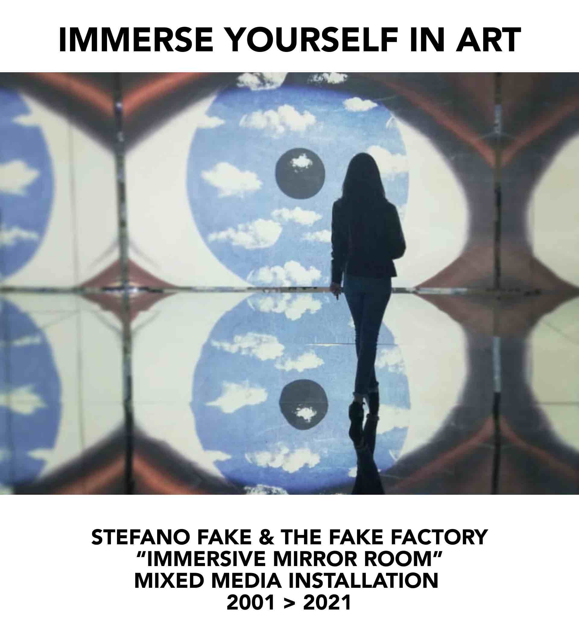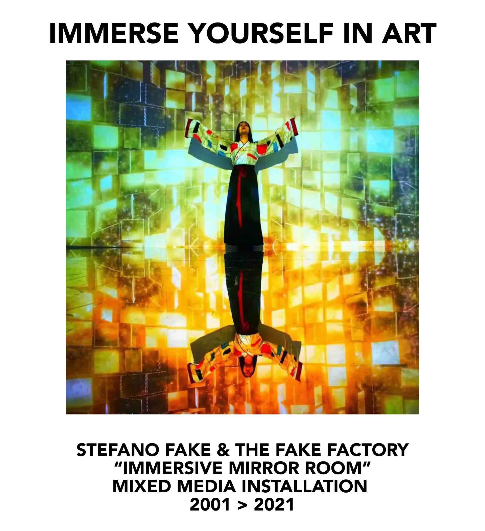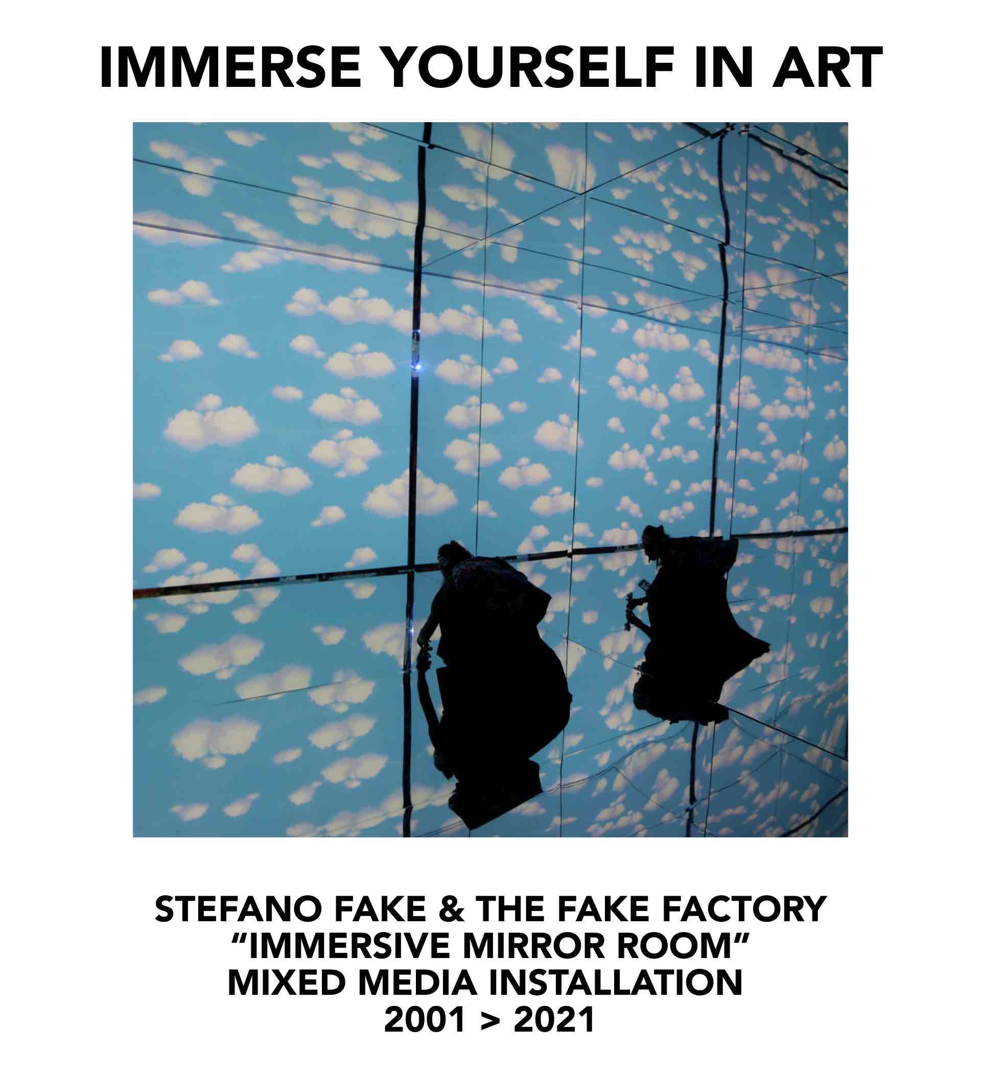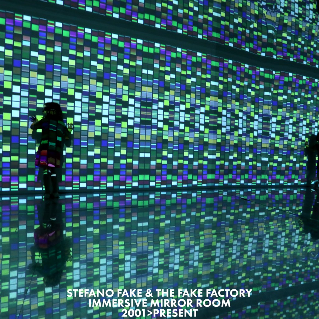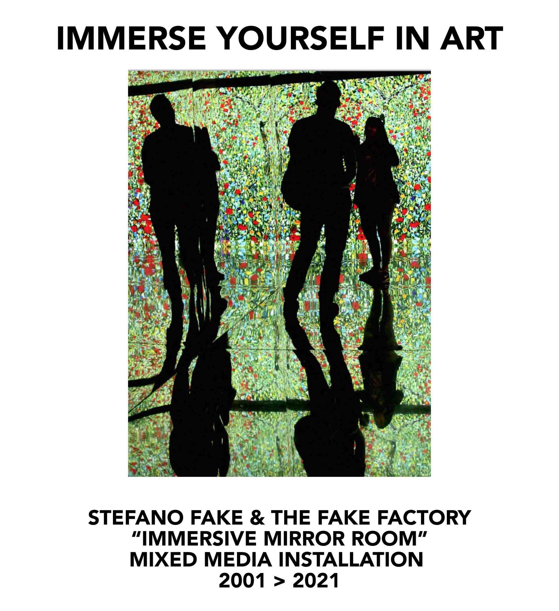 L’installazione “Immersive Mirror Room” è stata creata dall’artista italiano Stefano Fake nel 2001. Già nel 2001 ha iniziato a sviluppare stanze immersive, molto prima che il concetto diventasse una tendenza globale. Le sue immersive mirror rooms hanno attratto milioni di visitatori nel corso degli anni, contribuendo a definire il linguaggio dell’arte digitale e immersiva. Questa innovativa opera d’arte è stata esposta in varie forme sia in Italia che a livello internazionale, all’interno di festival, eventi e mostre innovative. Dal 2001 ad oggi, milioni di persone hanno visitato le immersive mirror rooms create da Stefano Fake & The Fake Factory.
