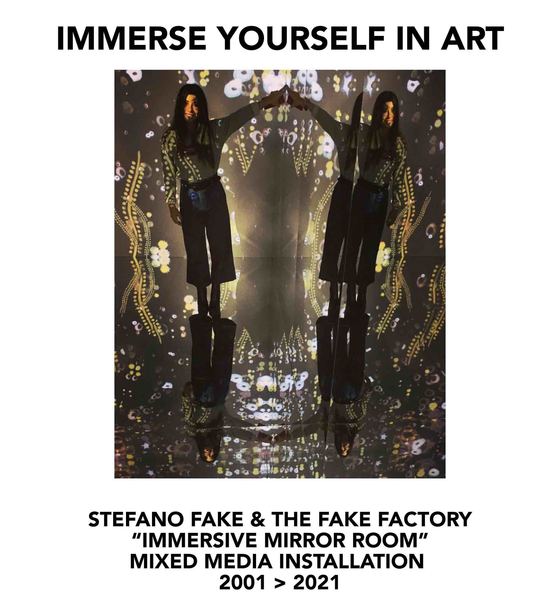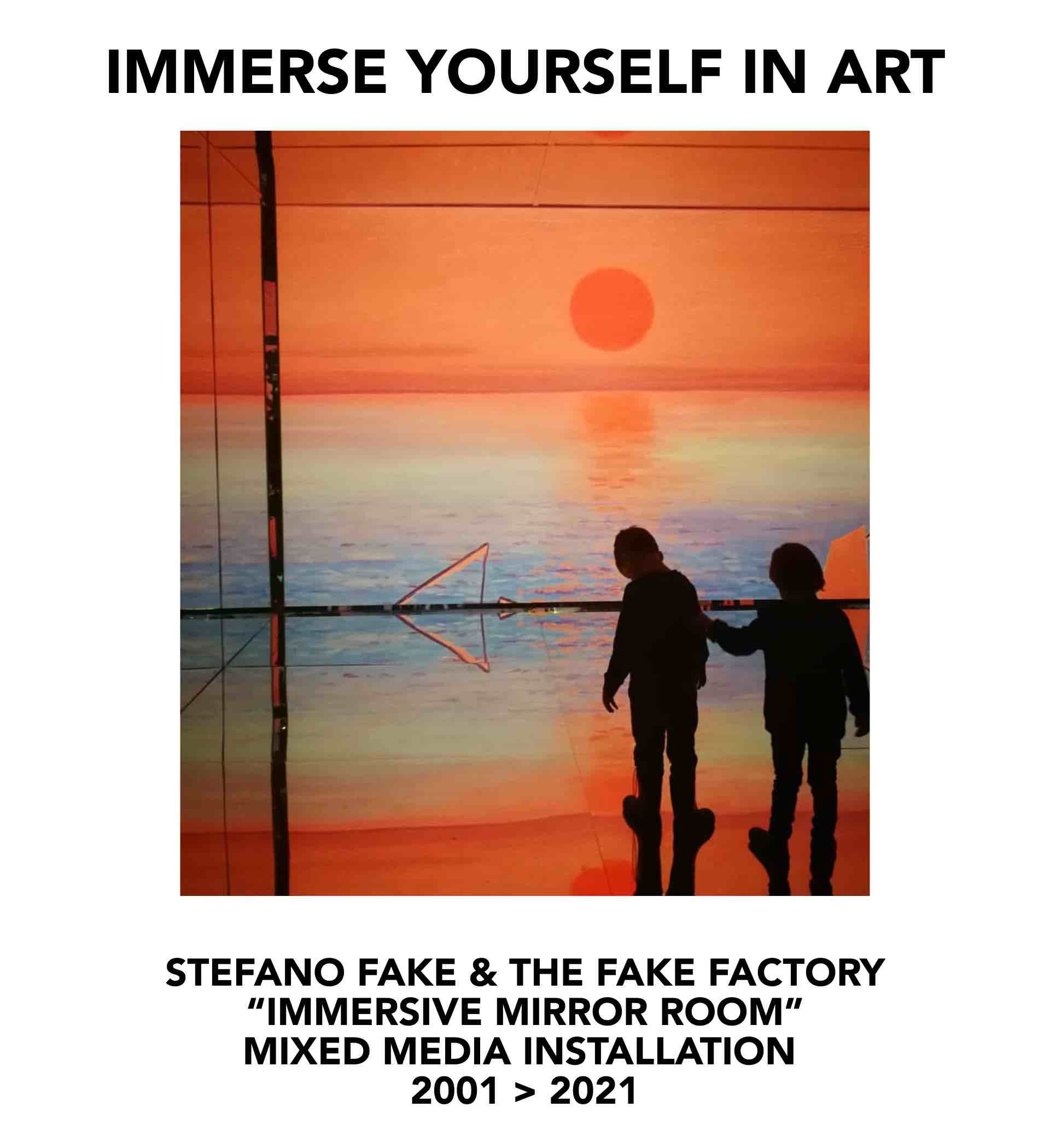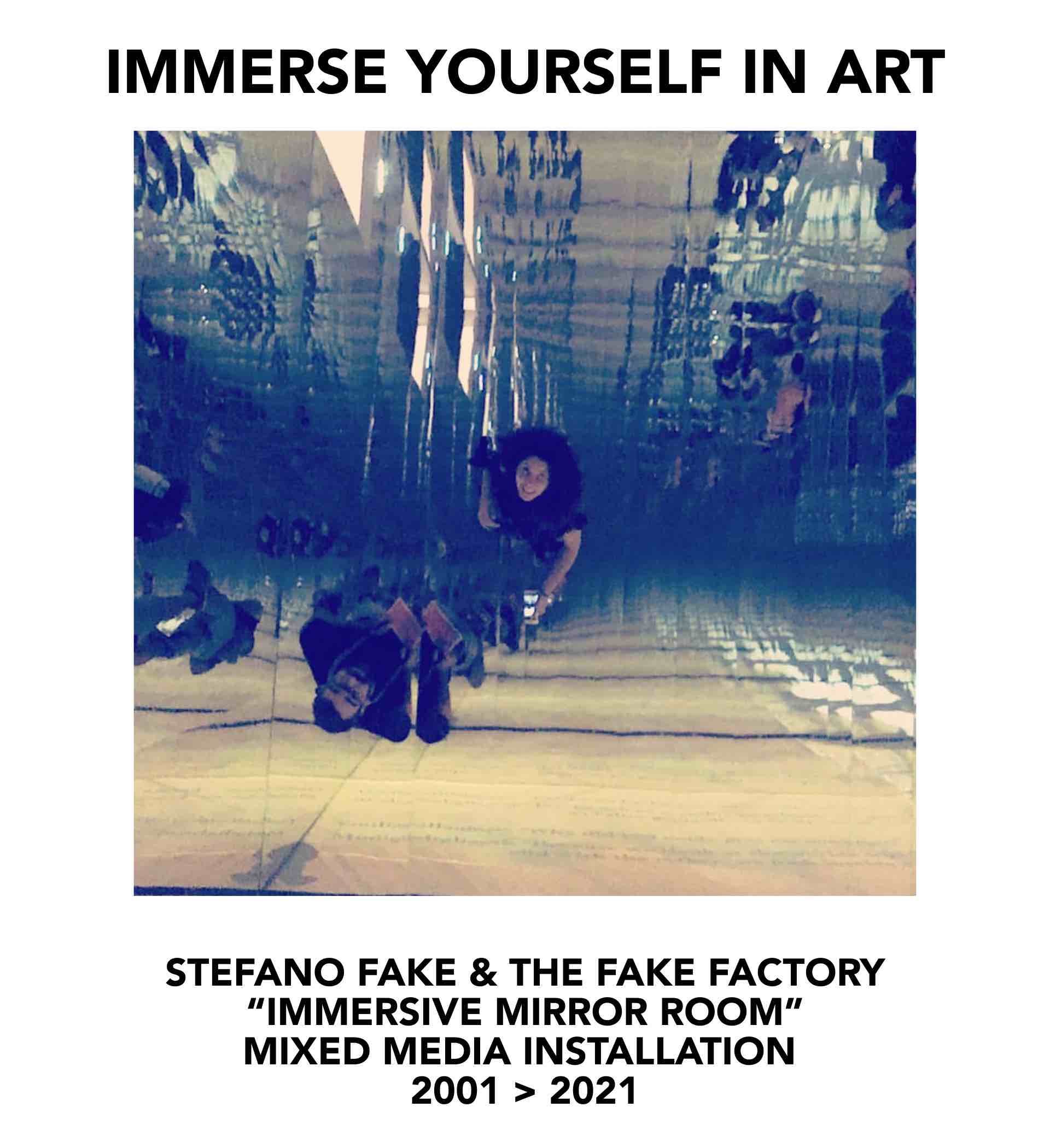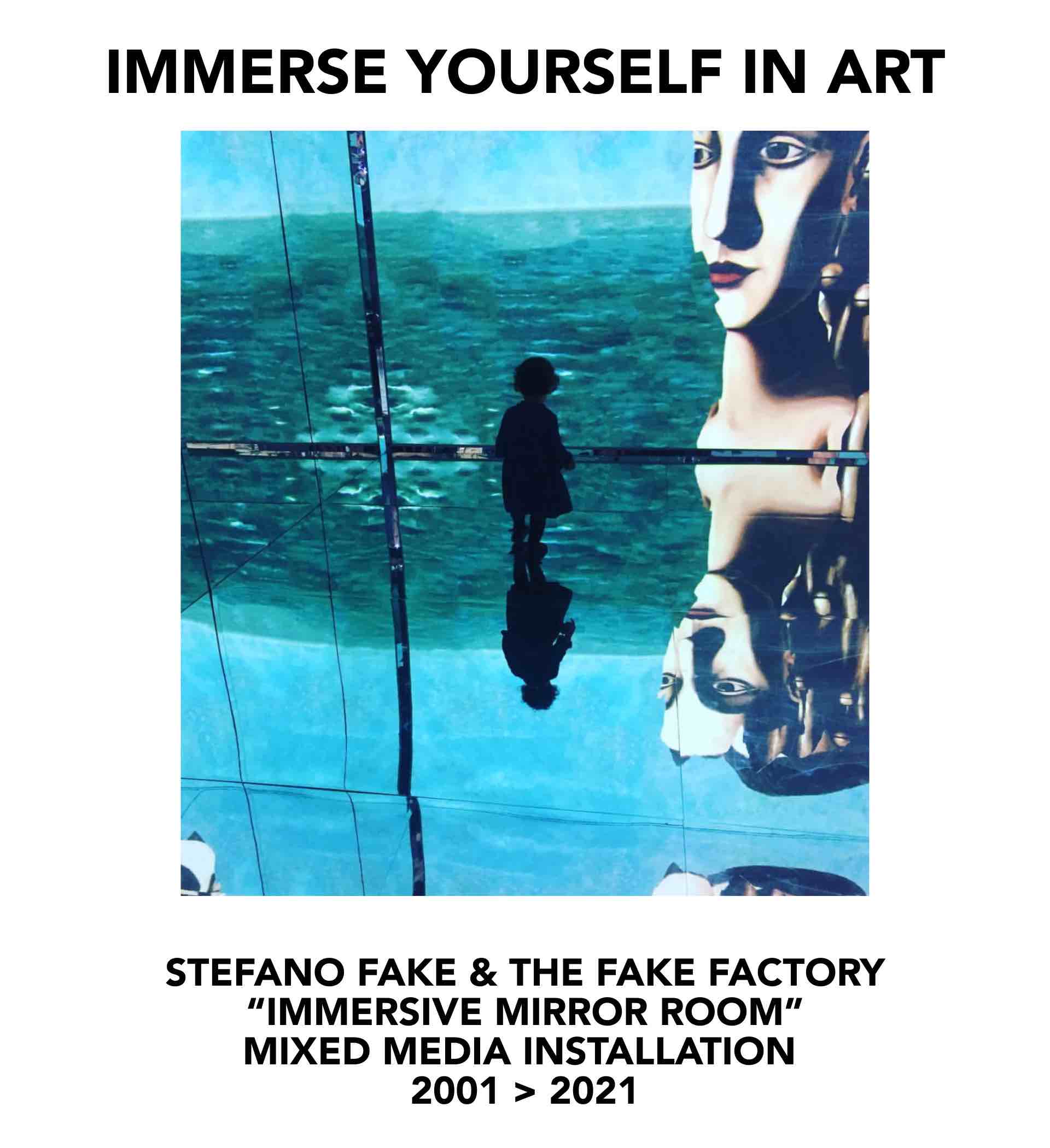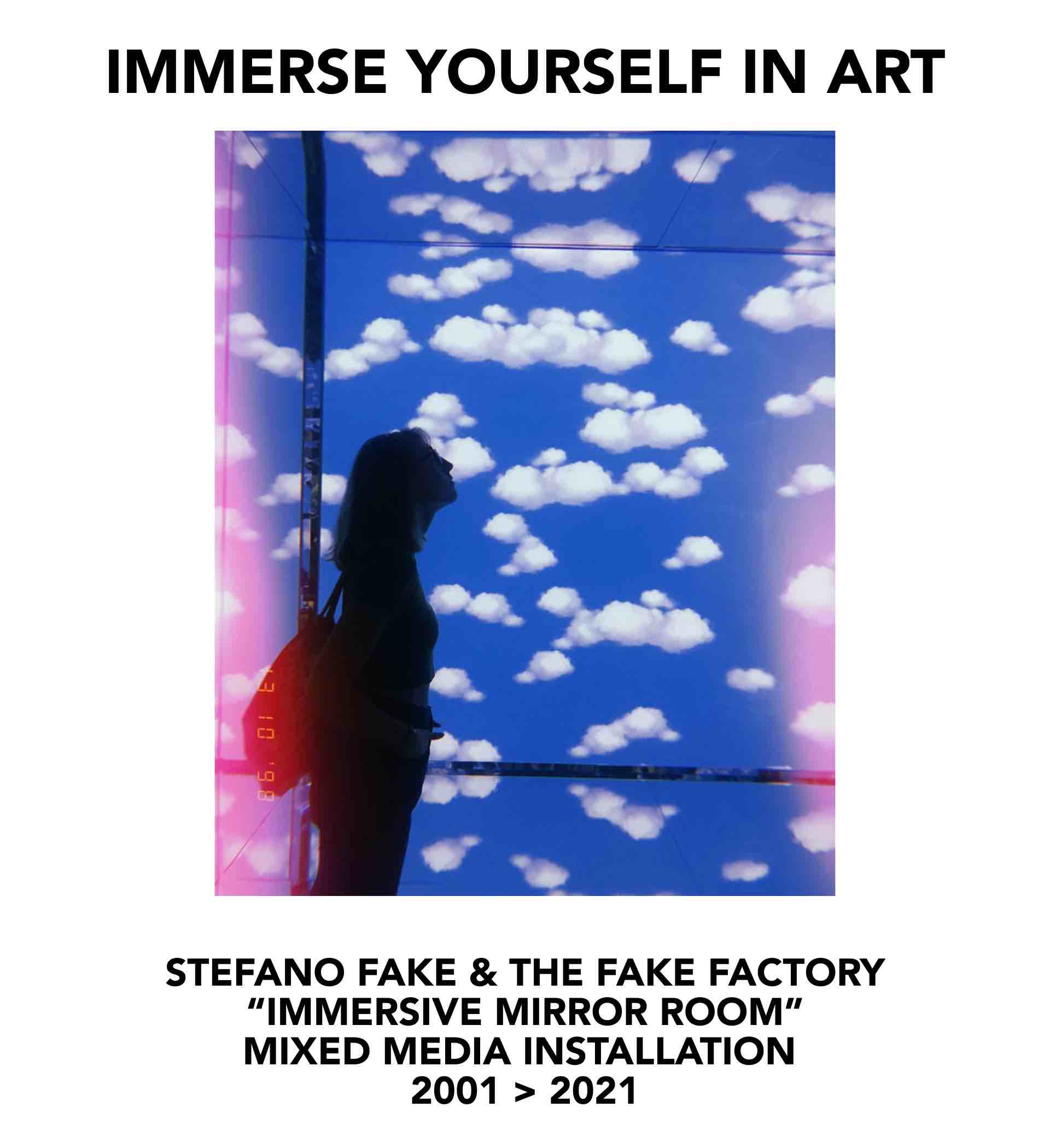 L’installazione “Immersive Mirror Room” è stata creata dall’artista italiano Stefano Fake nel 2001. Già nel 2001 ha iniziato a sviluppare stanze immersive, molto prima che il concetto diventasse una tendenza globale. Le sue immersive mirror rooms hanno attratto milioni di visitatori nel corso degli anni, contribuendo a definire il linguaggio dell’arte digitale e immersiva. Questa innovativa opera d’arte è stata esposta in varie forme sia in Italia che a livello internazionale, all’interno di festival, eventi e mostre innovative. Dal 2001 ad oggi, milioni di persone hanno visitato le immersive mirror rooms create da Stefano Fake & The Fake Factory.