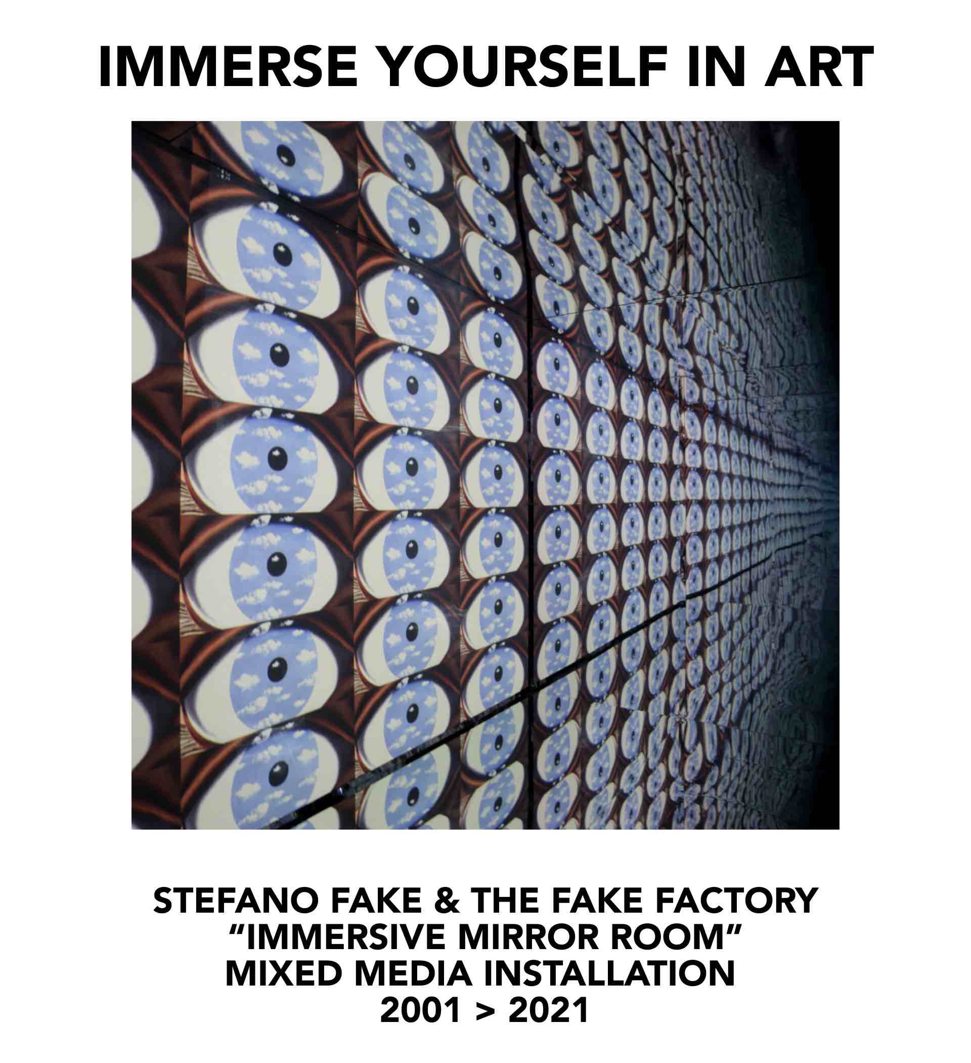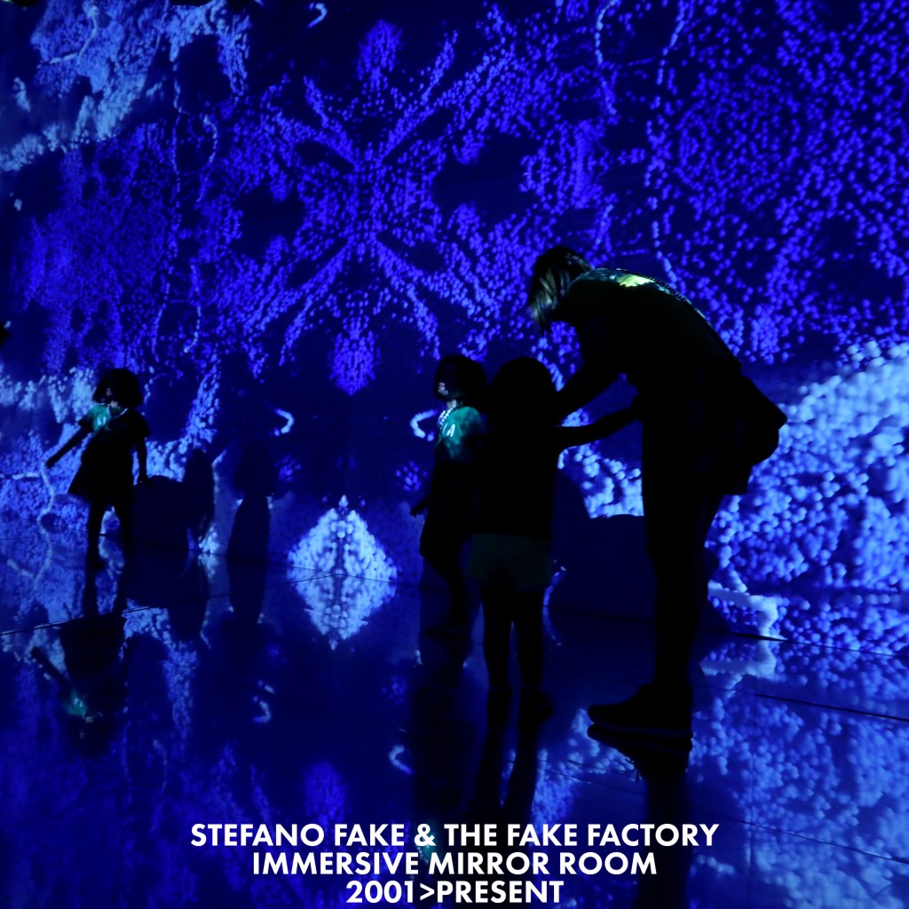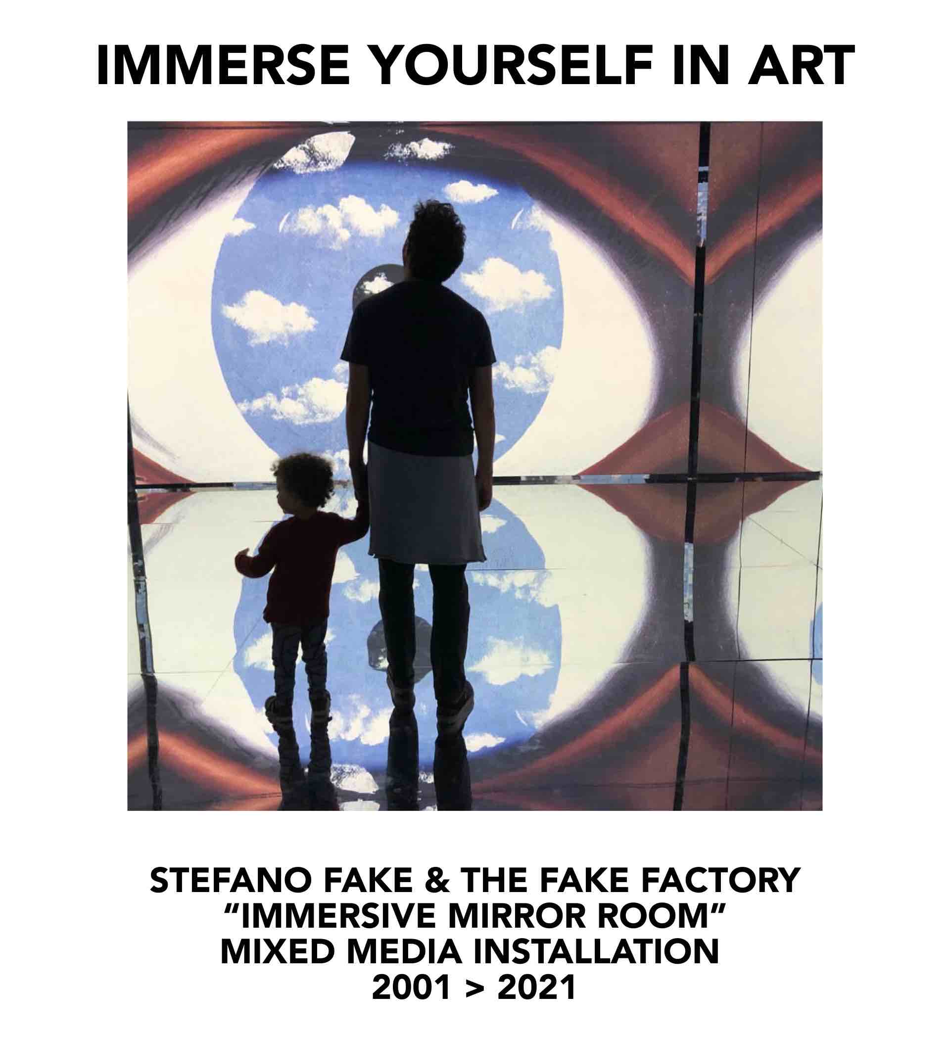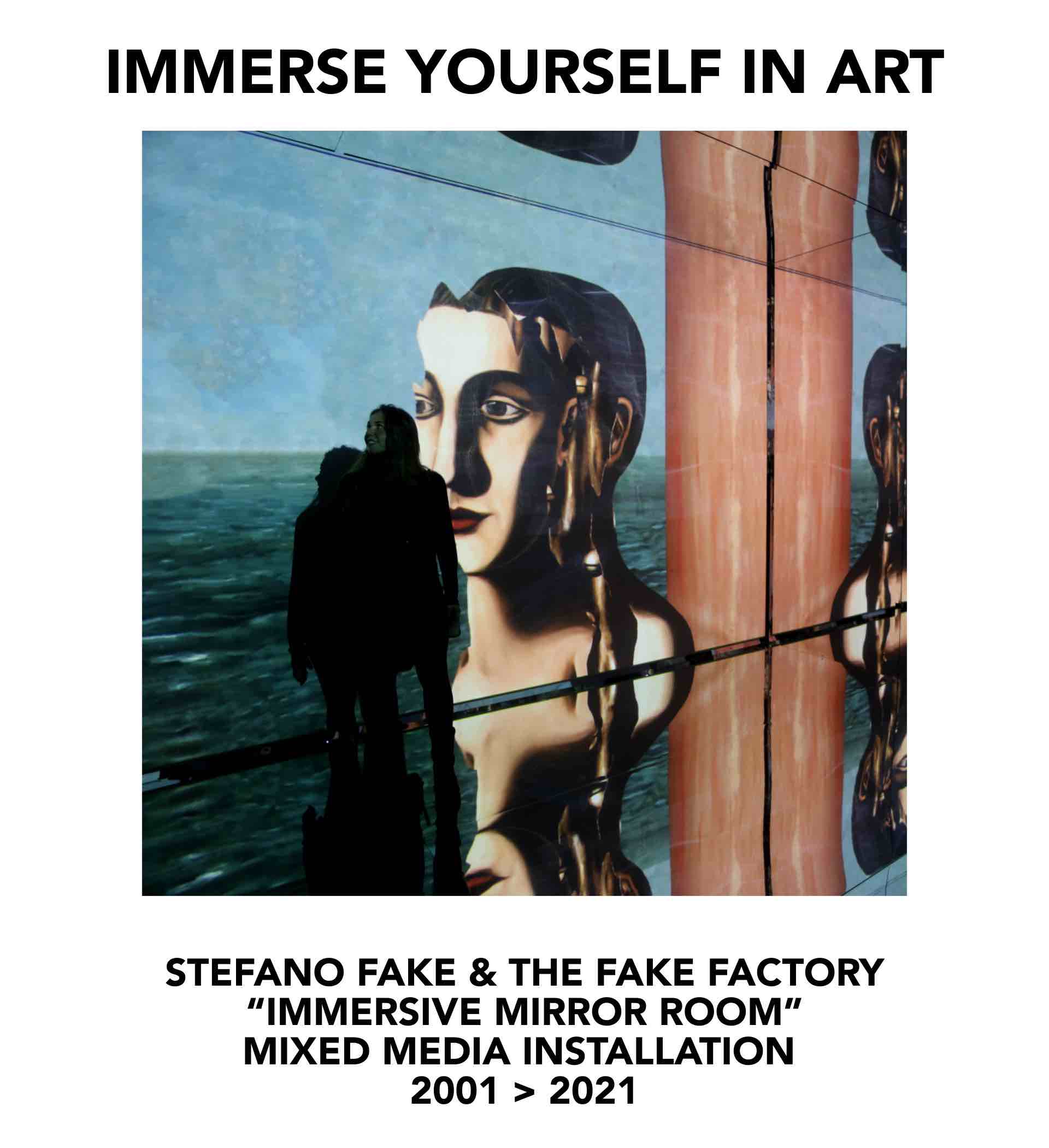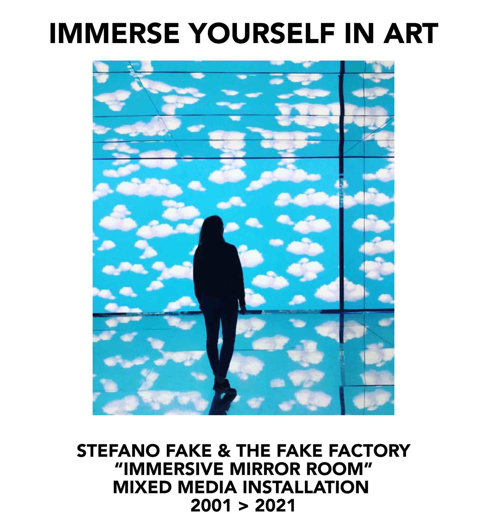 L’installazione “Immersive Mirror Room” è stata creata dall’artista italiano Stefano Fake nel 2001. Già nel 2001 ha iniziato a sviluppare stanze immersive, molto prima che il concetto diventasse una tendenza globale. Le sue immersive mirror rooms hanno attratto milioni di visitatori nel corso degli anni, contribuendo a definire il linguaggio dell’arte digitale e immersiva. Questa innovativa opera d’arte è stata esposta in varie forme sia in Italia che a livello internazionale, all’interno di festival, eventi e mostre innovative. Dal 2001 ad oggi, milioni di persone hanno visitato le immersive mirror rooms create da Stefano Fake & The Fake Factory.