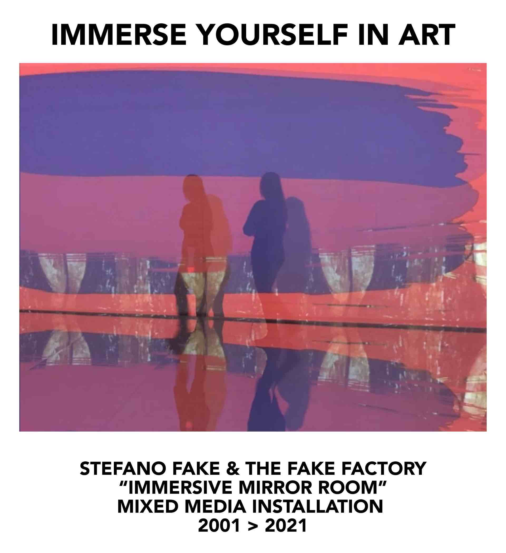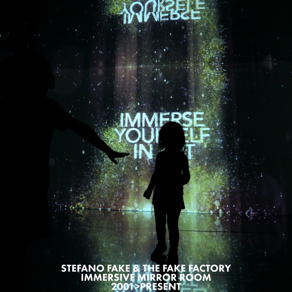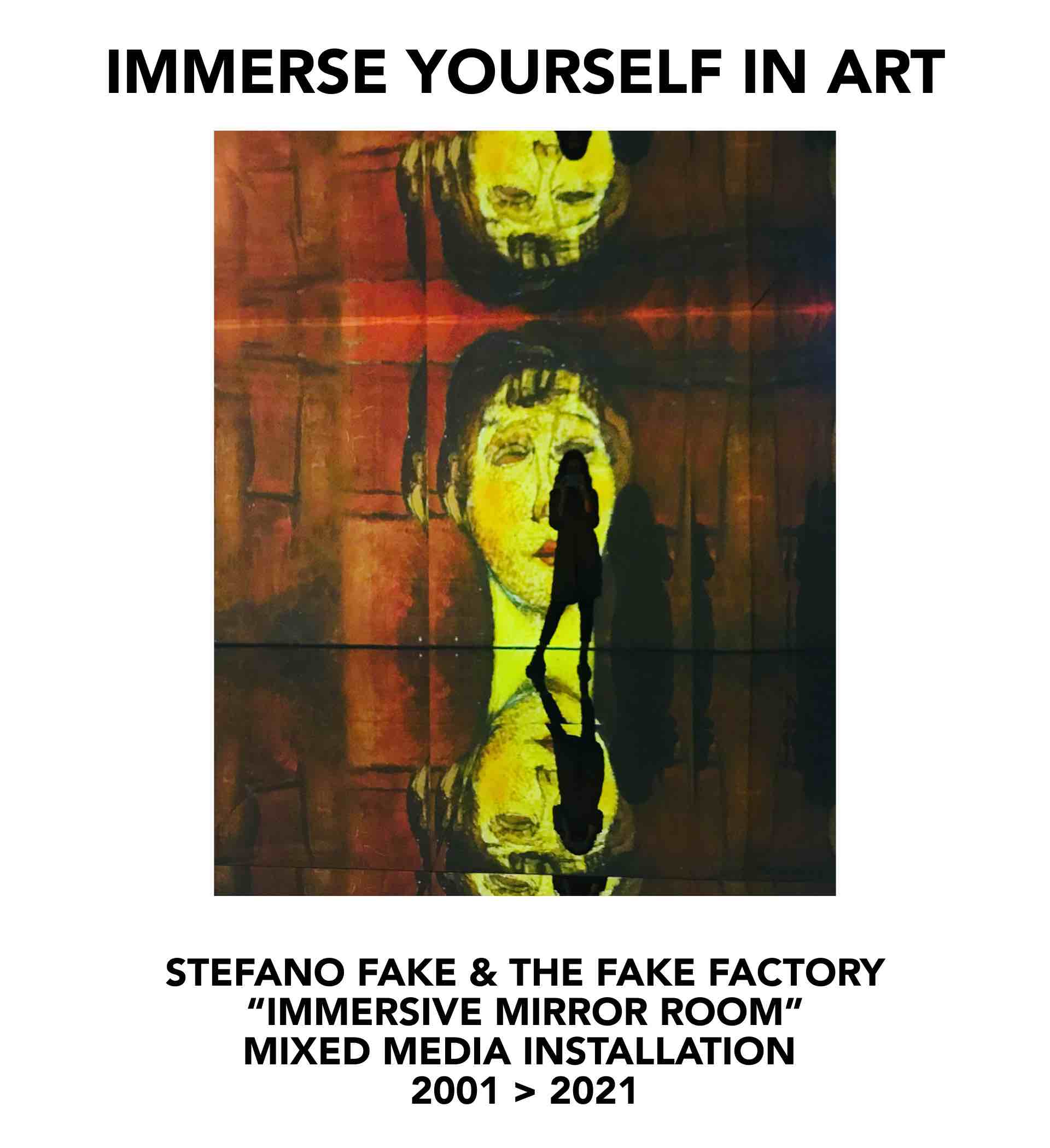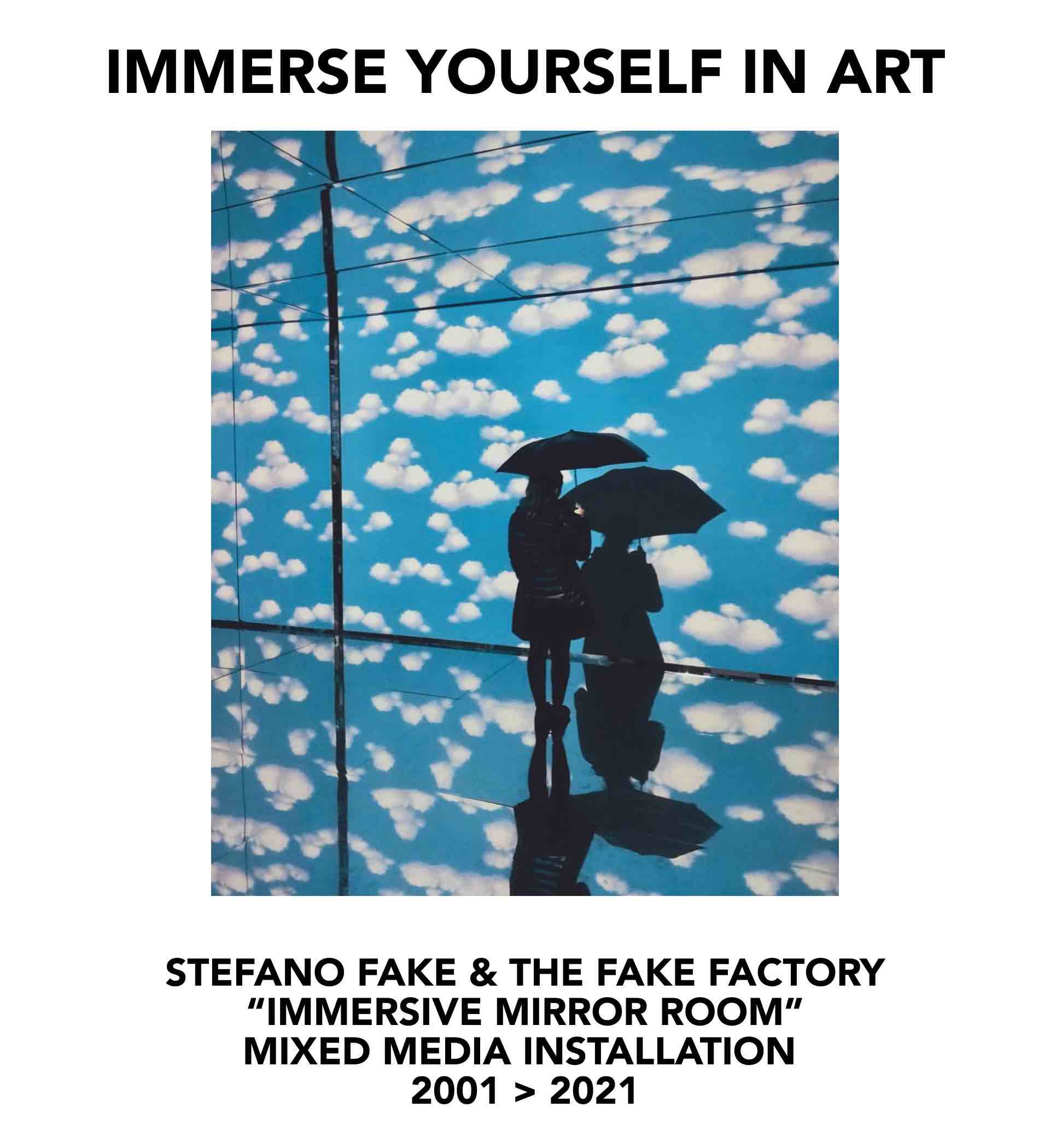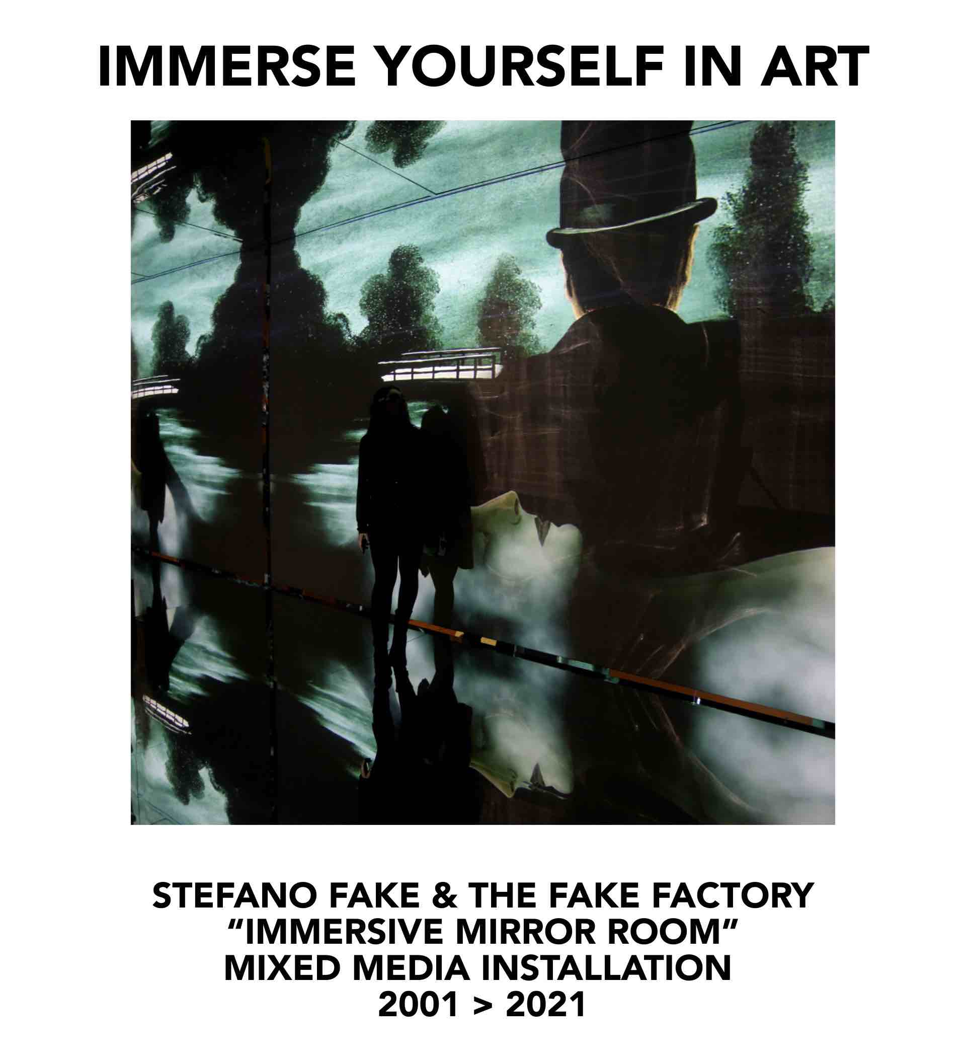 L’installazione “Immersive Mirror Room” è stata creata dall’artista italiano Stefano Fake nel 2001. Già nel 2001 ha iniziato a sviluppare stanze immersive, molto prima che il concetto diventasse una tendenza globale. Le sue immersive mirror rooms hanno attratto milioni di visitatori nel corso degli anni, contribuendo a definire il linguaggio dell’arte digitale e immersiva. Questa innovativa opera d’arte è stata esposta in varie forme sia in Italia che a livello internazionale, all’interno di festival, eventi e mostre innovative. Dal 2001 ad oggi, milioni di persone hanno visitato le immersive mirror rooms create da Stefano Fake & The Fake Factory.