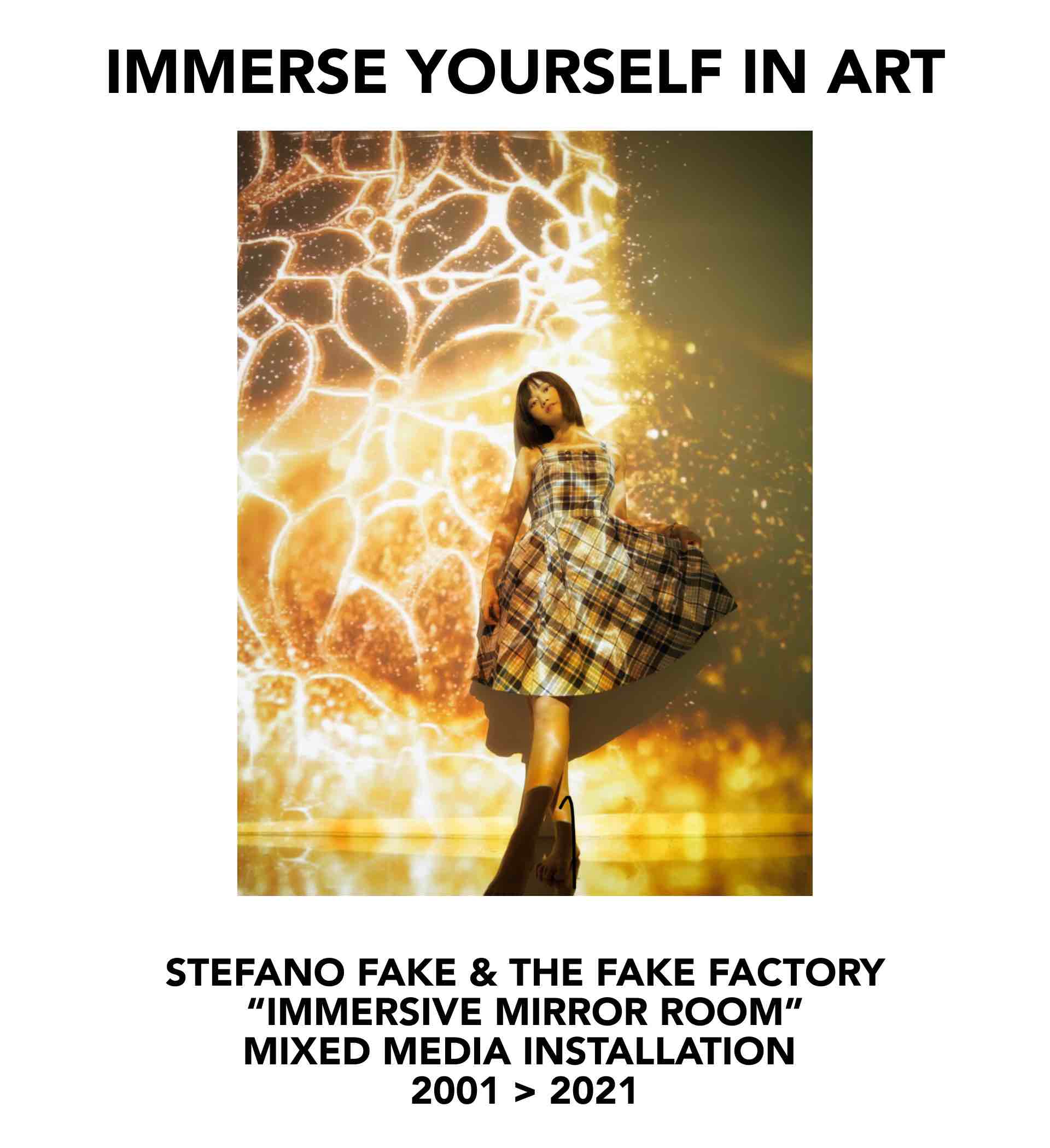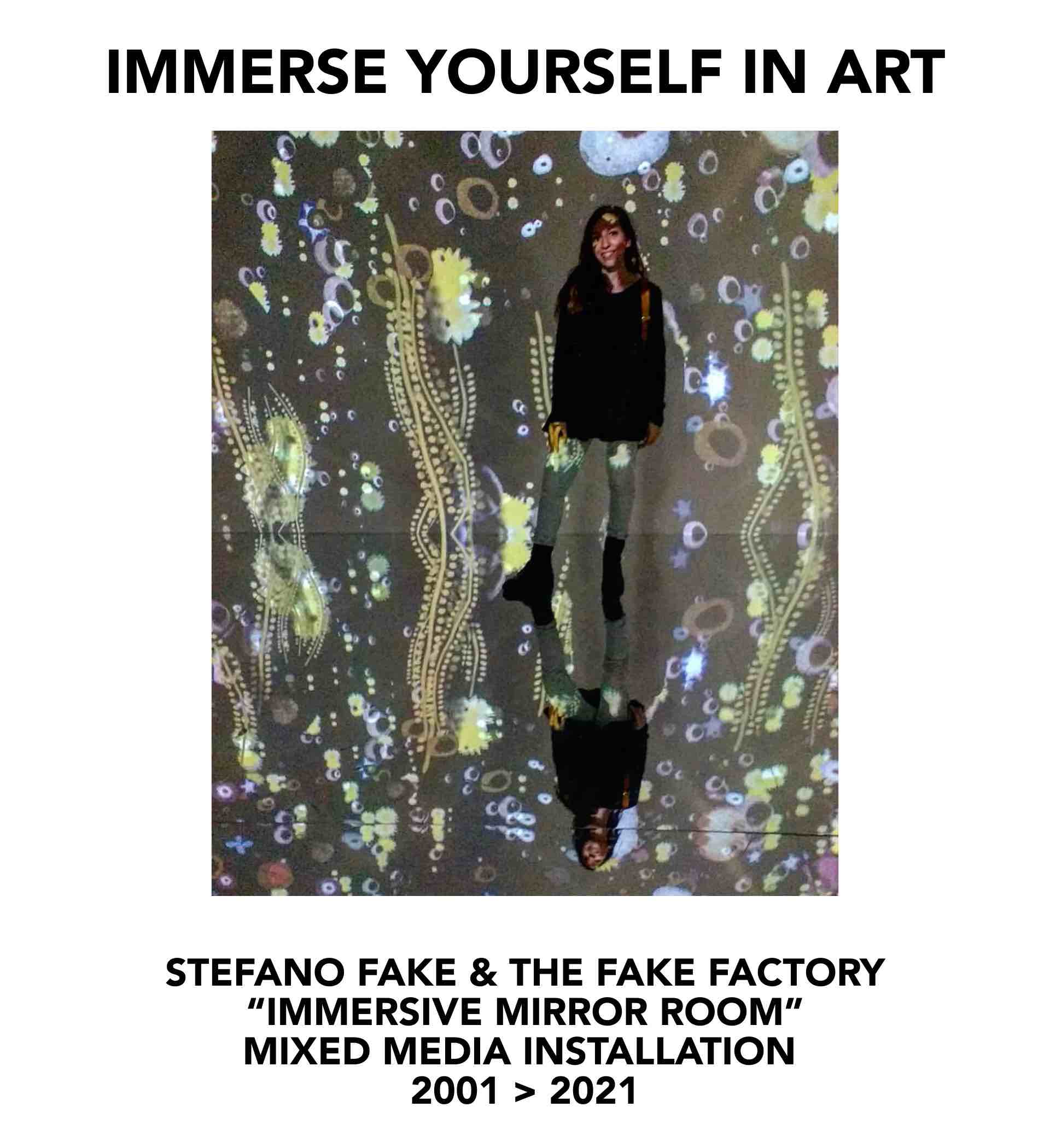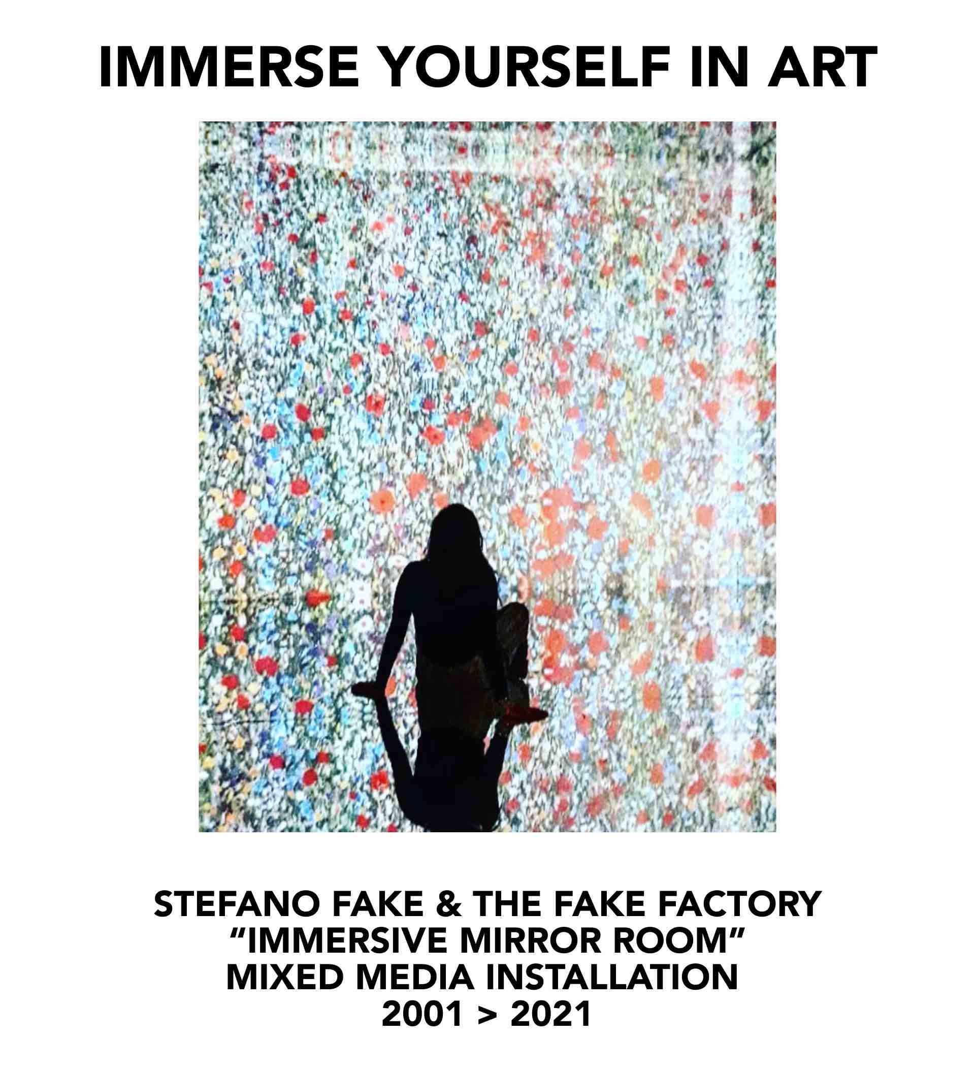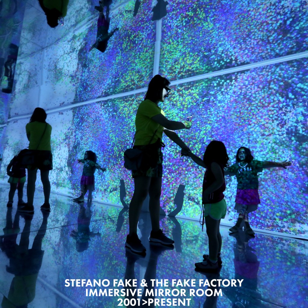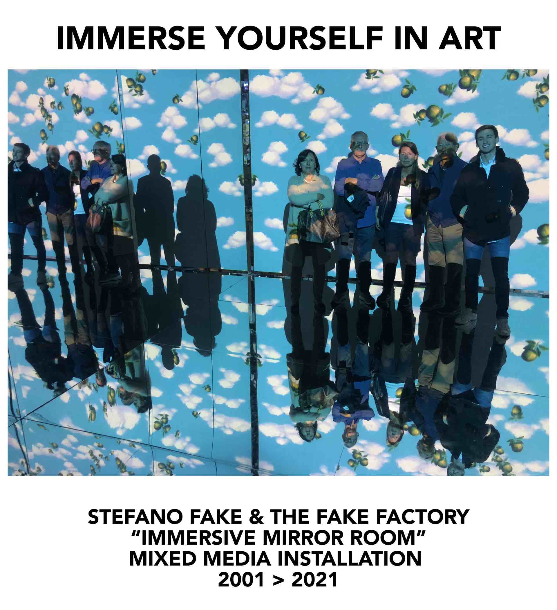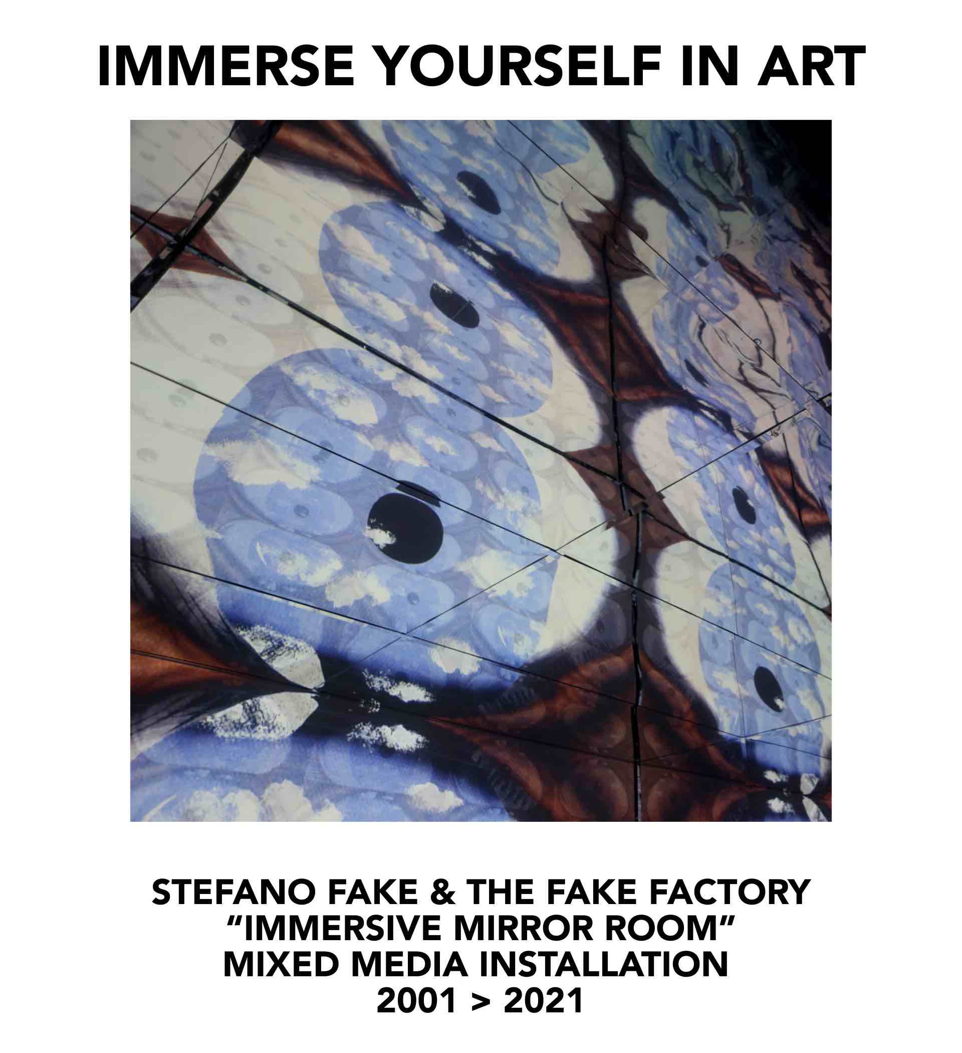L’installazione “Immersive Mirror Room” è stata creata dall’artista italiano Stefano Fake nel 2001. Già nel 2001 ha iniziato a sviluppare stanze immersive, molto prima che il concetto diventasse una tendenza globale. Le sue immersive mirror rooms hanno attratto milioni di visitatori nel corso degli anni, contribuendo a definire il linguaggio dell’arte digitale e immersiva. Questa innovativa opera d’arte è stata esposta in varie forme sia in Italia che a livello internazionale, all’interno di festival, eventi e mostre innovative. Dal 2001 ad oggi, milioni di persone hanno visitato le immersive mirror rooms create da Stefano Fake & The Fake Factory.