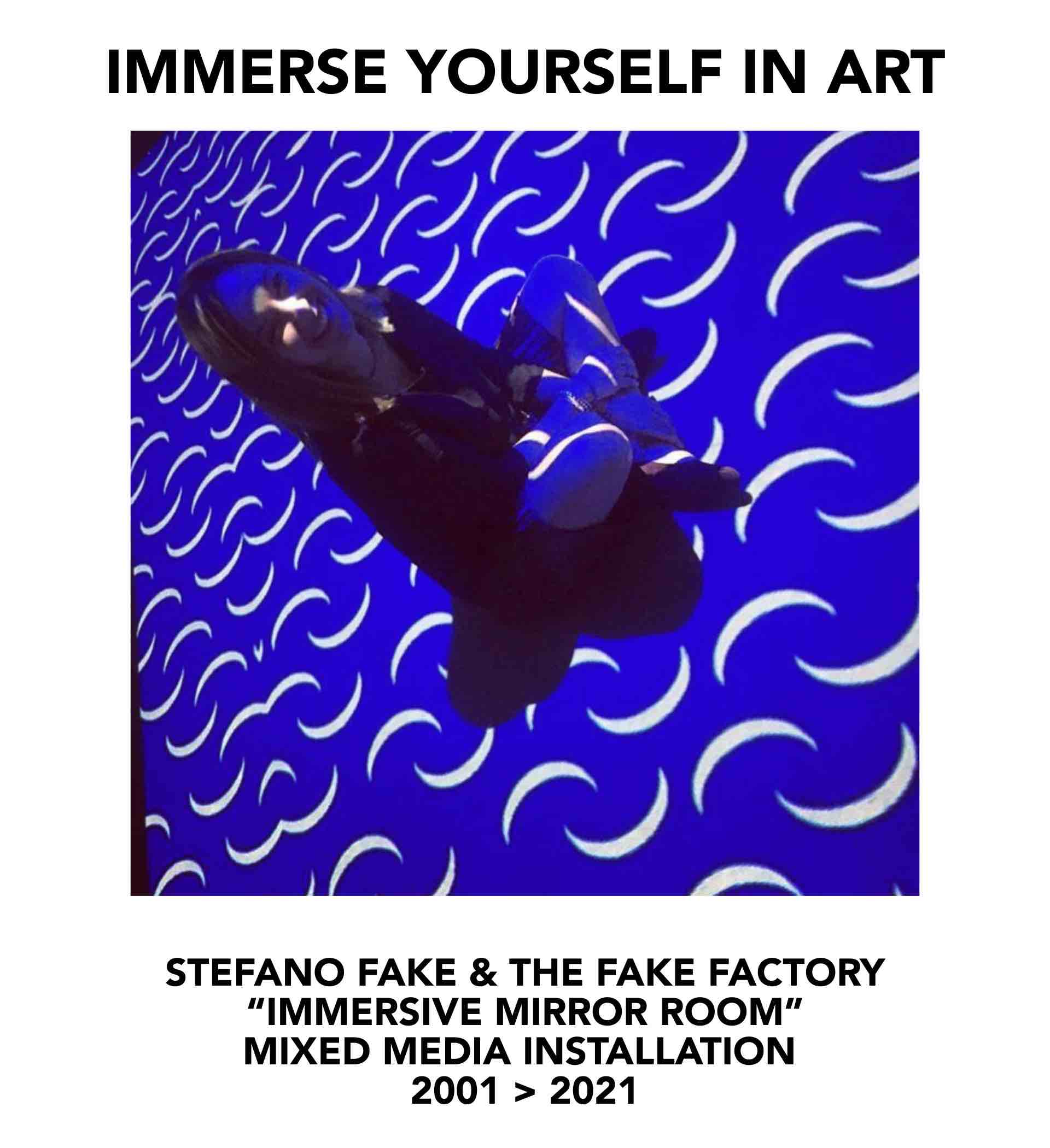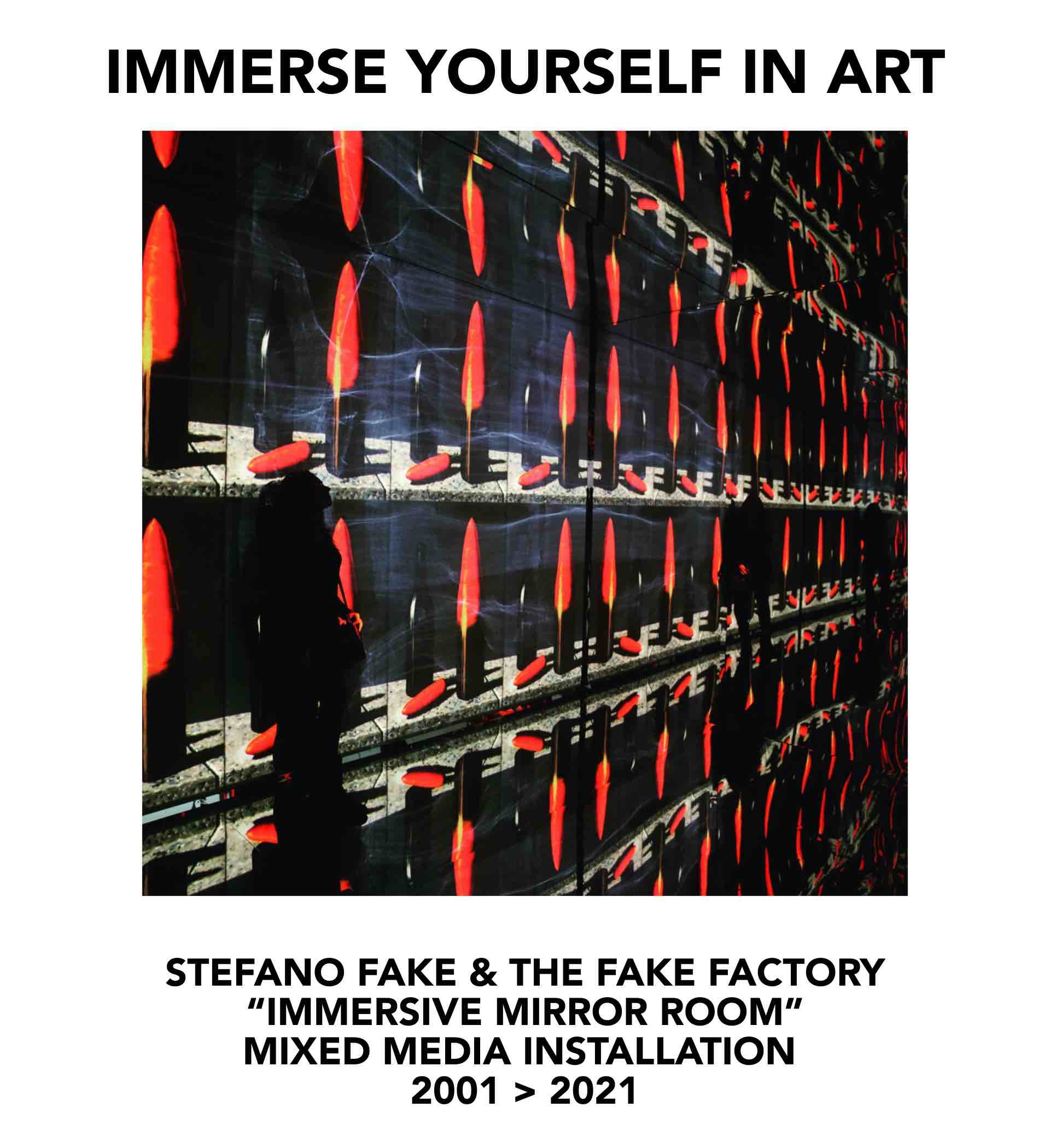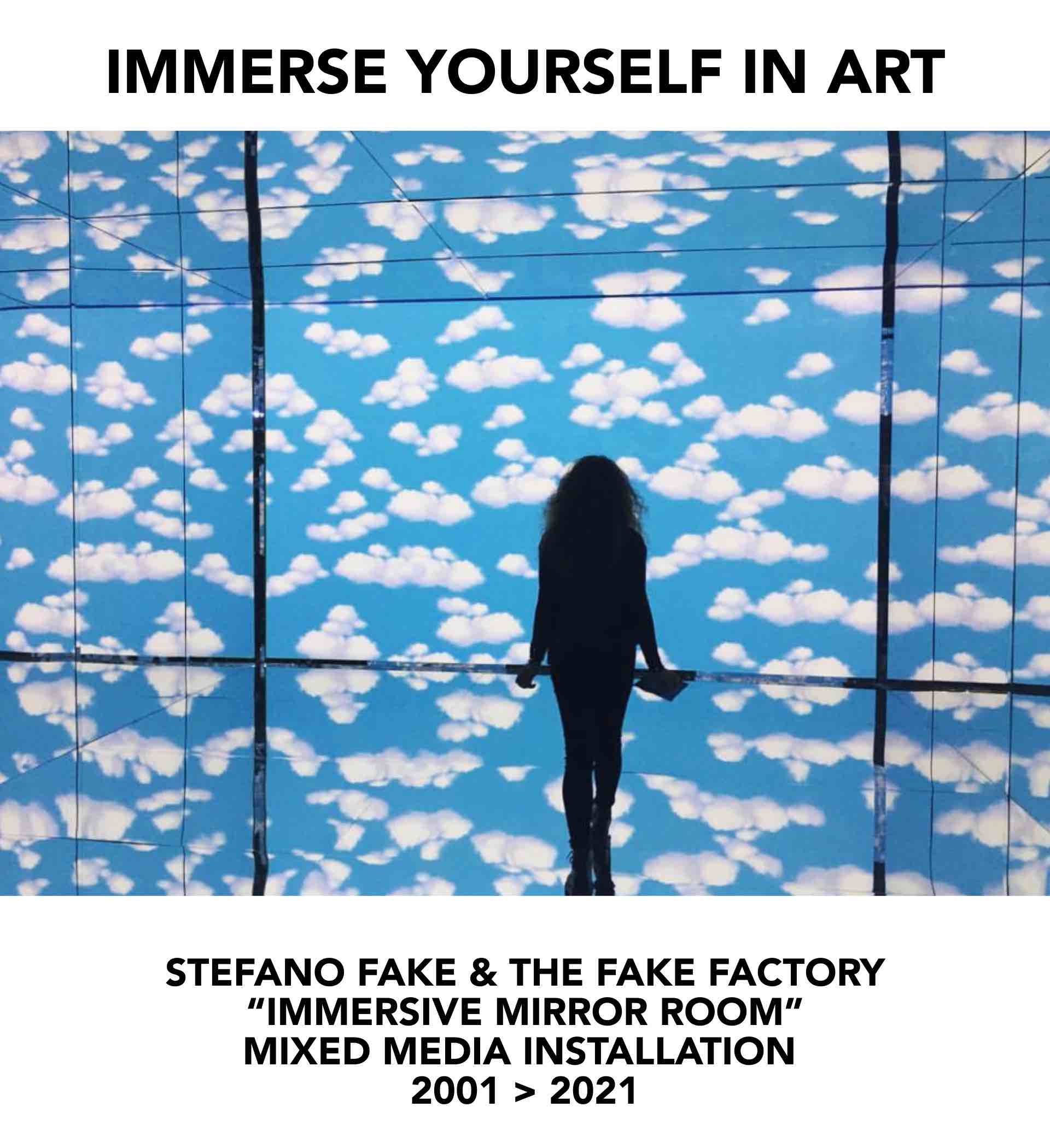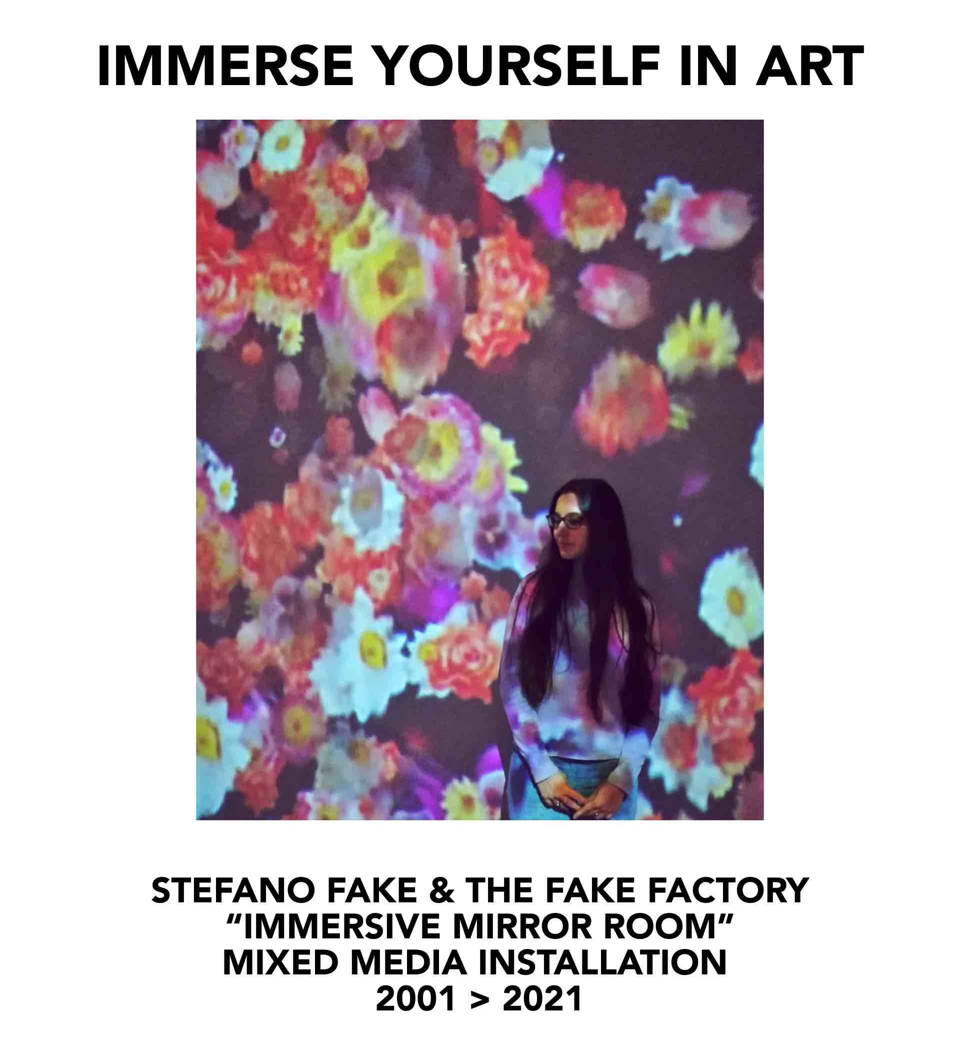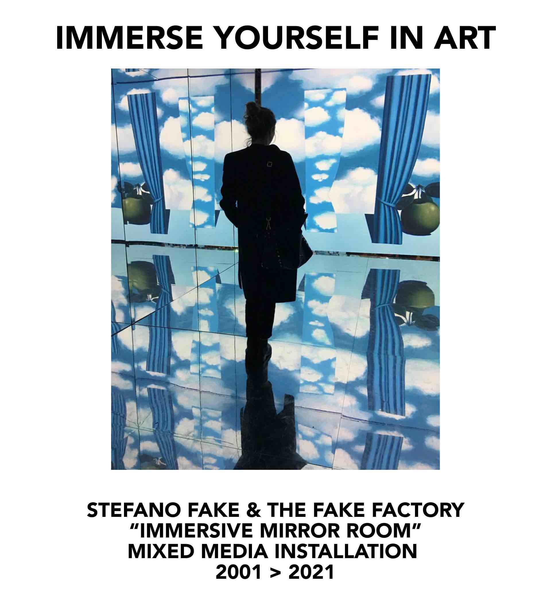 L’installazione “Immersive Mirror Room” è stata creata dall’artista italiano Stefano Fake nel 2001. Già nel 2001 ha iniziato a sviluppare stanze immersive, molto prima che il concetto diventasse una tendenza globale. Le sue immersive mirror rooms hanno attratto milioni di visitatori nel corso degli anni, contribuendo a definire il linguaggio dell’arte digitale e immersiva. Questa innovativa opera d’arte è stata esposta in varie forme sia in Italia che a livello internazionale, all’interno di festival, eventi e mostre innovative. Dal 2001 ad oggi, milioni di persone hanno visitato le immersive mirror rooms create da Stefano Fake & The Fake Factory.