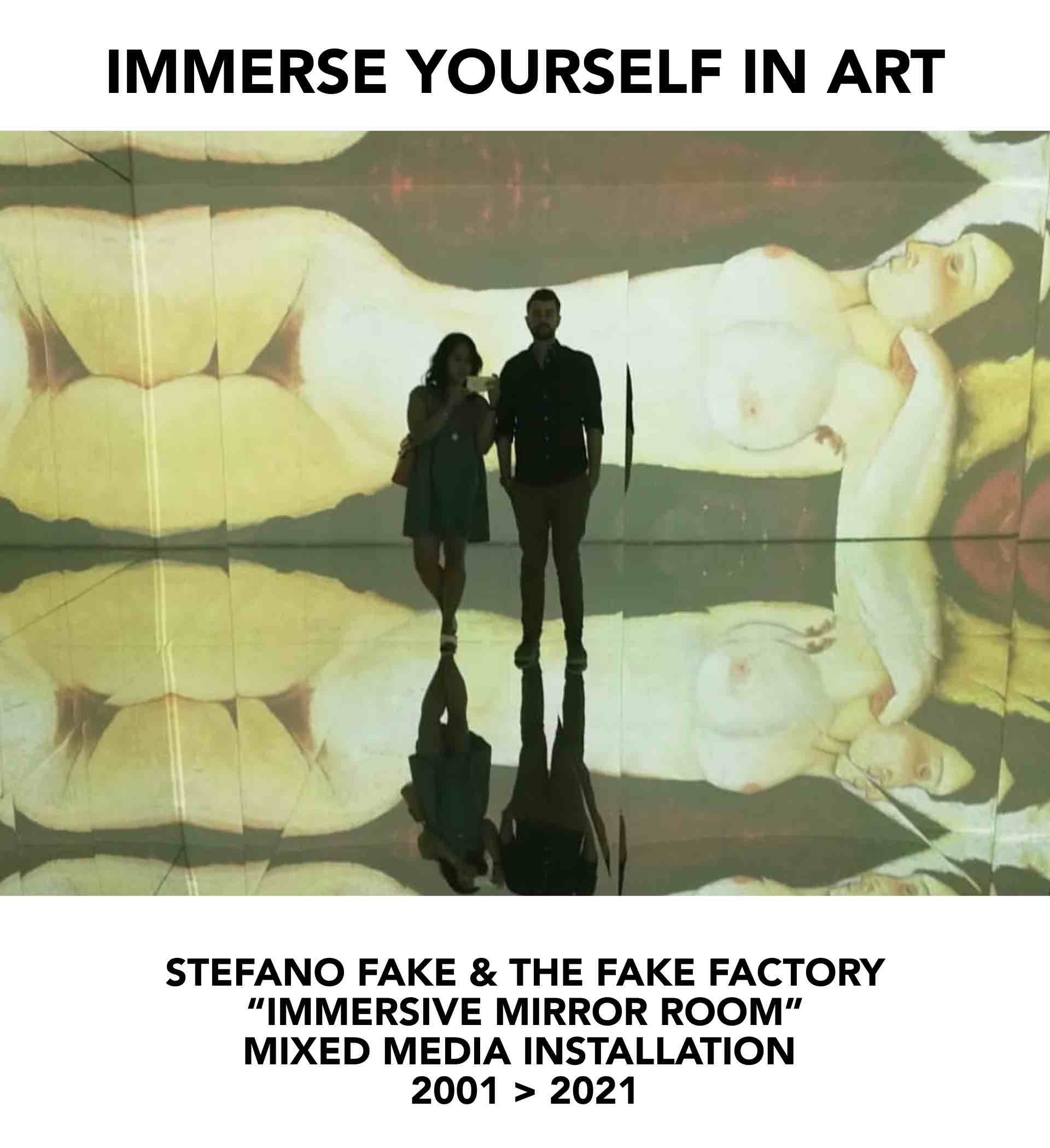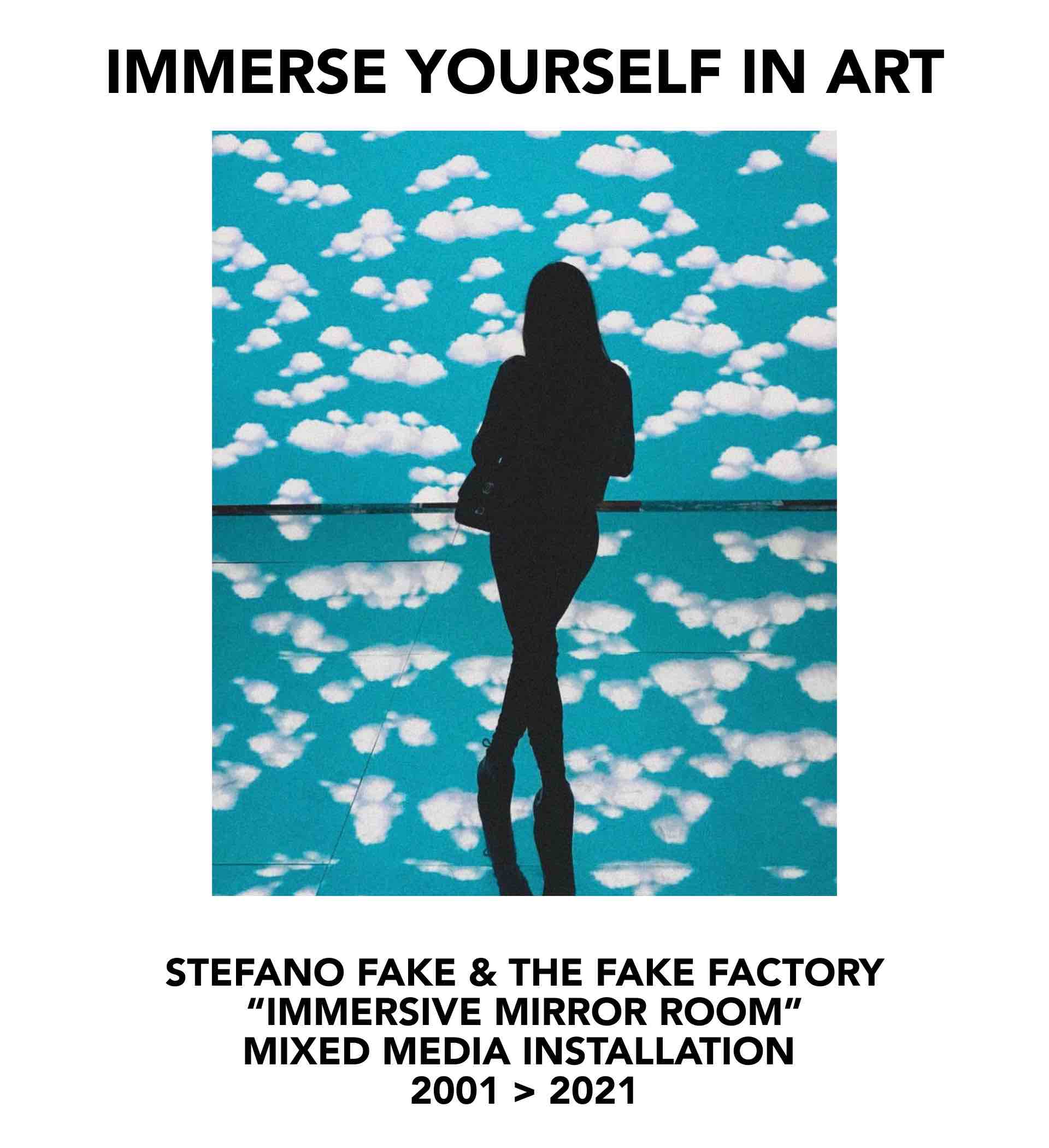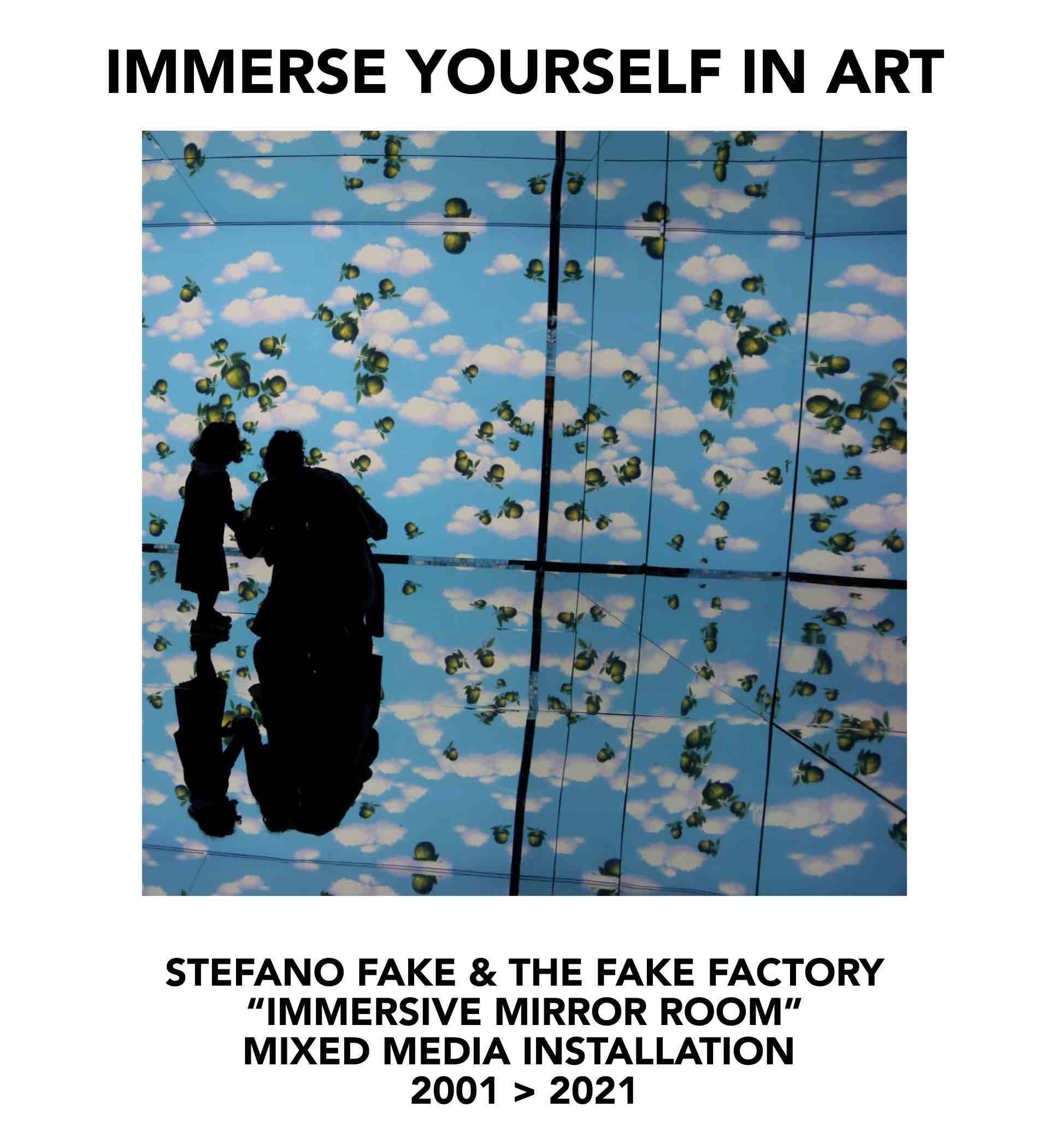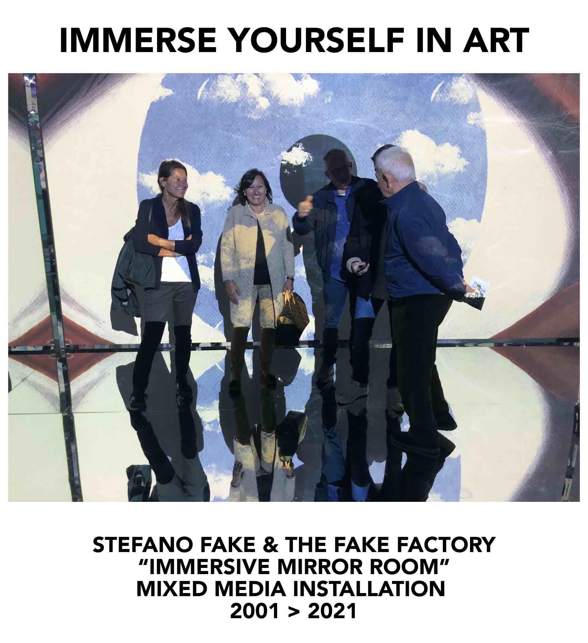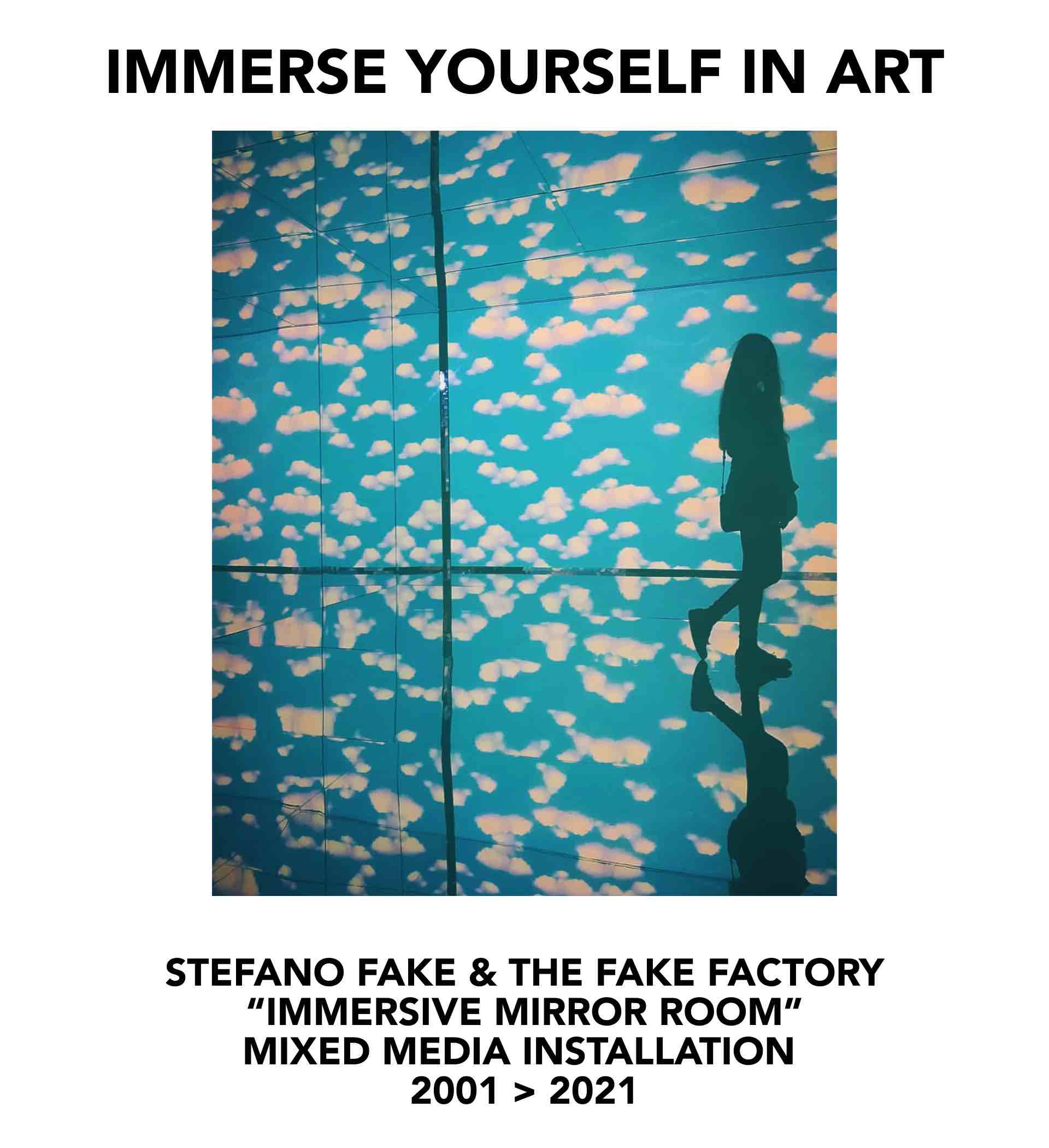 L’installazione “Immersive Mirror Room” è stata creata dall’artista italiano Stefano Fake nel 2001. Già nel 2001 ha iniziato a sviluppare stanze immersive, molto prima che il concetto diventasse una tendenza globale. Le sue immersive mirror rooms hanno attratto milioni di visitatori nel corso degli anni, contribuendo a definire il linguaggio dell’arte digitale e immersiva. Questa innovativa opera d’arte è stata esposta in varie forme sia in Italia che a livello internazionale, all’interno di festival, eventi e mostre innovative. Dal 2001 ad oggi, milioni di persone hanno visitato le immersive mirror rooms create da Stefano Fake & The Fake Factory.