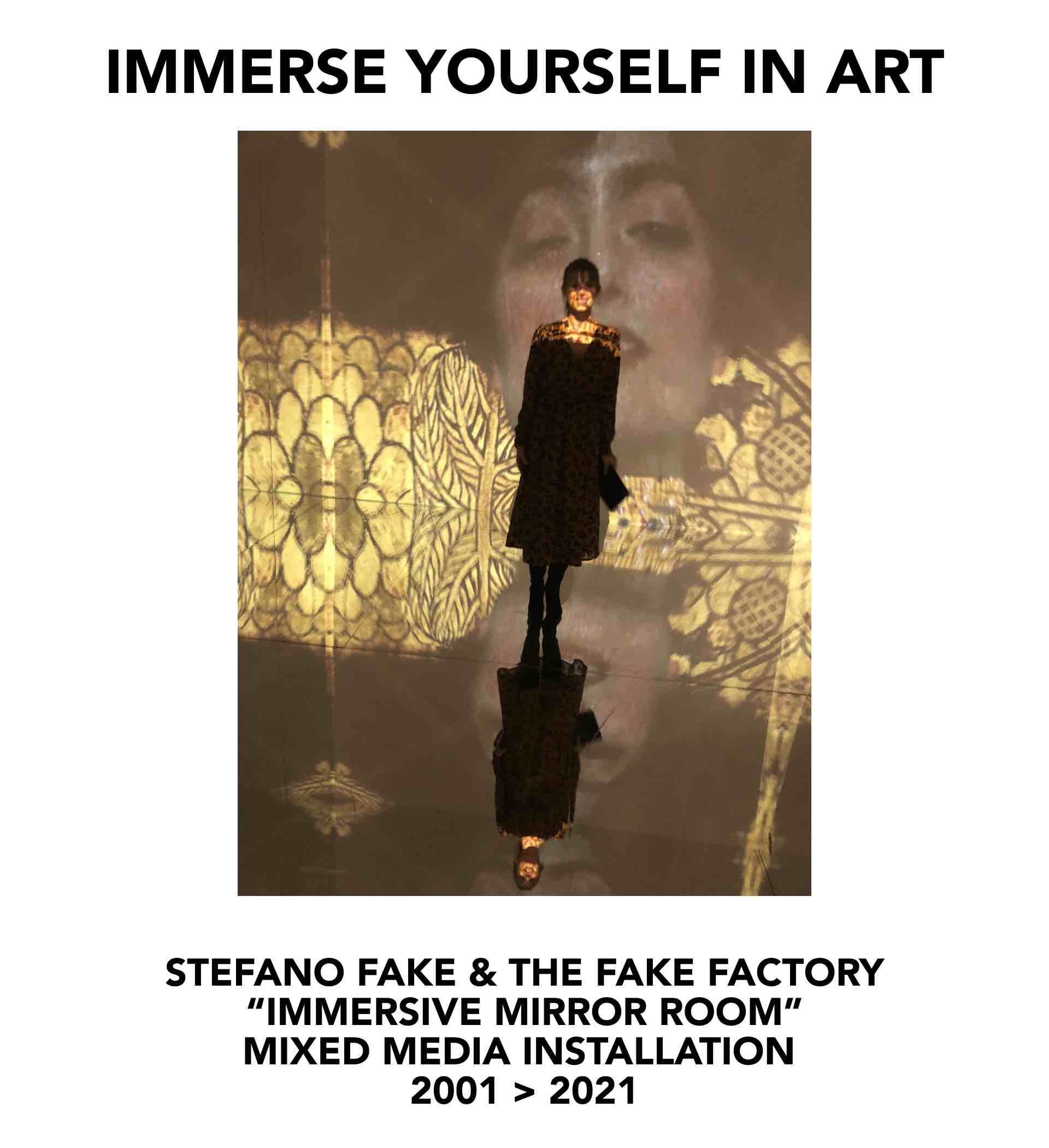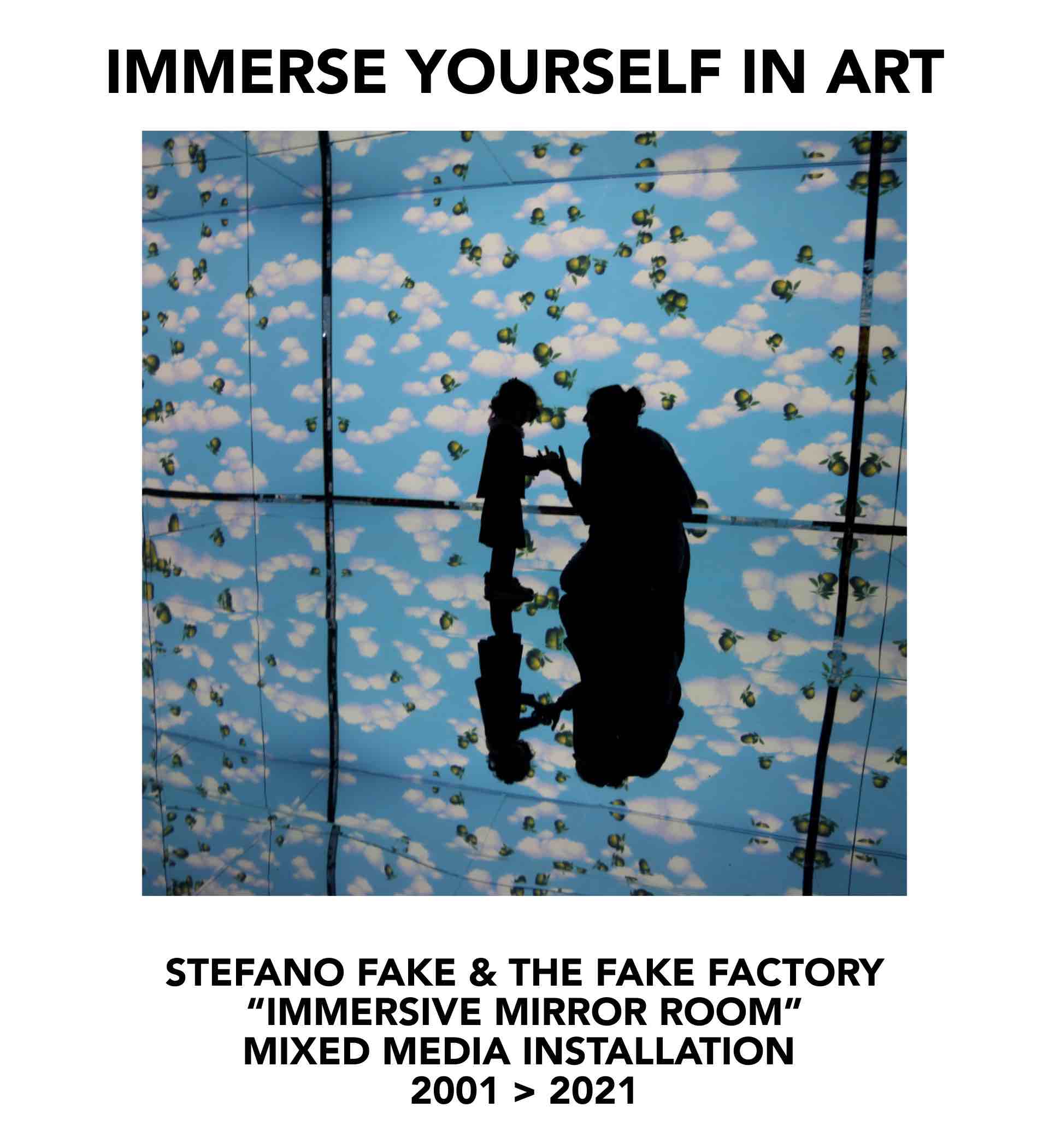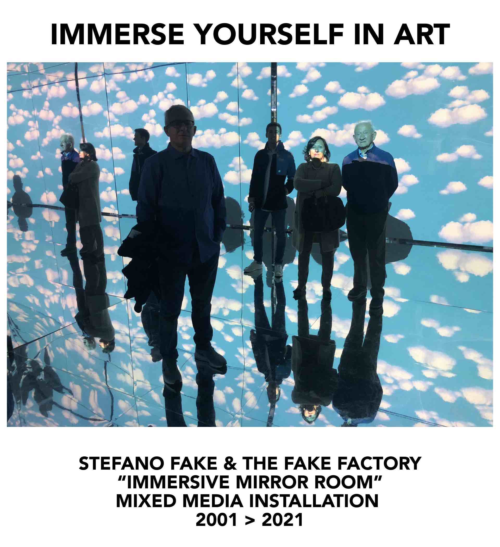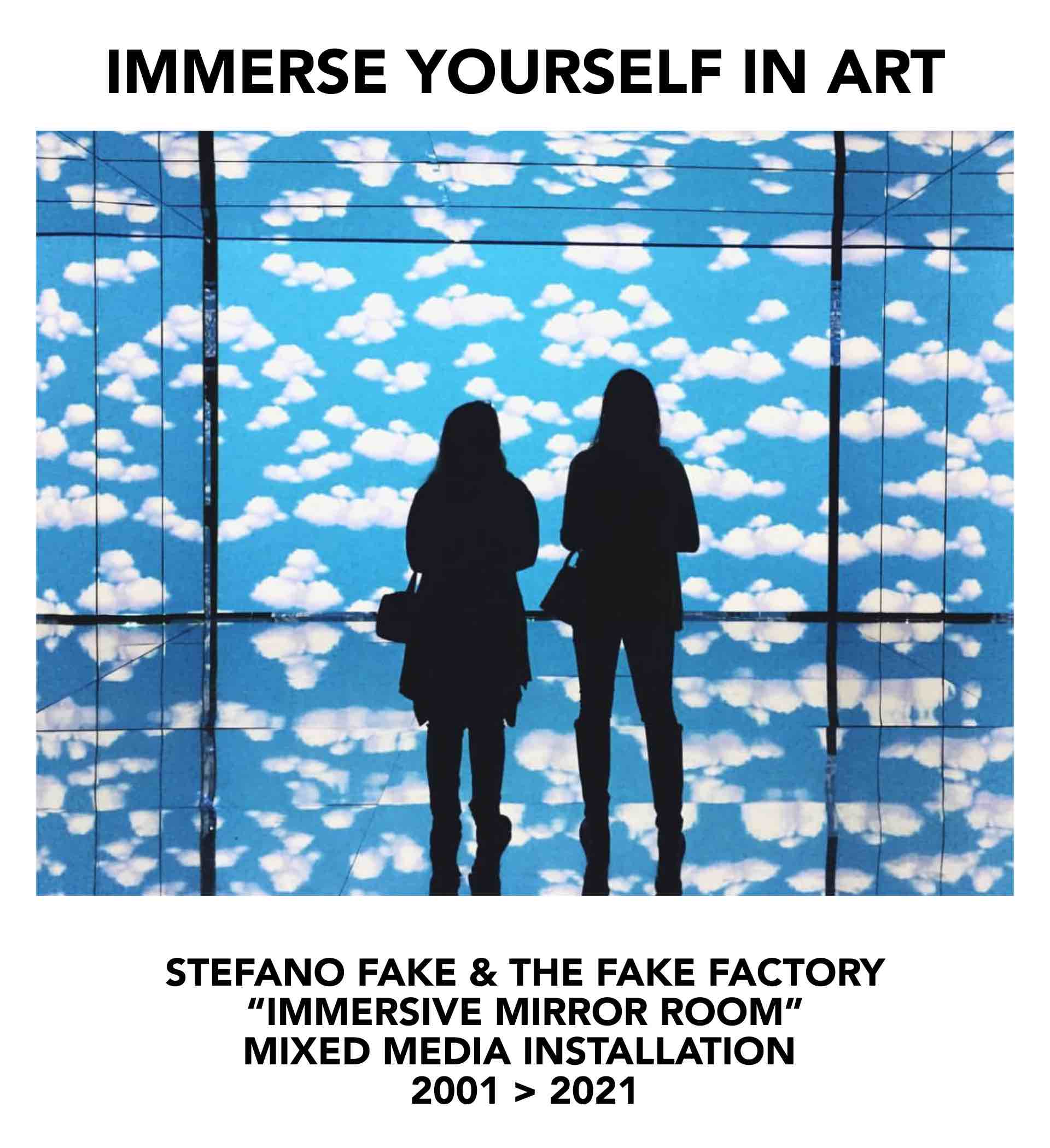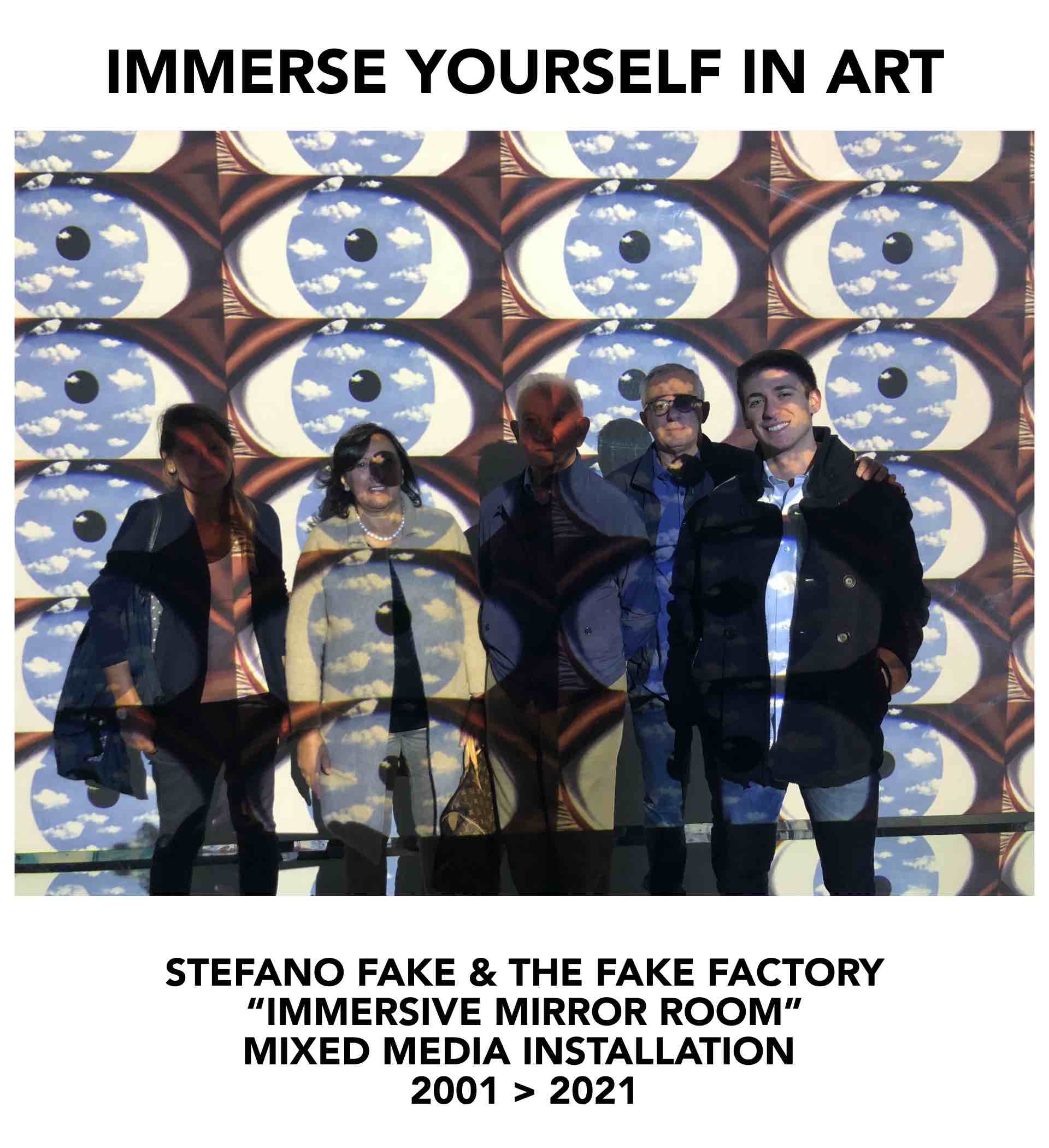 L’installazione “Immersive Mirror Room” è stata creata dall’artista italiano Stefano Fake nel 2001. Già nel 2001 ha iniziato a sviluppare stanze immersive, molto prima che il concetto diventasse una tendenza globale. Le sue immersive mirror rooms hanno attratto milioni di visitatori nel corso degli anni, contribuendo a definire il linguaggio dell’arte digitale e immersiva. Questa innovativa opera d’arte è stata esposta in varie forme sia in Italia che a livello internazionale, all’interno di festival, eventi e mostre innovative. Dal 2001 ad oggi, milioni di persone hanno visitato le immersive mirror rooms create da Stefano Fake & The Fake Factory.