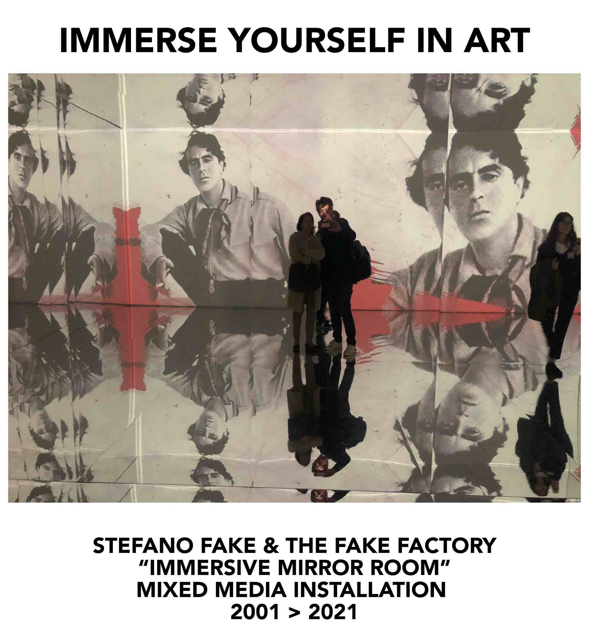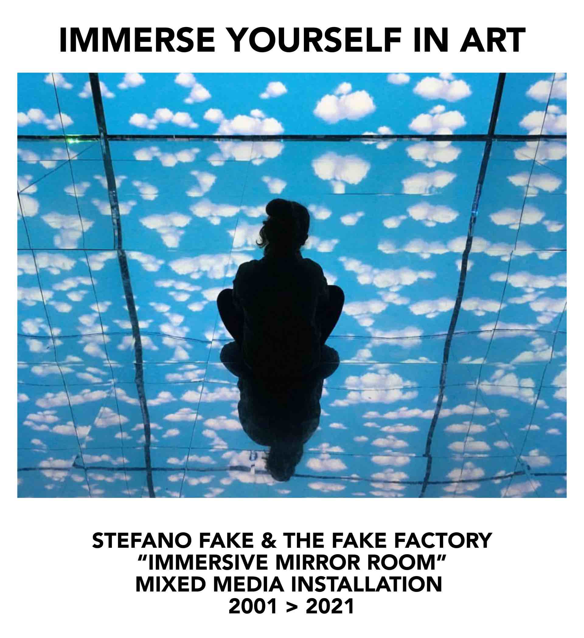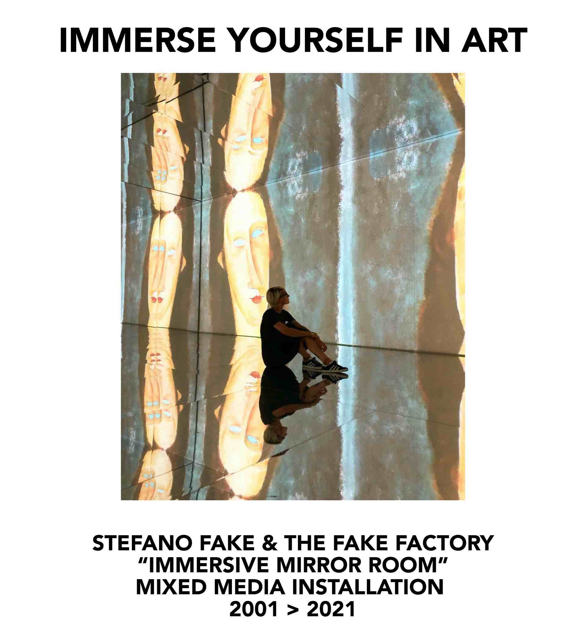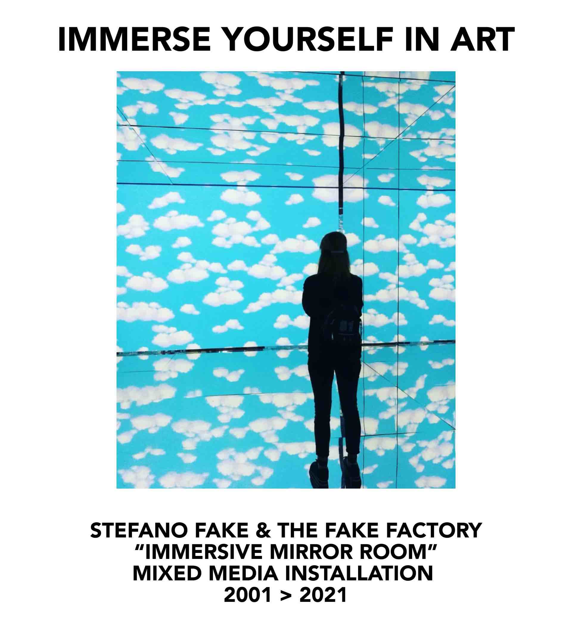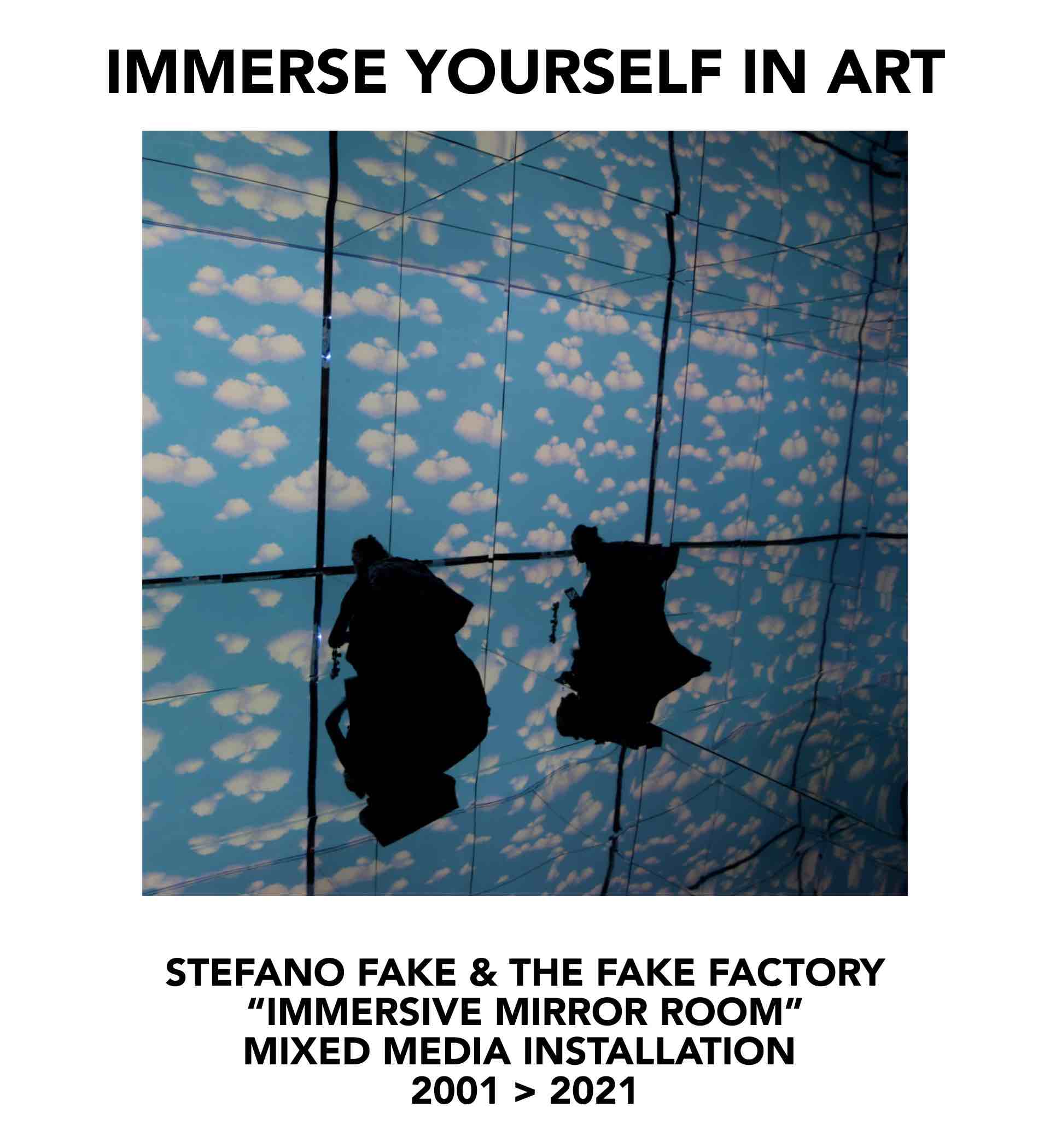 L’installazione “Immersive Mirror Room” è stata creata dall’artista italiano Stefano Fake nel 2001. Già nel 2001 ha iniziato a sviluppare stanze immersive, molto prima che il concetto diventasse una tendenza globale. Le sue immersive mirror rooms hanno attratto milioni di visitatori nel corso degli anni, contribuendo a definire il linguaggio dell’arte digitale e immersiva. Questa innovativa opera d’arte è stata esposta in varie forme sia in Italia che a livello internazionale, all’interno di festival, eventi e mostre innovative. Dal 2001 ad oggi, milioni di persone hanno visitato le immersive mirror rooms create da Stefano Fake & The Fake Factory.