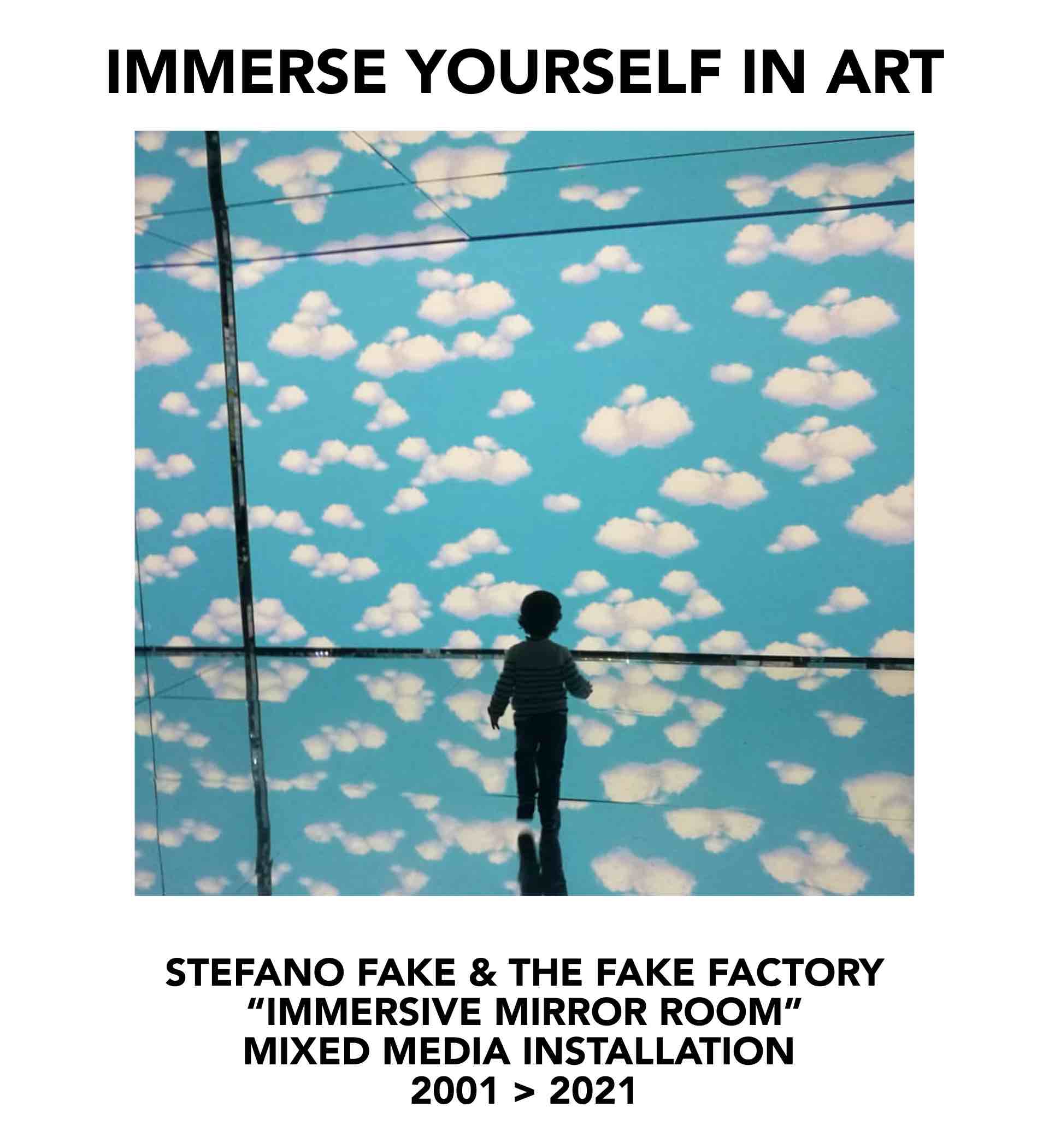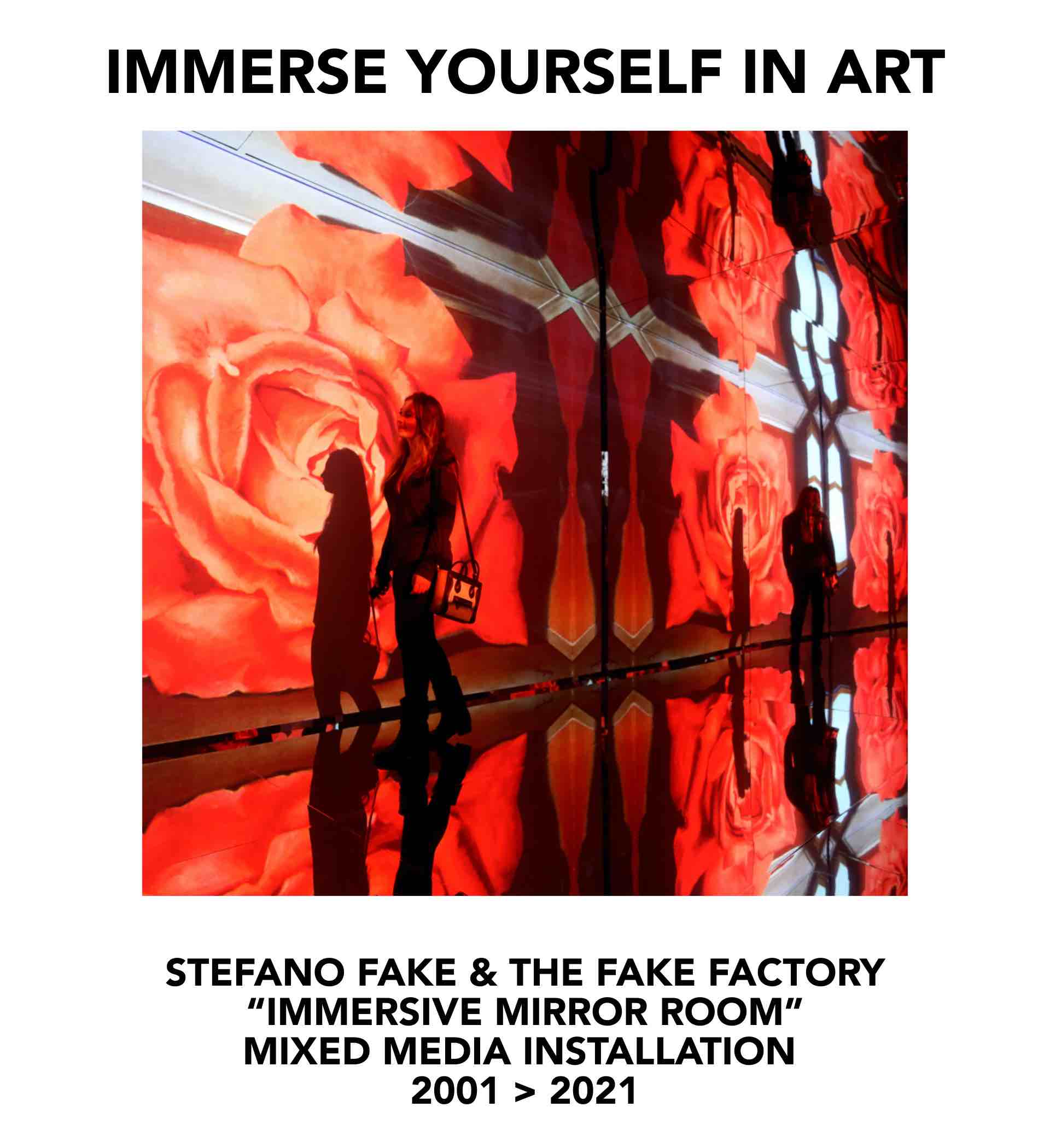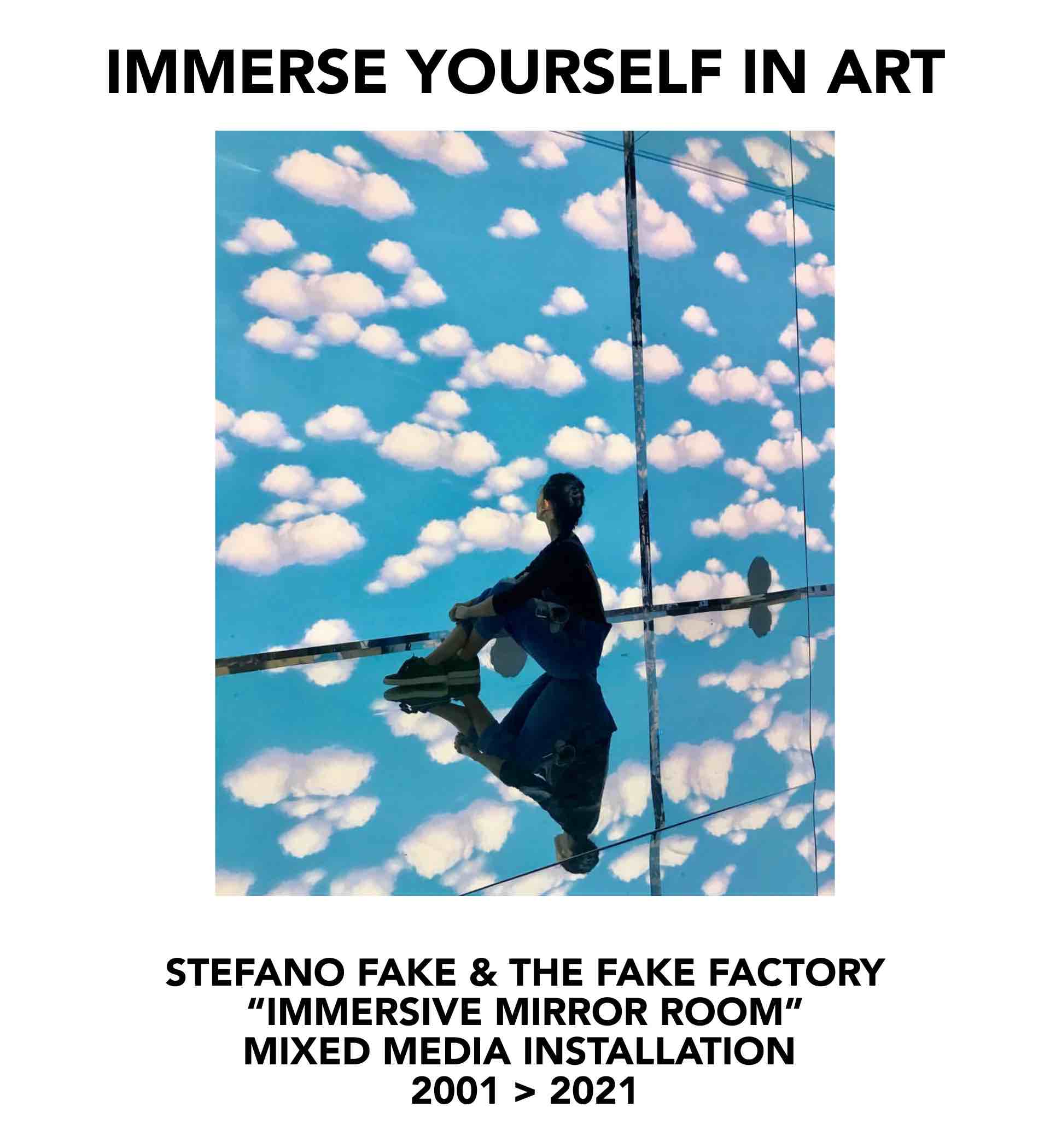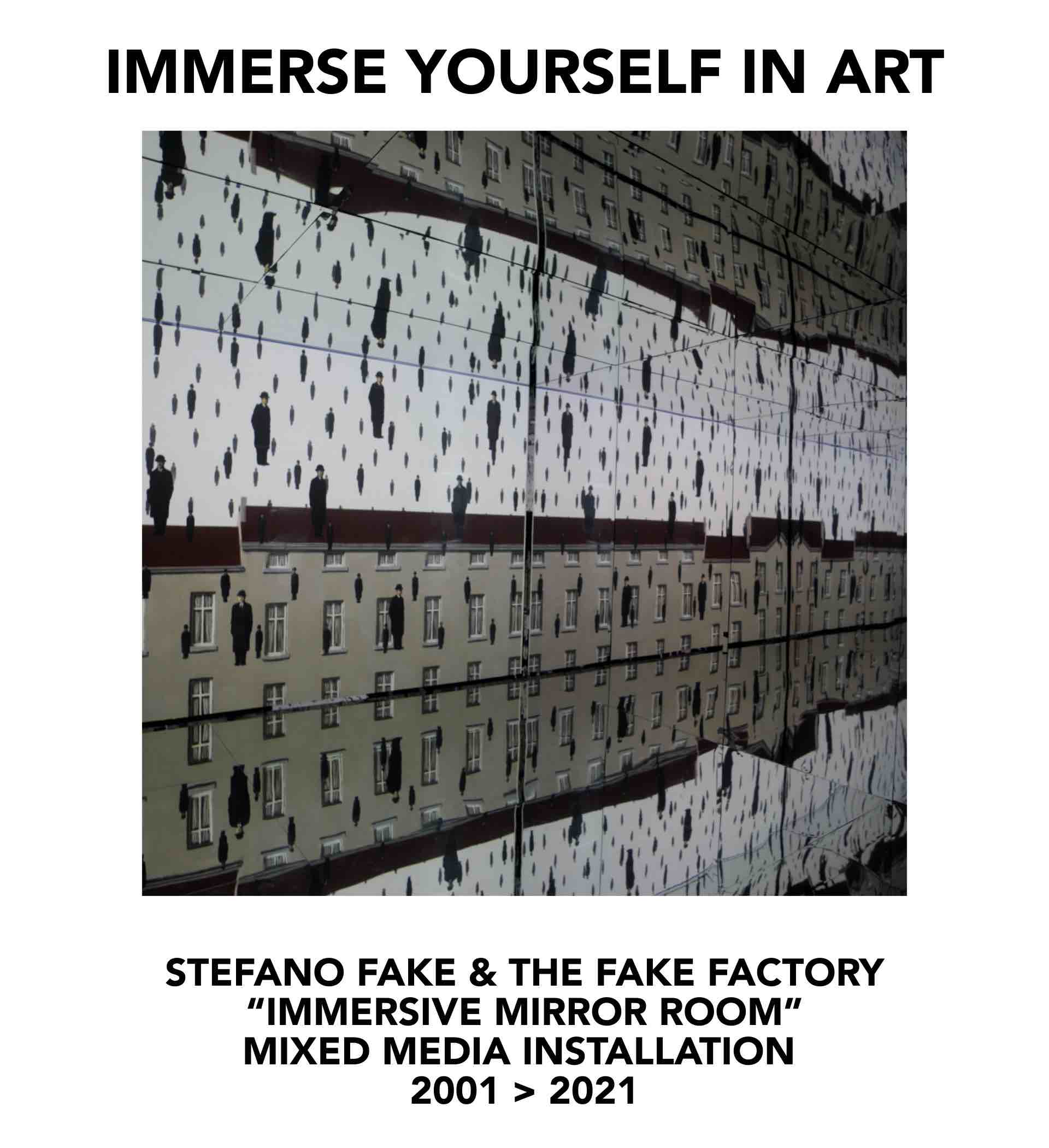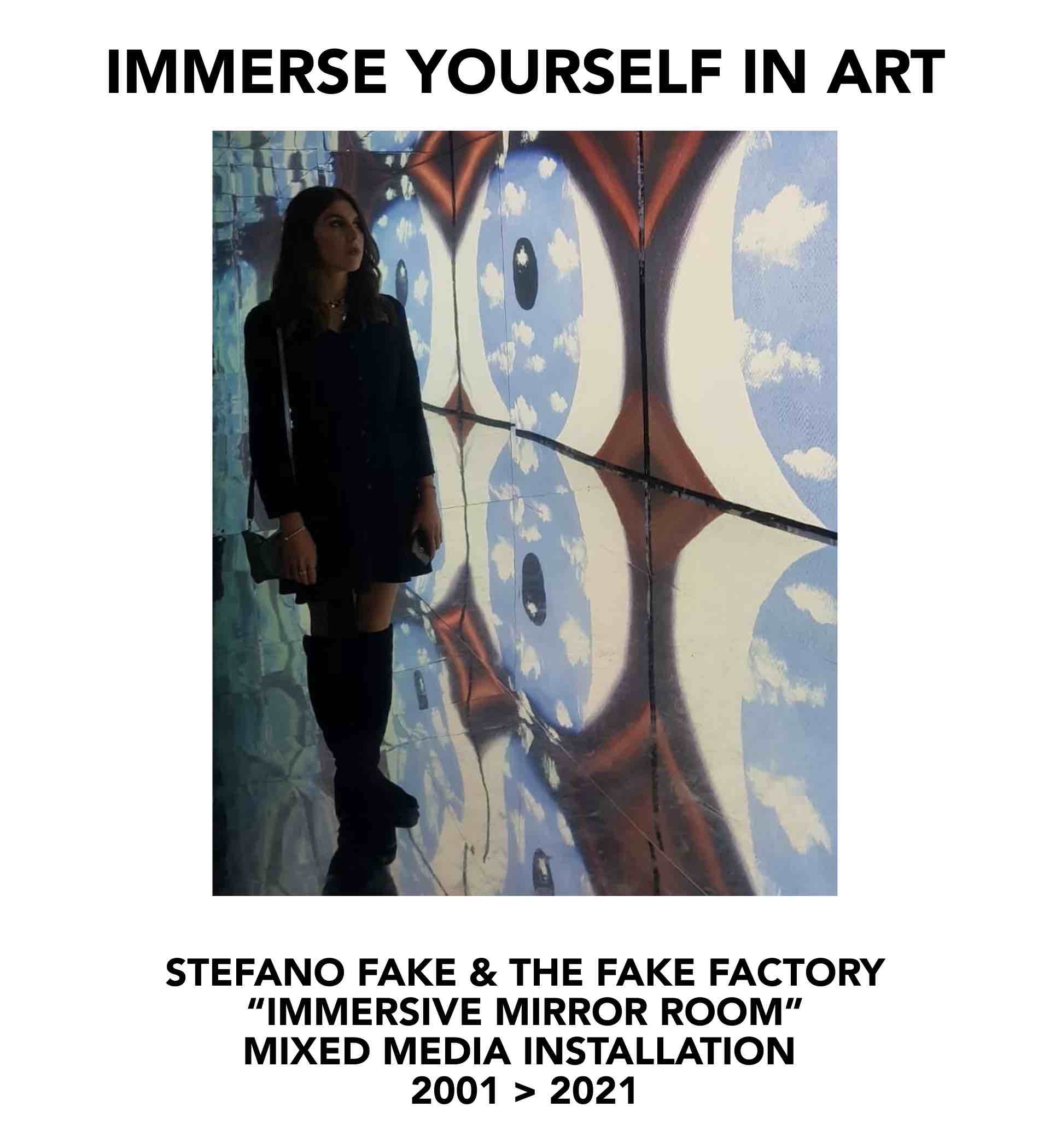 L’installazione “Immersive Mirror Room” è stata creata dall’artista italiano Stefano Fake nel 2001. Già nel 2001 ha iniziato a sviluppare stanze immersive, molto prima che il concetto diventasse una tendenza globale. Le sue immersive mirror rooms hanno attratto milioni di visitatori nel corso degli anni, contribuendo a definire il linguaggio dell’arte digitale e immersiva. Questa innovativa opera d’arte è stata esposta in varie forme sia in Italia che a livello internazionale, all’interno di festival, eventi e mostre innovative. Dal 2001 ad oggi, milioni di persone hanno visitato le immersive mirror rooms create da Stefano Fake & The Fake Factory.