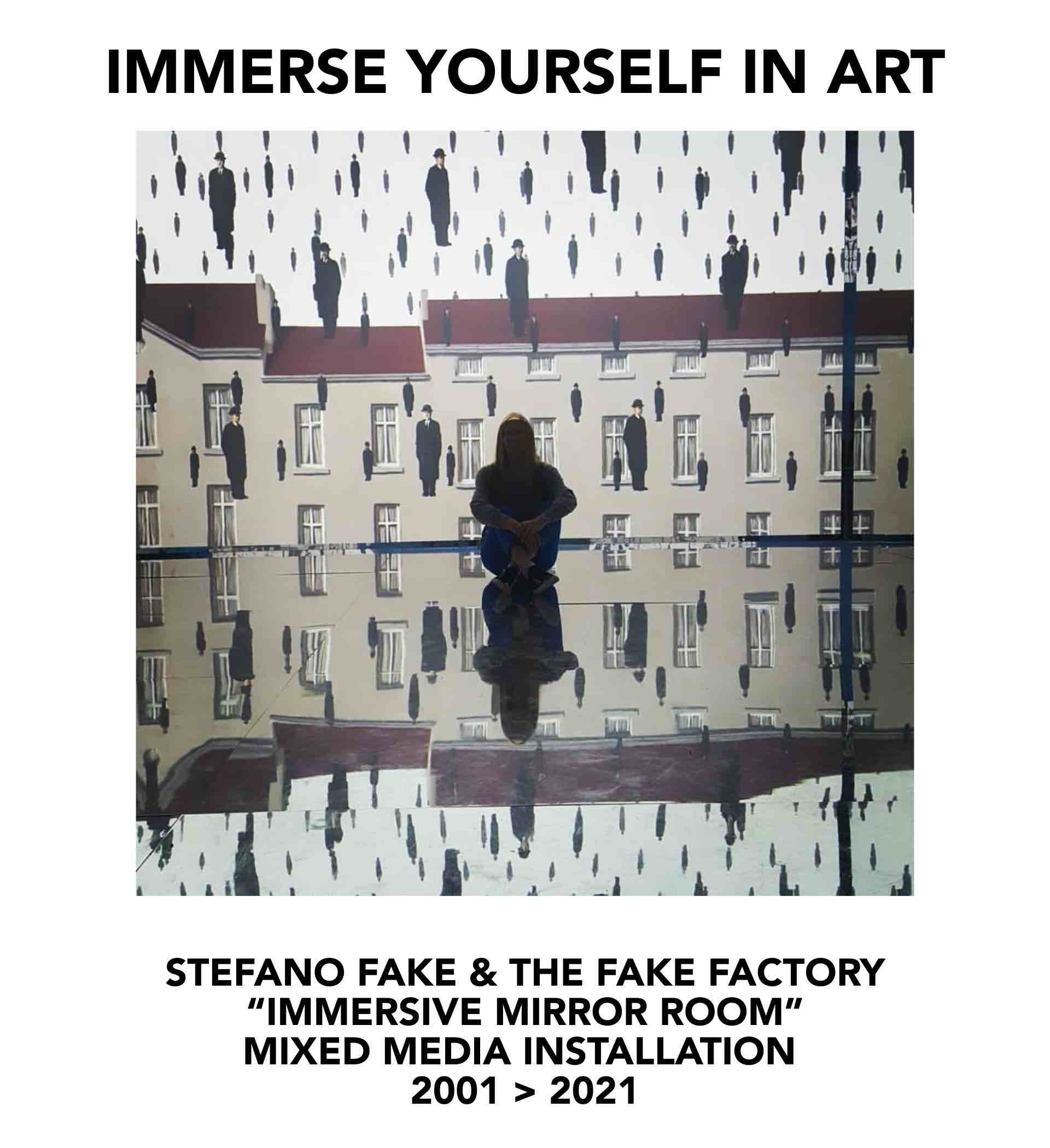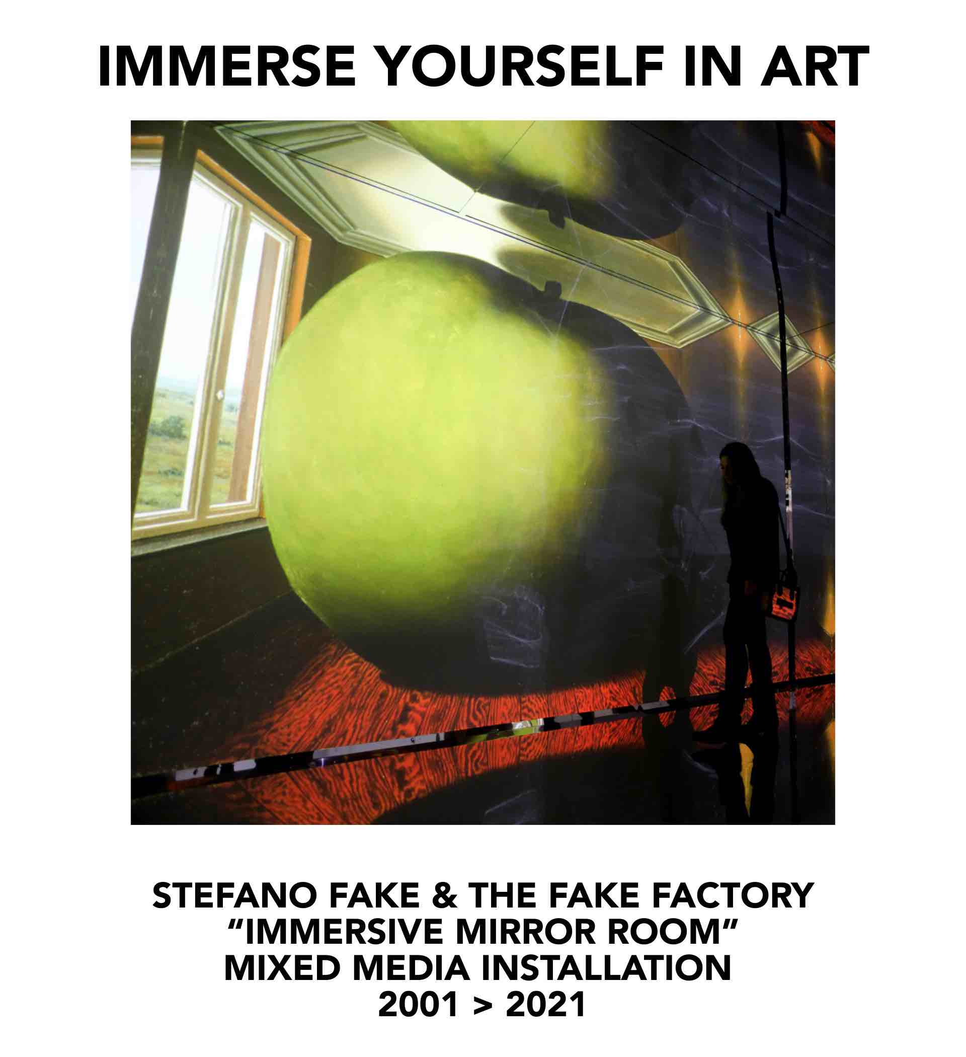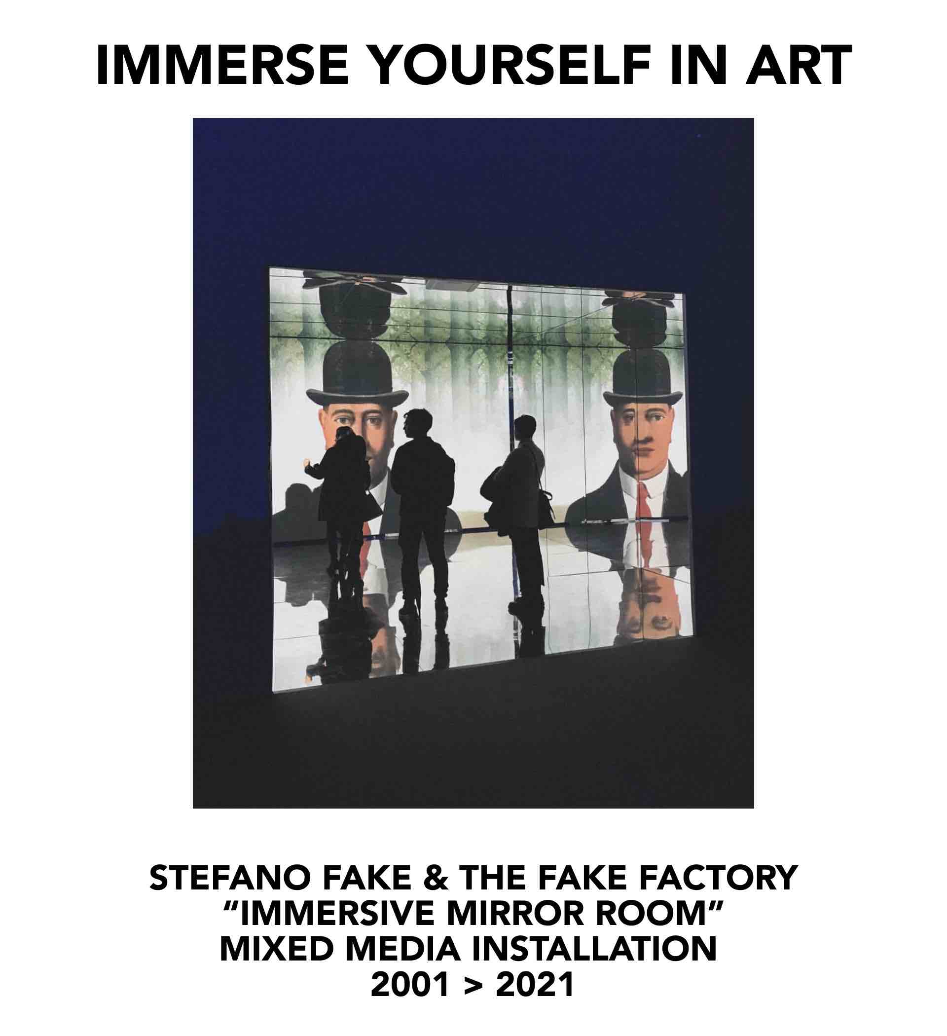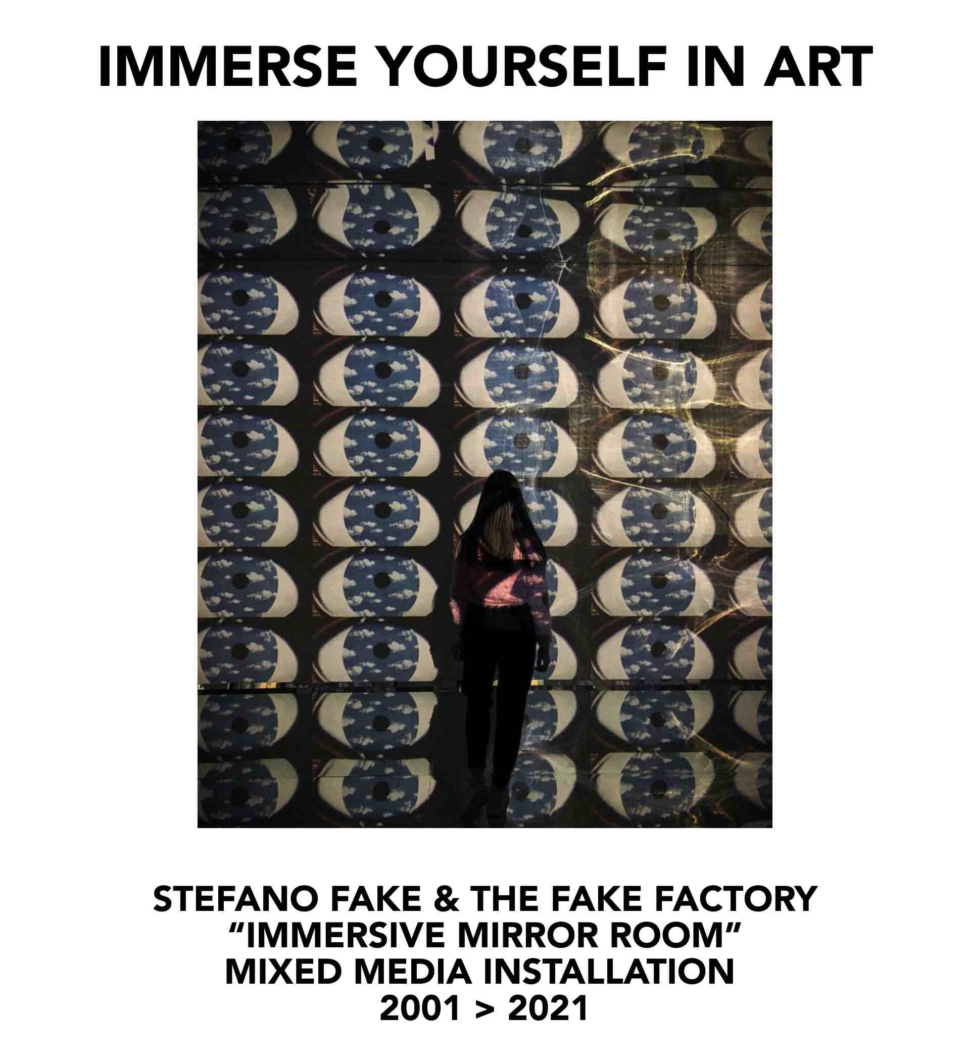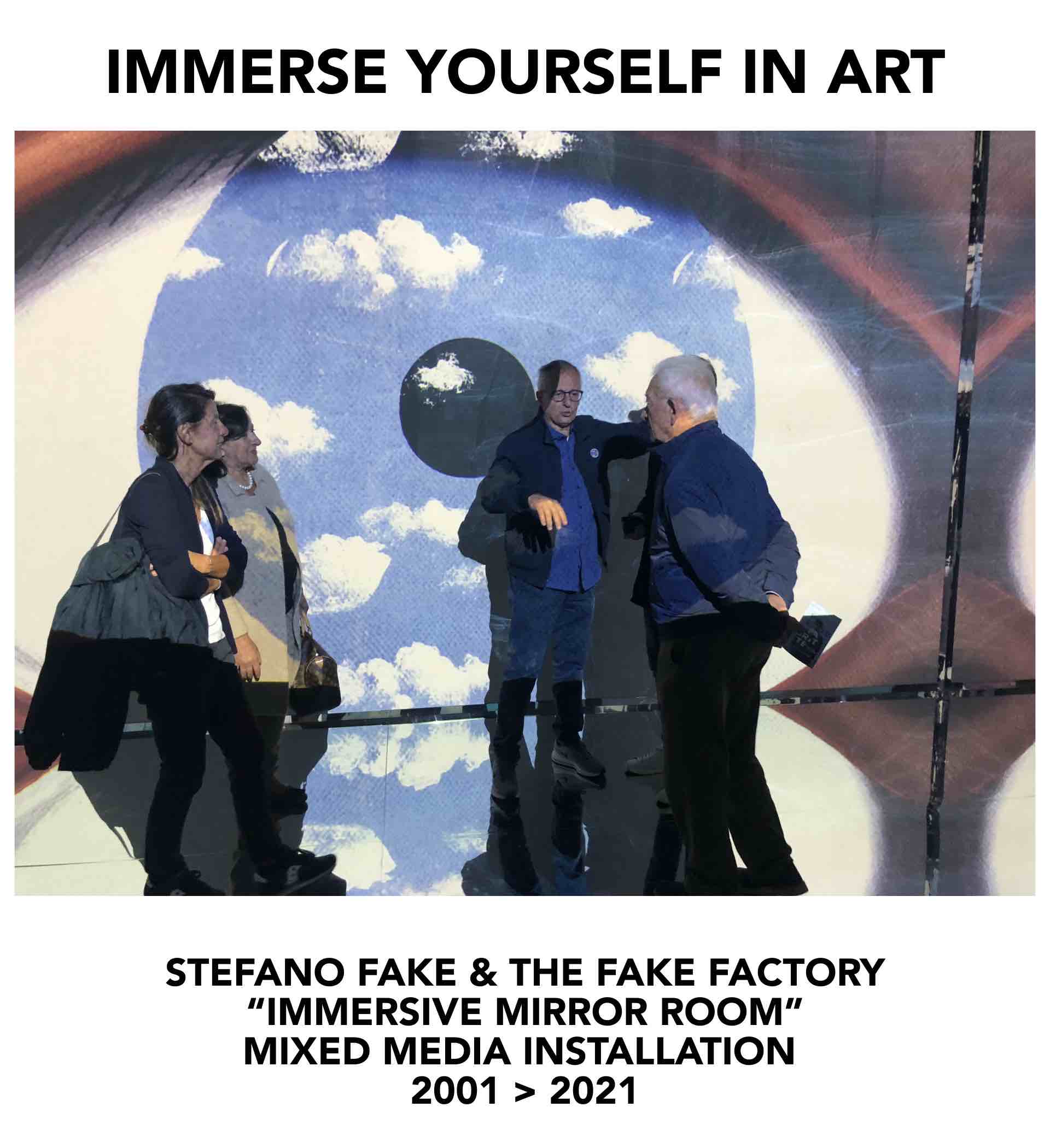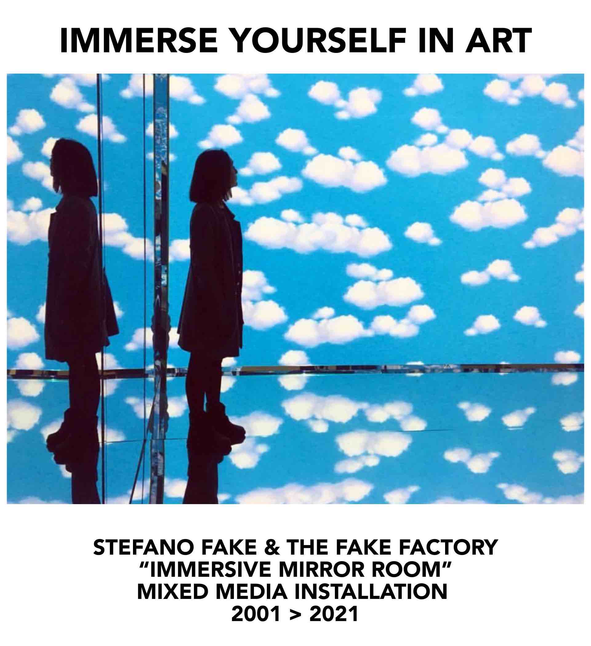 L’installazione “Immersive Mirror Room” è stata creata dall’artista italiano Stefano Fake nel 2001. Già nel 2001 ha iniziato a sviluppare stanze immersive, molto prima che il concetto diventasse una tendenza globale. Le sue immersive mirror rooms hanno attratto milioni di visitatori nel corso degli anni, contribuendo a definire il linguaggio dell’arte digitale e immersiva. Questa innovativa opera d’arte è stata esposta in varie forme sia in Italia che a livello internazionale, all’interno di festival, eventi e mostre innovative. Dal 2001 ad oggi, milioni di persone hanno visitato le immersive mirror rooms create da Stefano Fake & The Fake Factory.