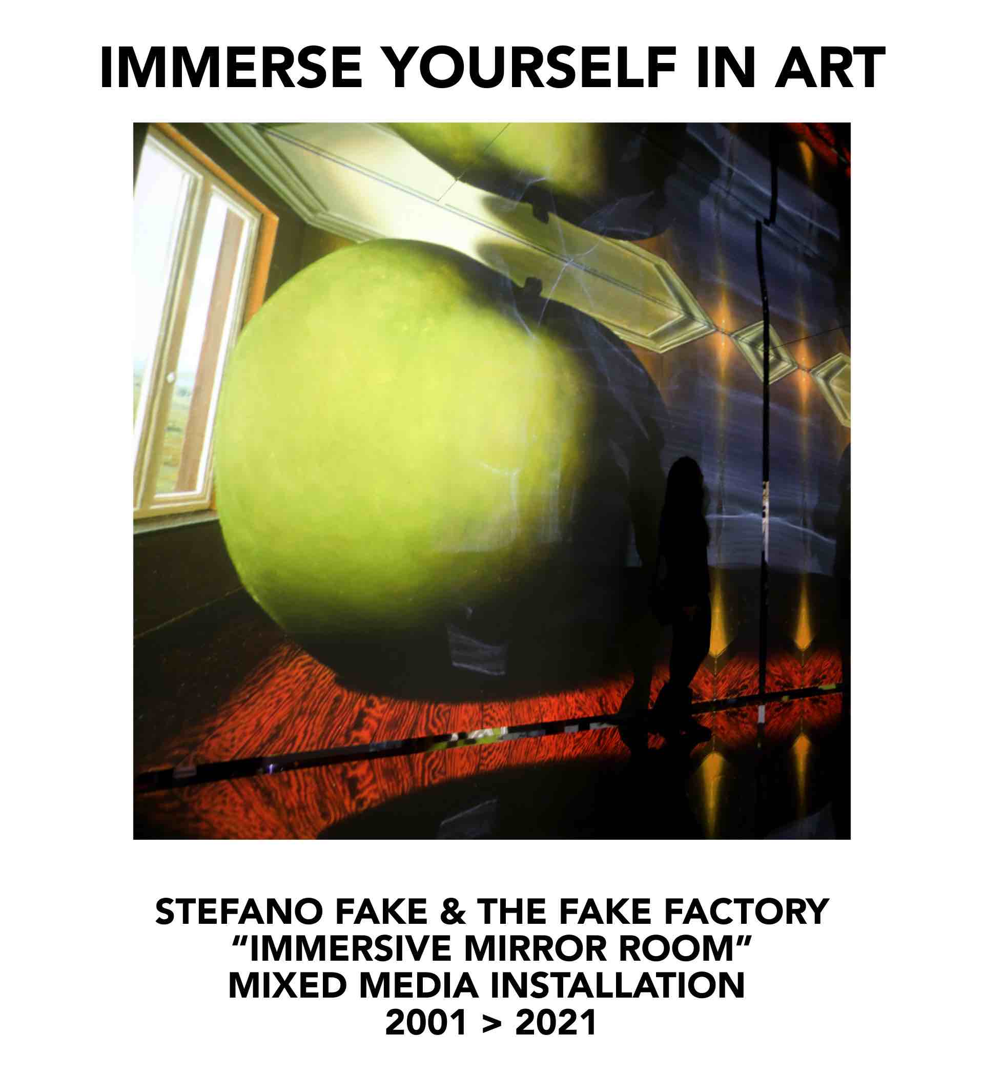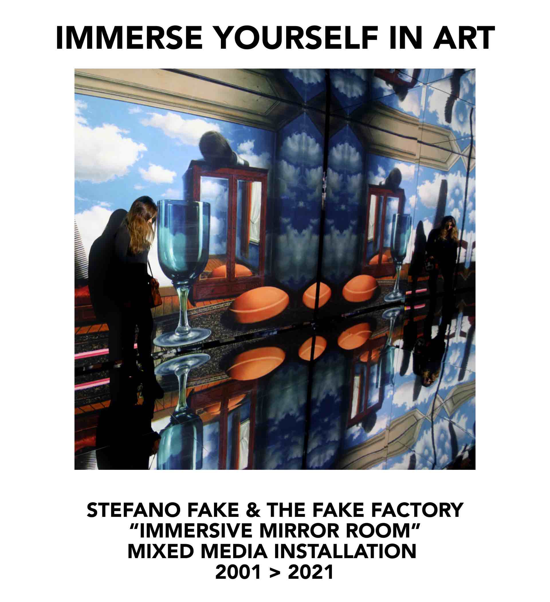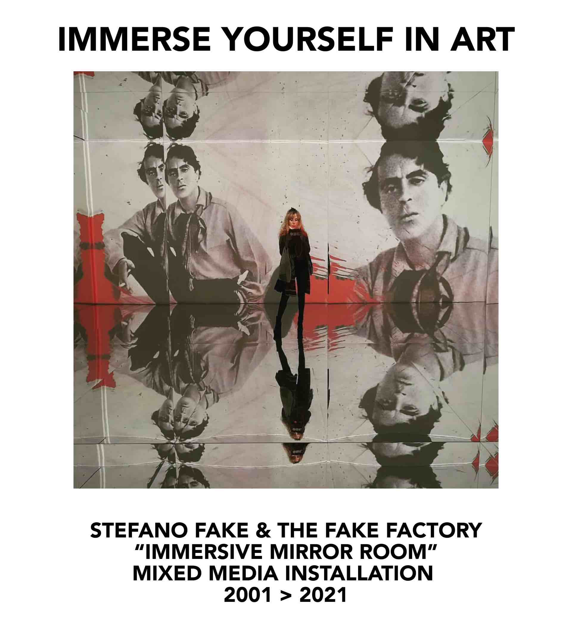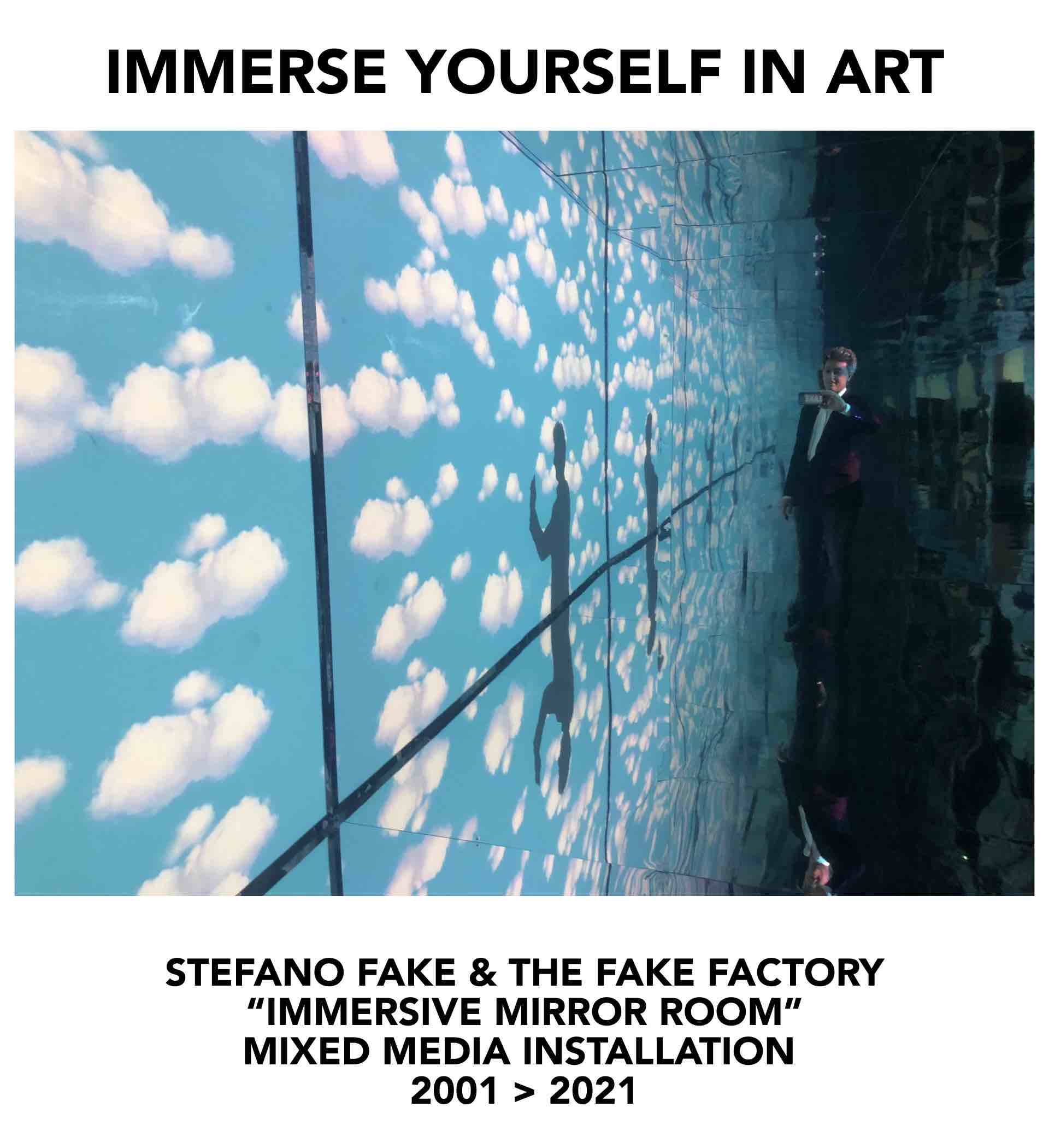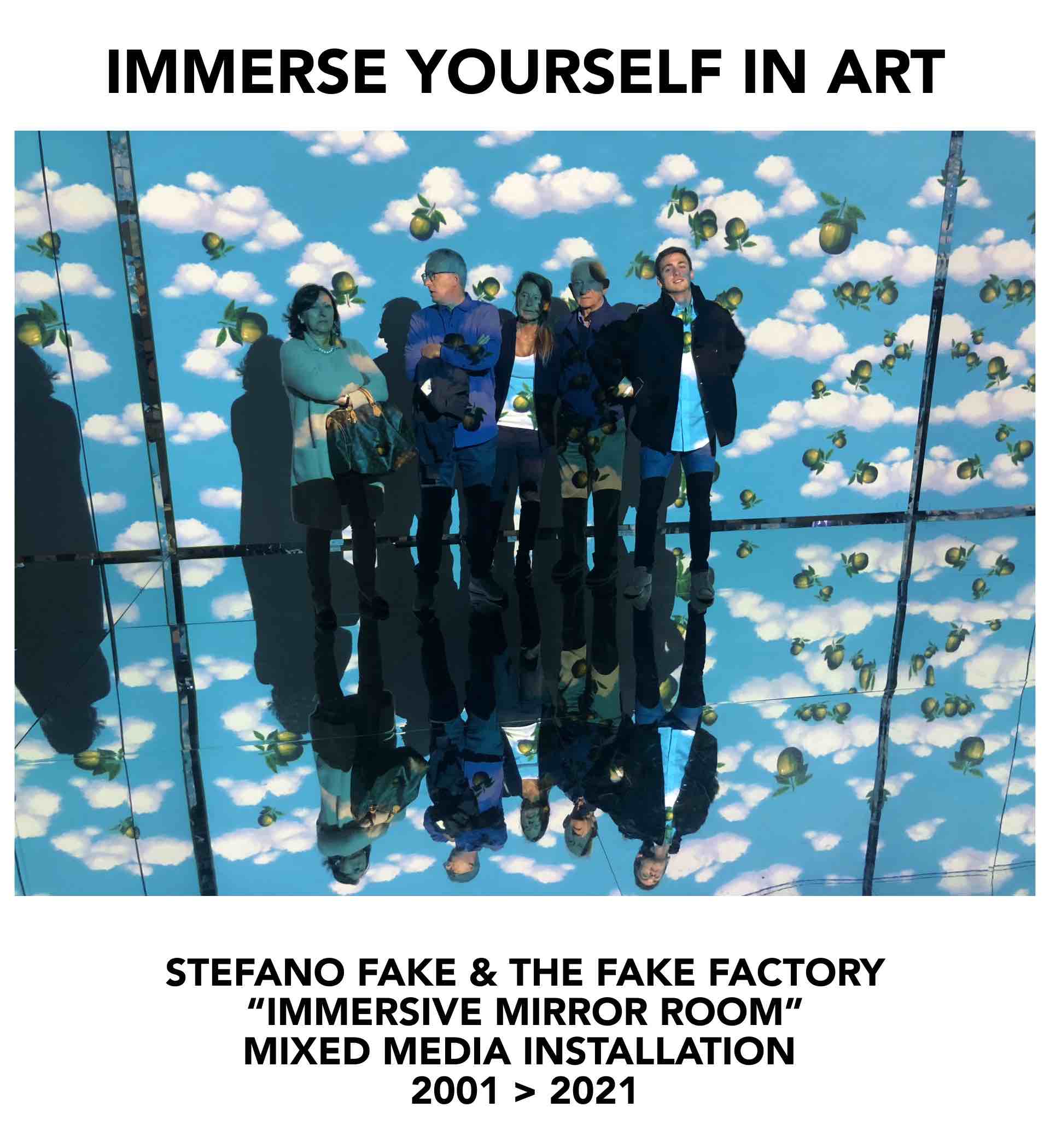 L’installazione “Immersive Mirror Room” è stata creata dall’artista italiano Stefano Fake nel 2001. Già nel 2001 ha iniziato a sviluppare stanze immersive, molto prima che il concetto diventasse una tendenza globale. Le sue immersive mirror rooms hanno attratto milioni di visitatori nel corso degli anni, contribuendo a definire il linguaggio dell’arte digitale e immersiva. Questa innovativa opera d’arte è stata esposta in varie forme sia in Italia che a livello internazionale, all’interno di festival, eventi e mostre innovative. Dal 2001 ad oggi, milioni di persone hanno visitato le immersive mirror rooms create da Stefano Fake & The Fake Factory.
