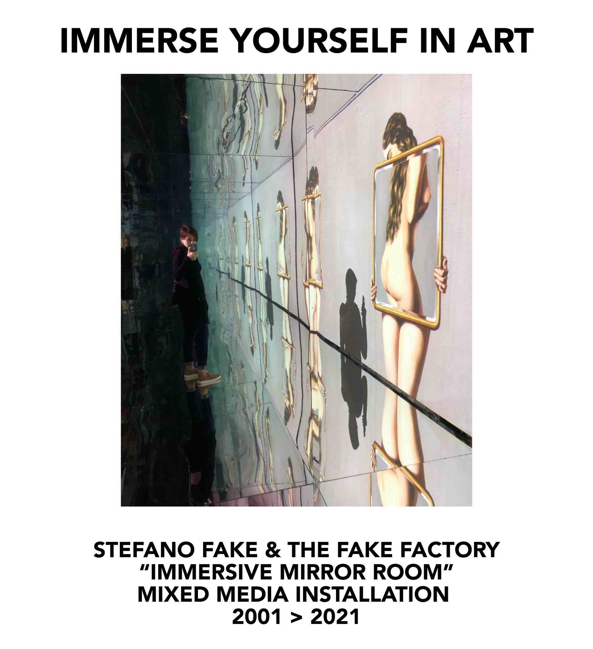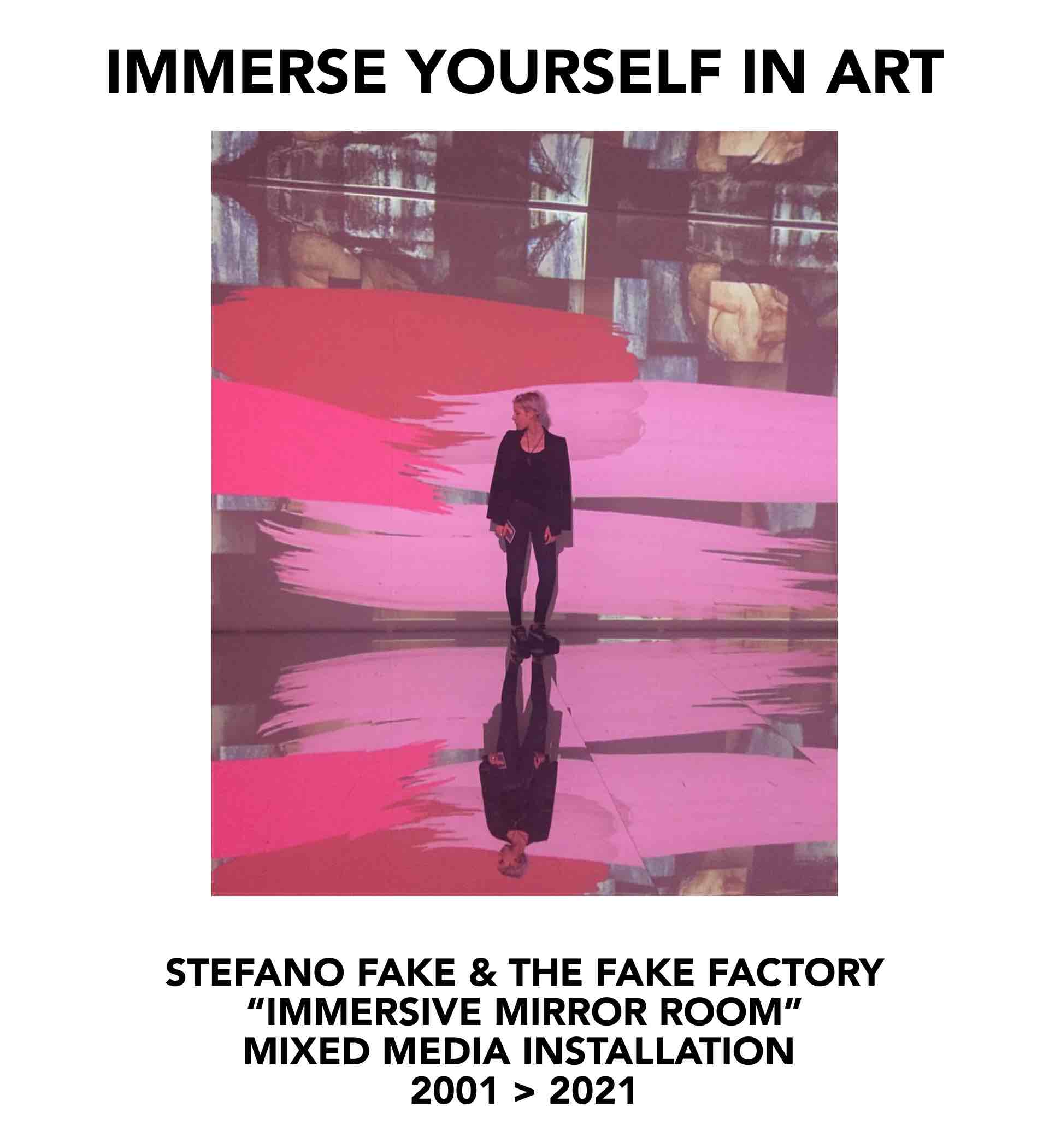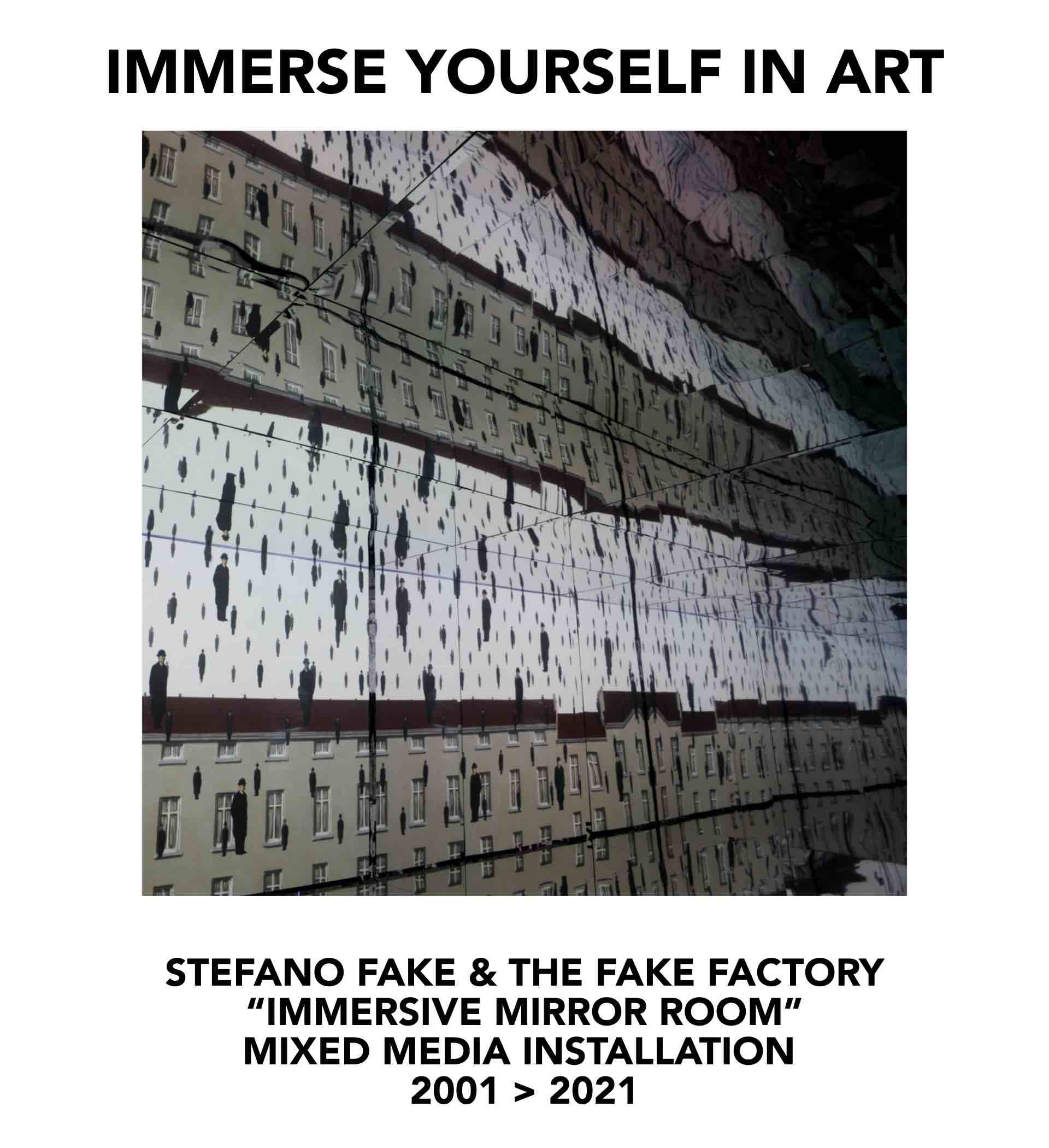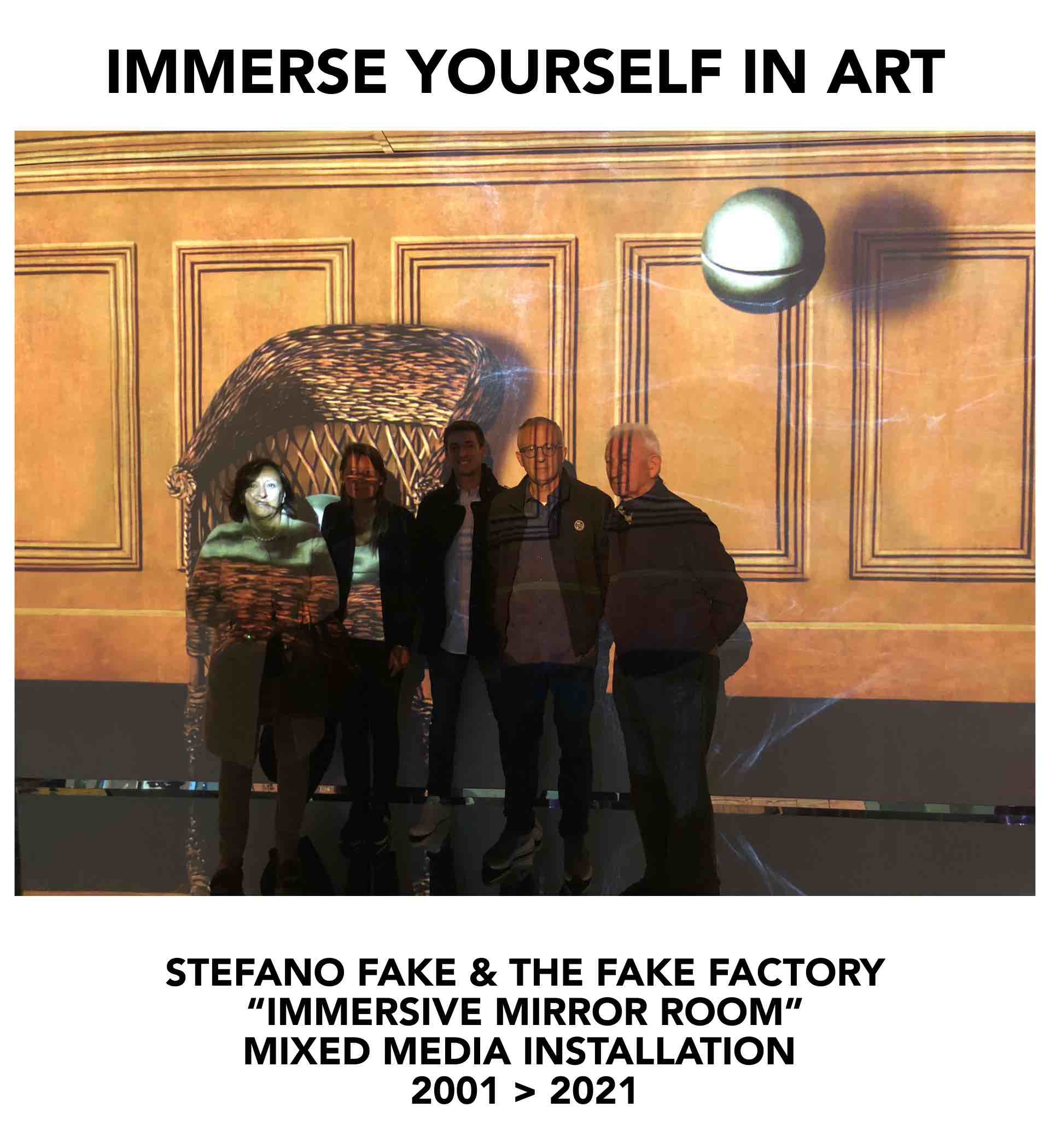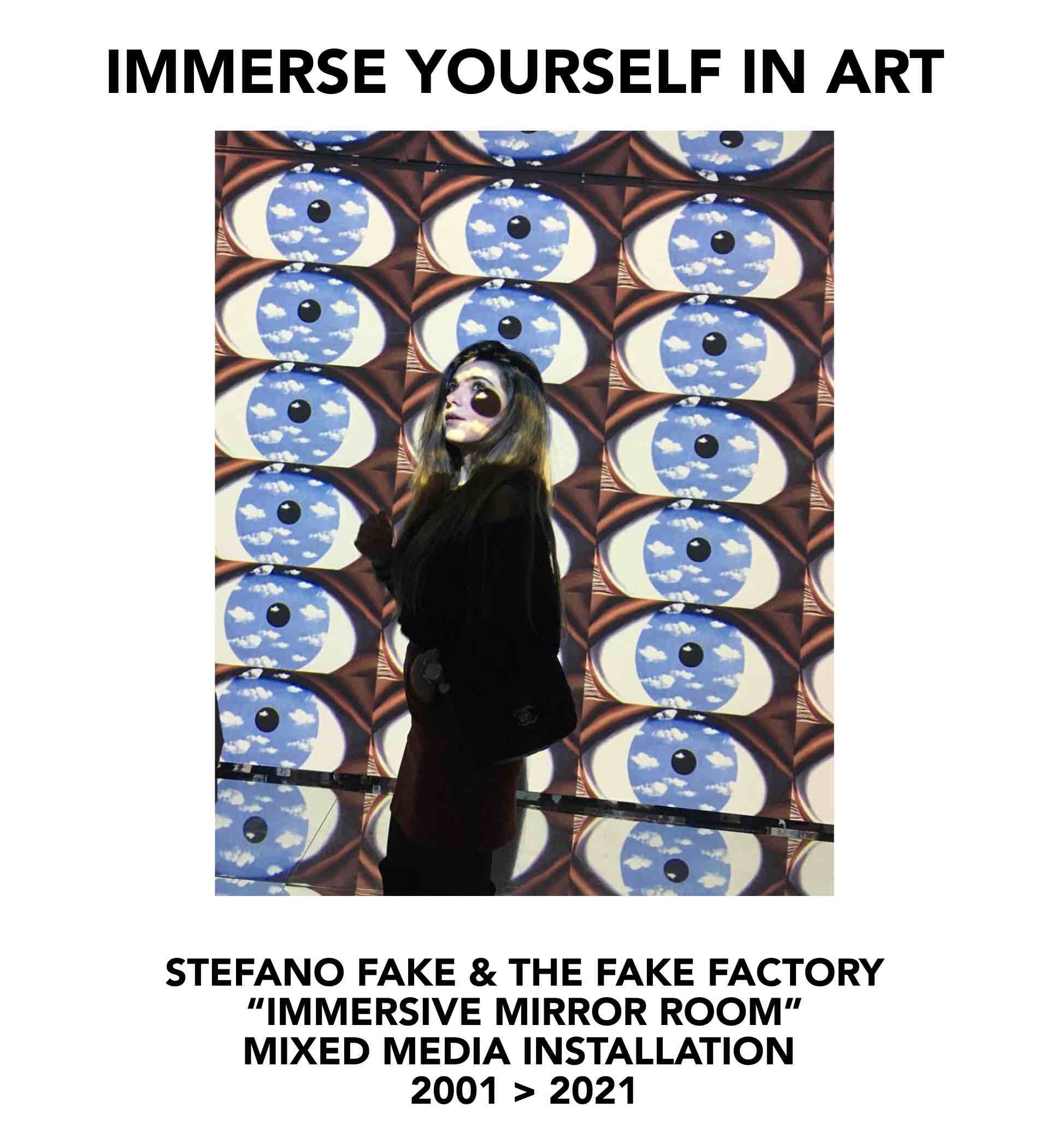 L’installazione “Immersive Mirror Room” è stata creata dall’artista italiano Stefano Fake nel 2001. Già nel 2001 ha iniziato a sviluppare stanze immersive, molto prima che il concetto diventasse una tendenza globale. Le sue immersive mirror rooms hanno attratto milioni di visitatori nel corso degli anni, contribuendo a definire il linguaggio dell’arte digitale e immersiva. Questa innovativa opera d’arte è stata esposta in varie forme sia in Italia che a livello internazionale, all’interno di festival, eventi e mostre innovative. Dal 2001 ad oggi, milioni di persone hanno visitato le immersive mirror rooms create da Stefano Fake & The Fake Factory.