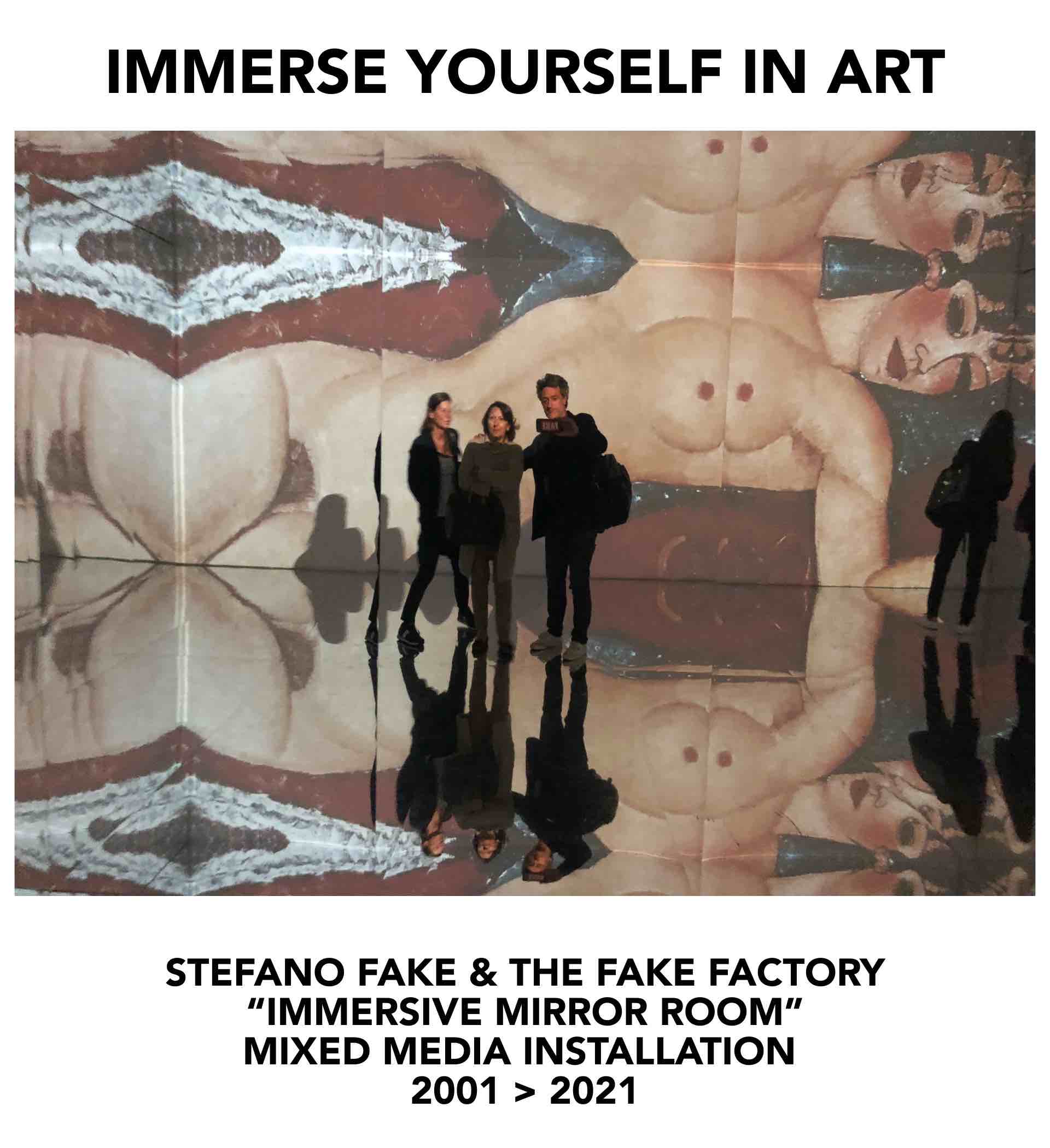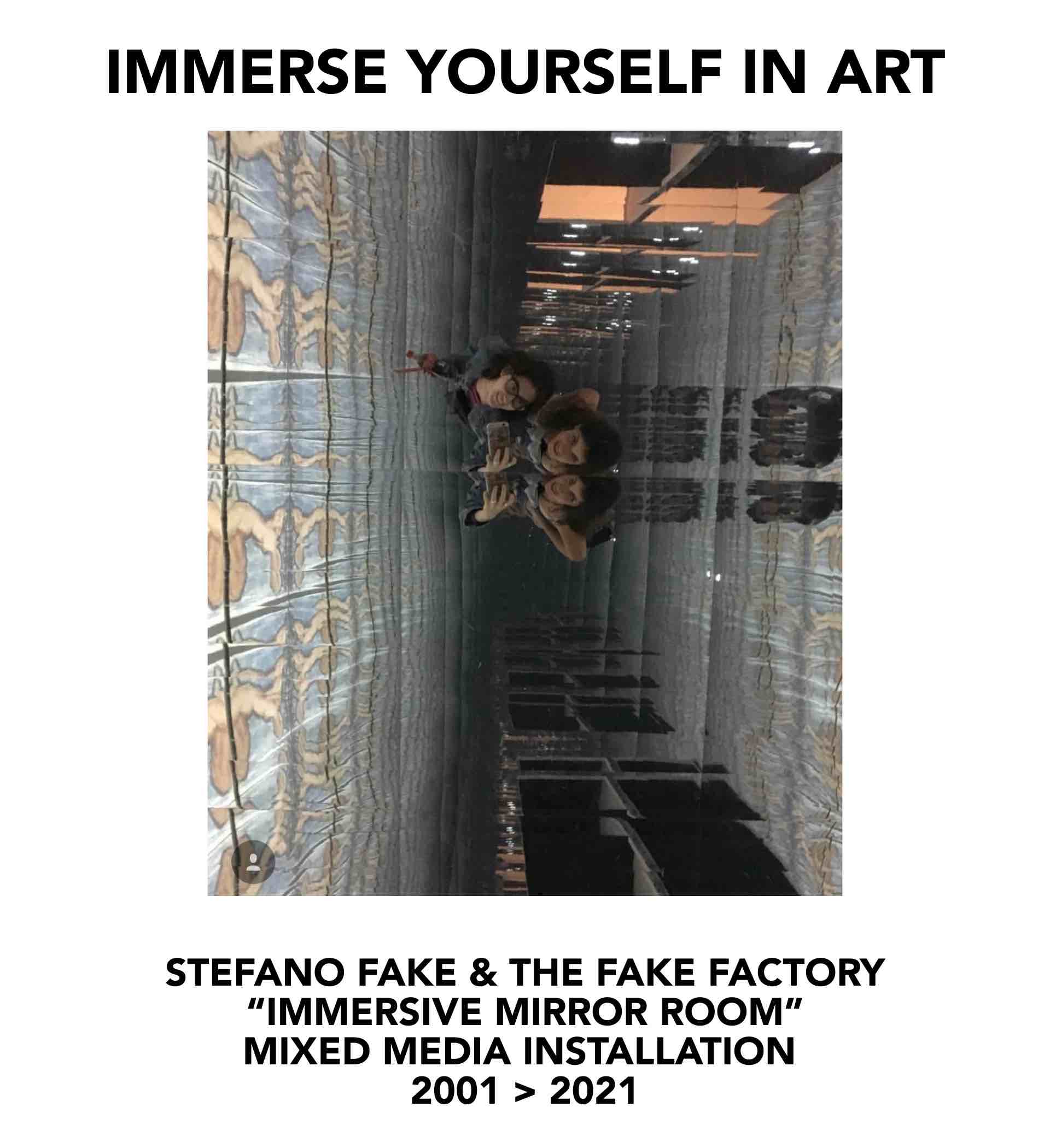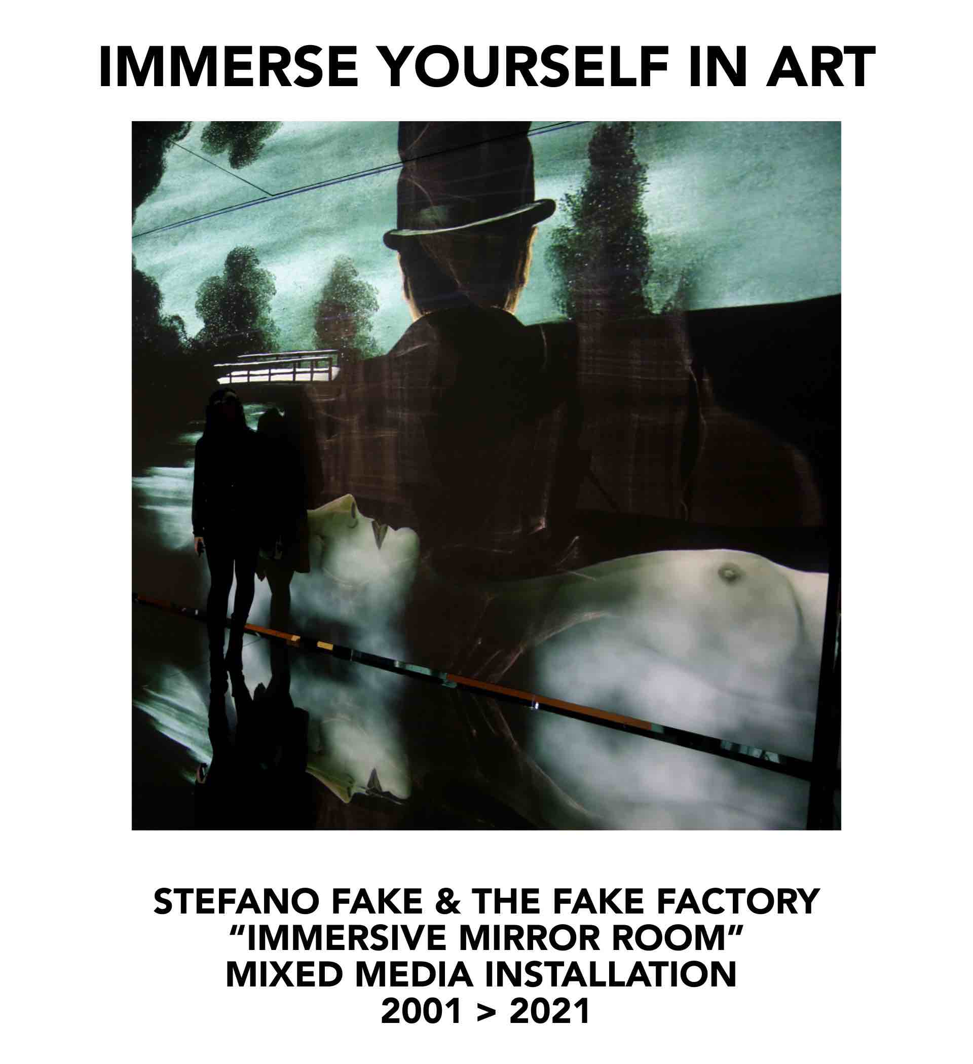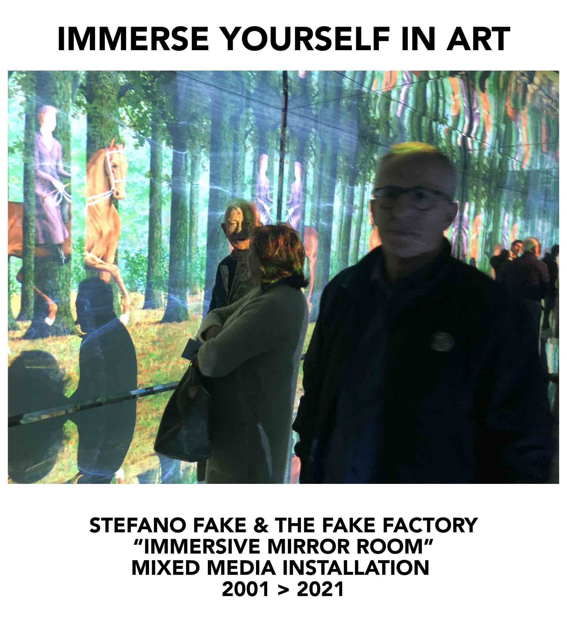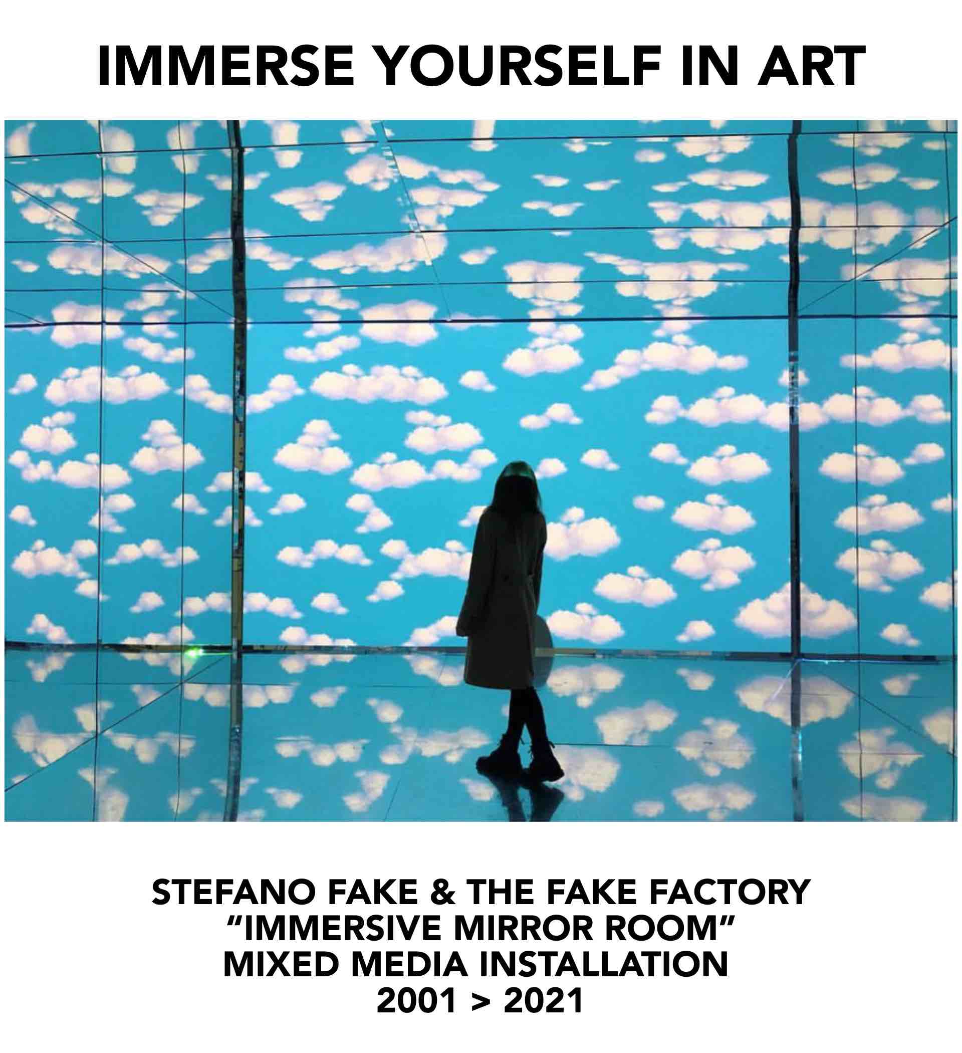 L’installazione “Immersive Mirror Room” è stata creata dall’artista italiano Stefano Fake nel 2001. Già nel 2001 ha iniziato a sviluppare stanze immersive, molto prima che il concetto diventasse una tendenza globale. Le sue immersive mirror rooms hanno attratto milioni di visitatori nel corso degli anni, contribuendo a definire il linguaggio dell’arte digitale e immersiva. Questa innovativa opera d’arte è stata esposta in varie forme sia in Italia che a livello internazionale, all’interno di festival, eventi e mostre innovative. Dal 2001 ad oggi, milioni di persone hanno visitato le immersive mirror rooms create da Stefano Fake & The Fake Factory.