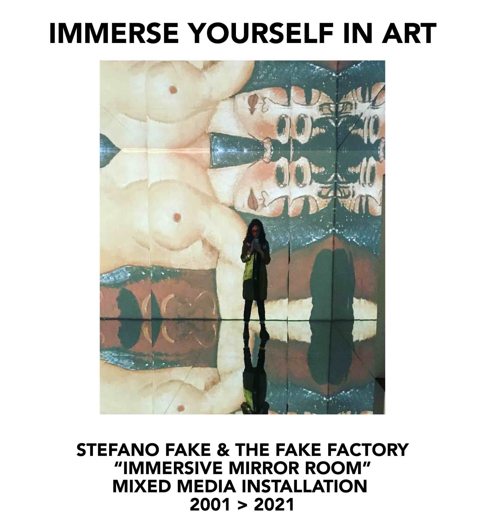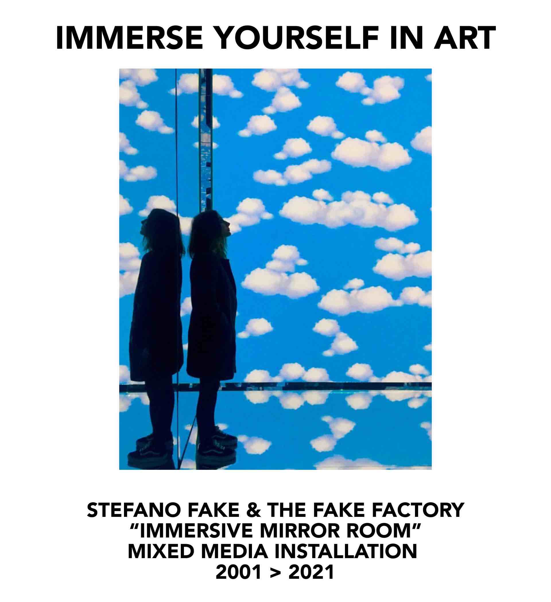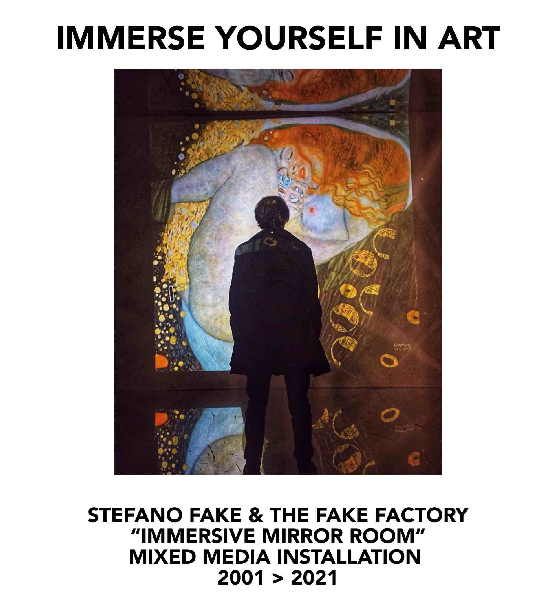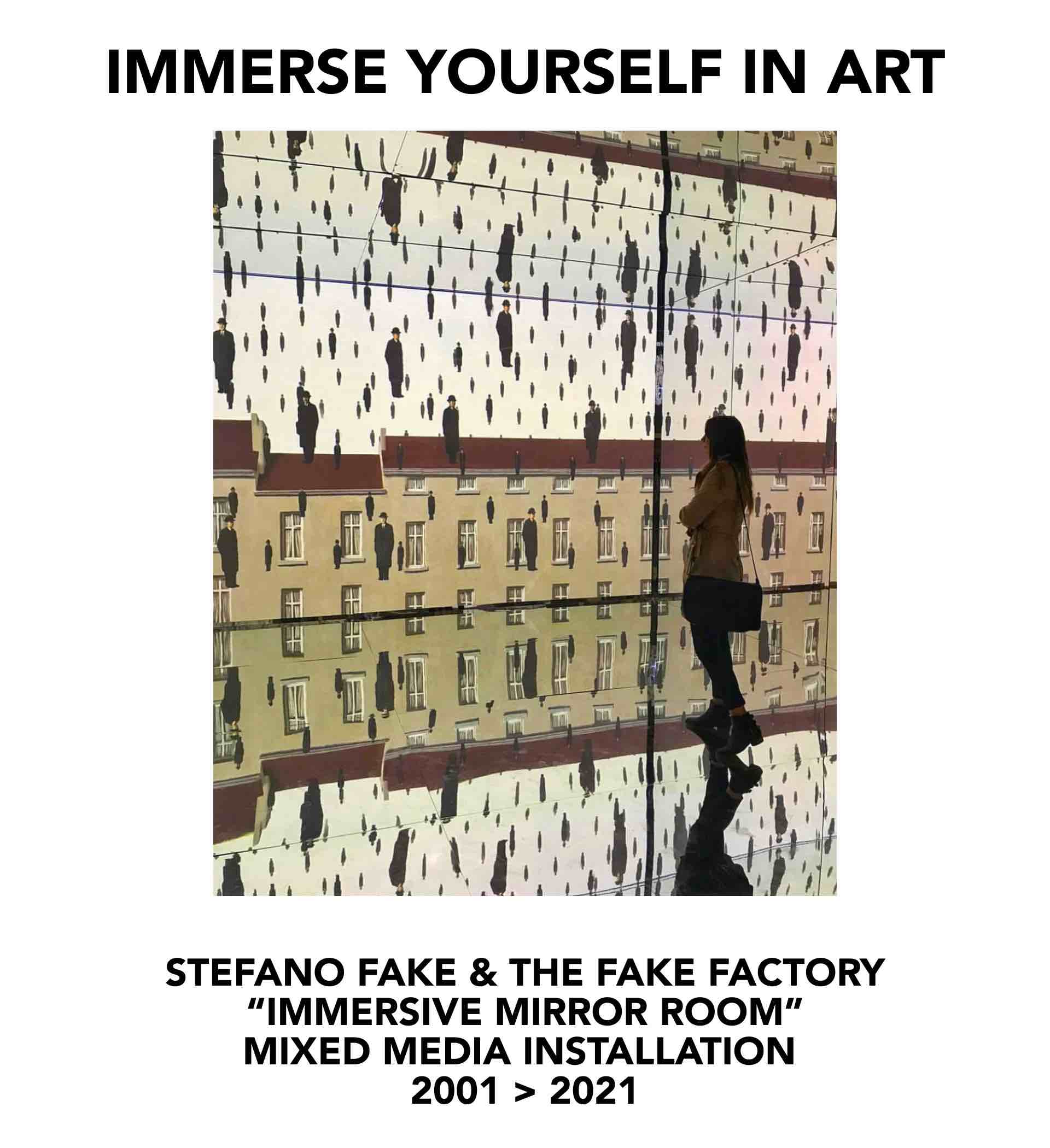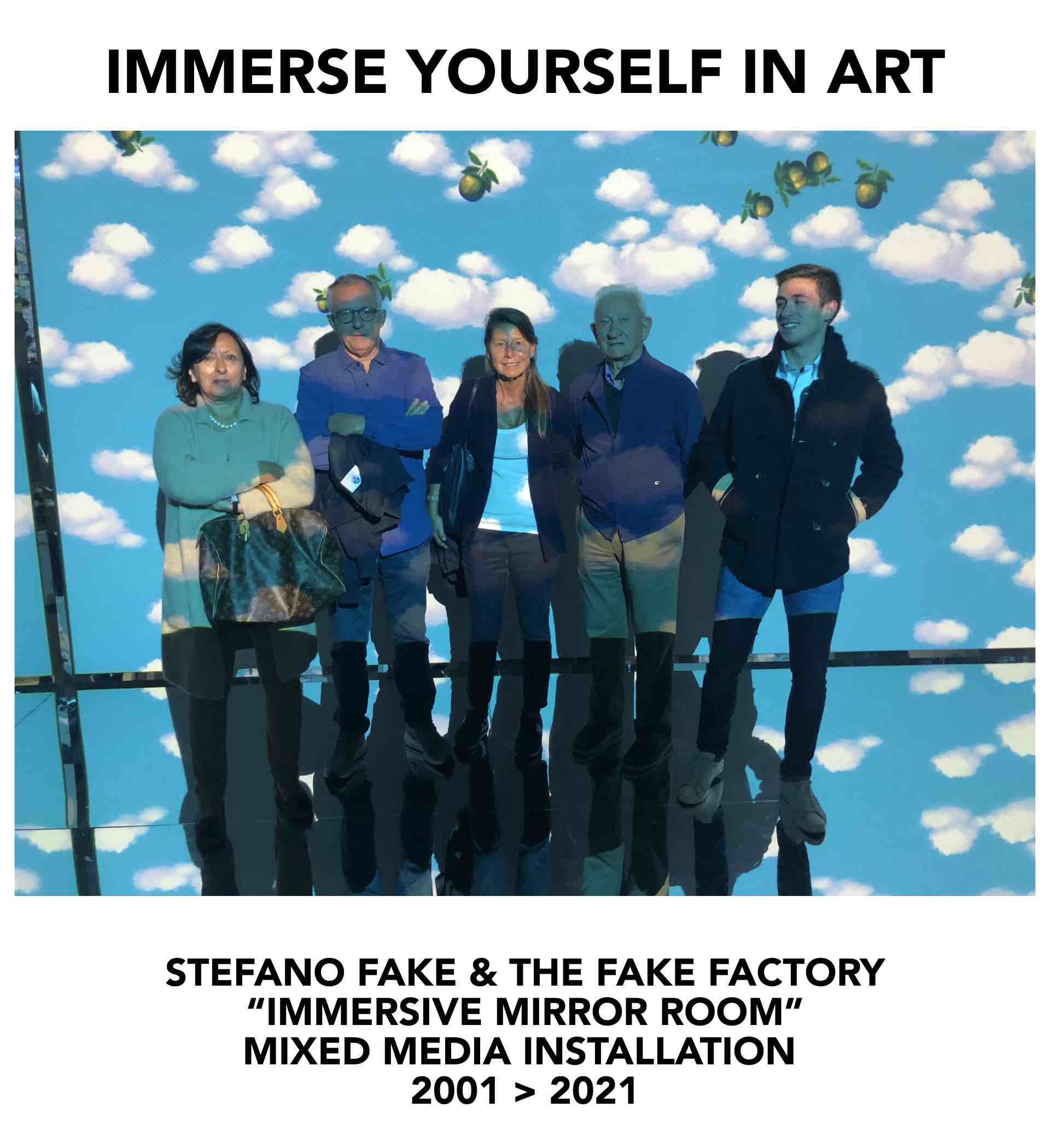 L’installazione “Immersive Mirror Room” è stata creata dall’artista italiano Stefano Fake nel 2001. Già nel 2001 ha iniziato a sviluppare stanze immersive, molto prima che il concetto diventasse una tendenza globale. Le sue immersive mirror rooms hanno attratto milioni di visitatori nel corso degli anni, contribuendo a definire il linguaggio dell’arte digitale e immersiva. Questa innovativa opera d’arte è stata esposta in varie forme sia in Italia che a livello internazionale, all’interno di festival, eventi e mostre innovative. Dal 2001 ad oggi, milioni di persone hanno visitato le immersive mirror rooms create da Stefano Fake & The Fake Factory.