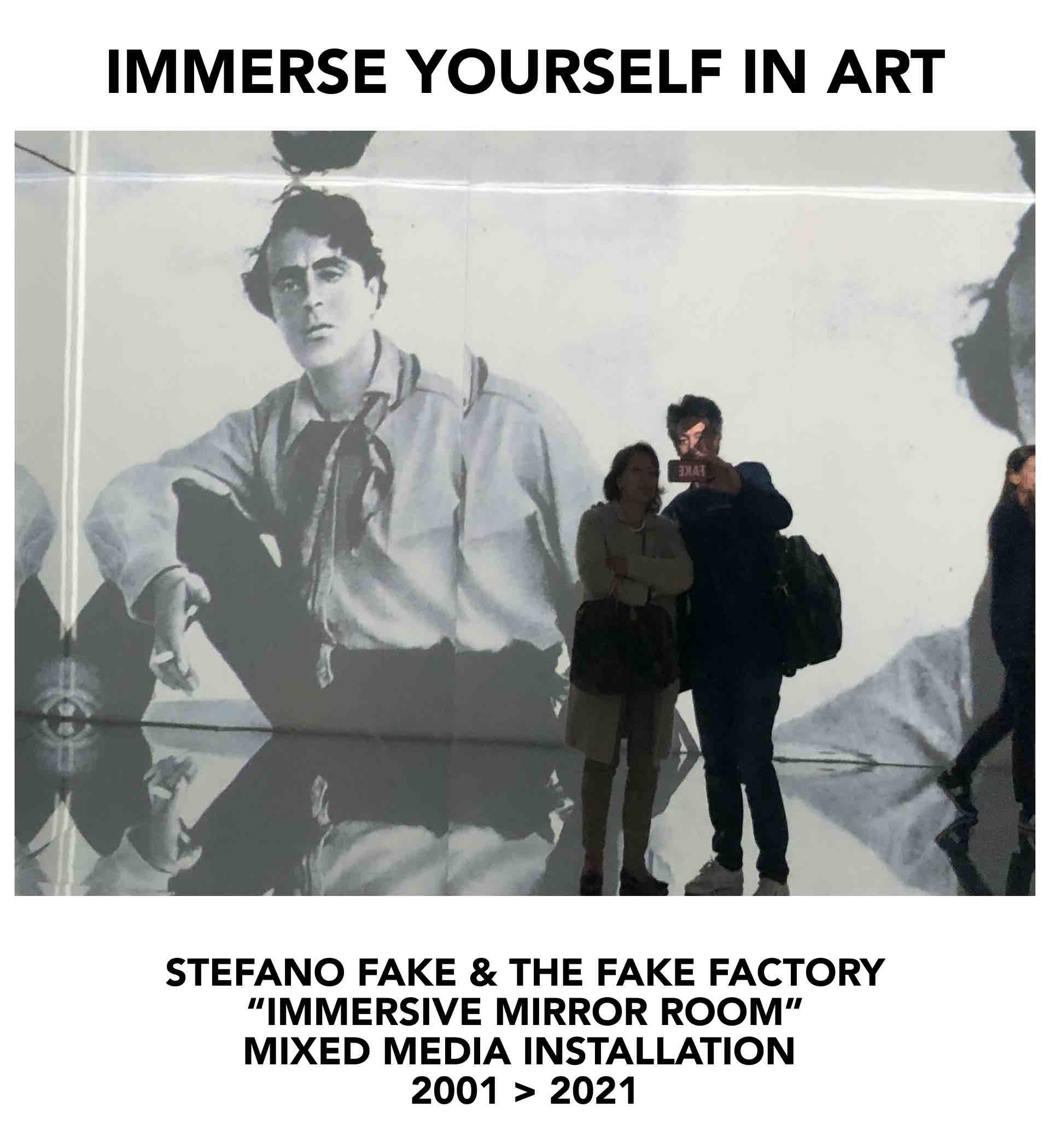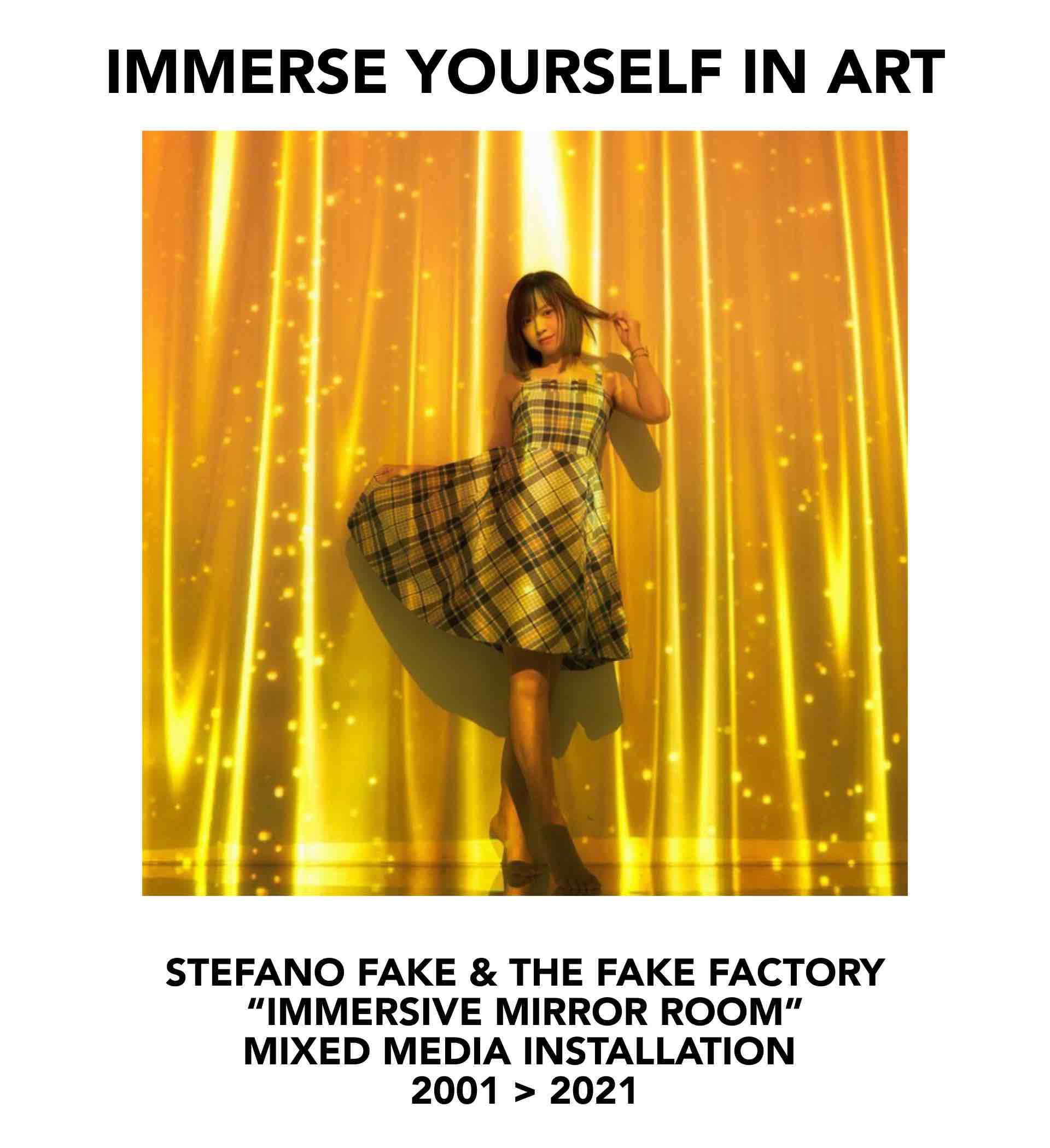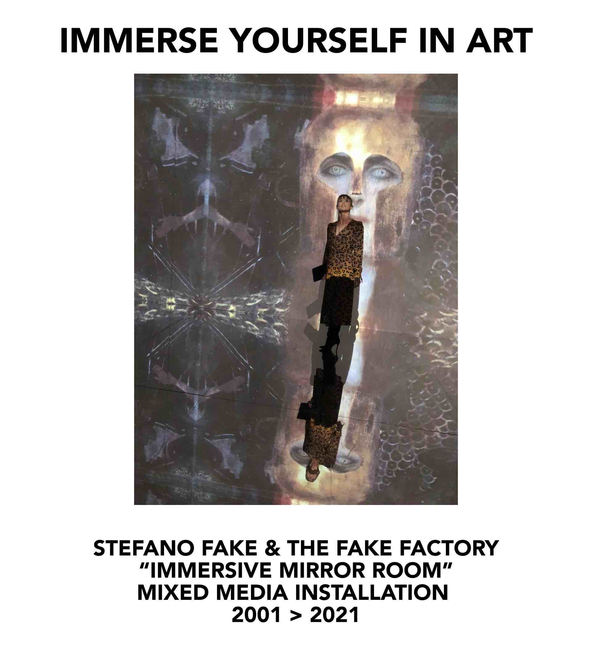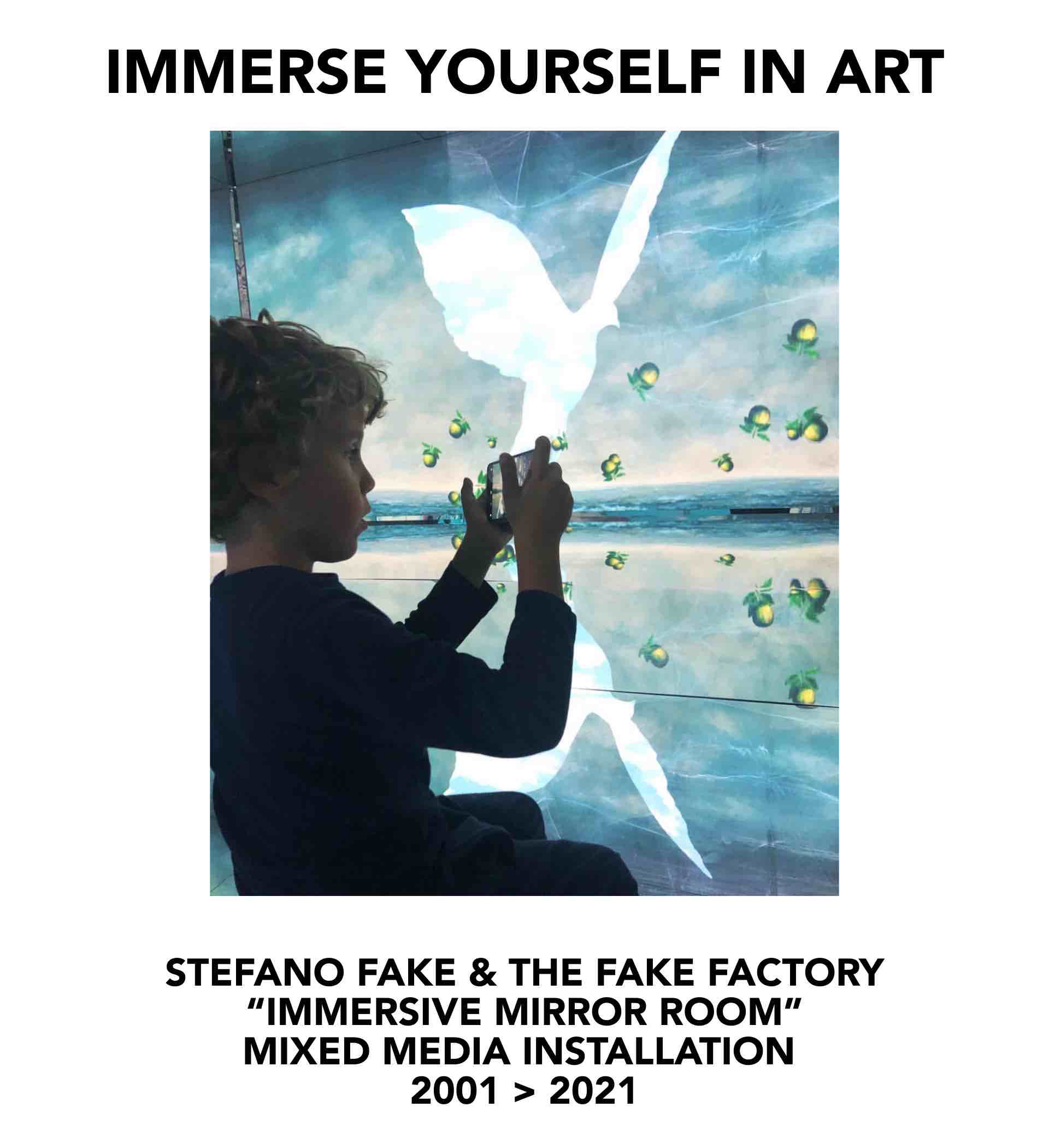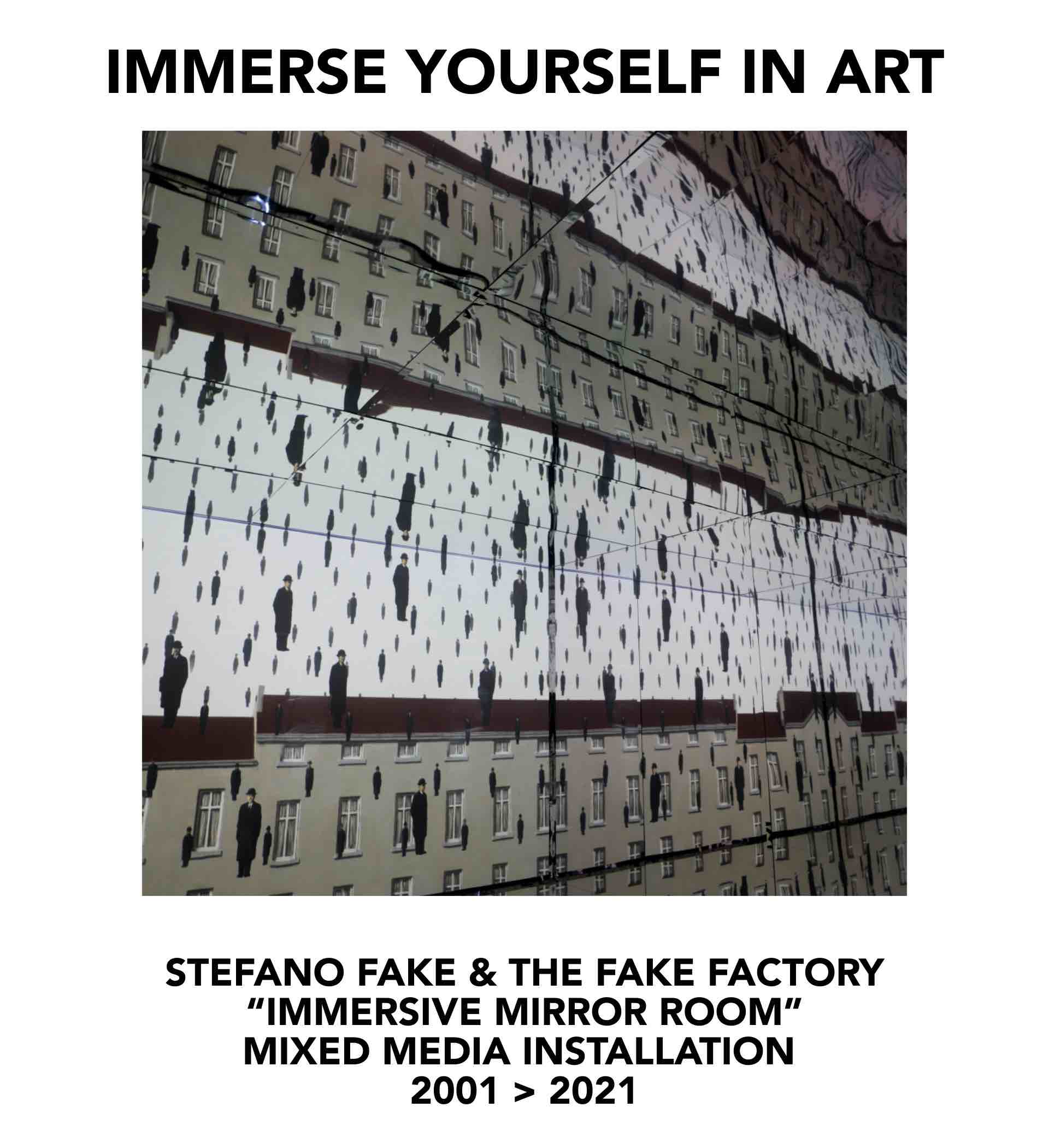 L’installazione “Immersive Mirror Room” è stata creata dall’artista italiano Stefano Fake nel 2001. Già nel 2001 ha iniziato a sviluppare stanze immersive, molto prima che il concetto diventasse una tendenza globale. Le sue immersive mirror rooms hanno attratto milioni di visitatori nel corso degli anni, contribuendo a definire il linguaggio dell’arte digitale e immersiva. Questa innovativa opera d’arte è stata esposta in varie forme sia in Italia che a livello internazionale, all’interno di festival, eventi e mostre innovative. Dal 2001 ad oggi, milioni di persone hanno visitato le immersive mirror rooms create da Stefano Fake & The Fake Factory.