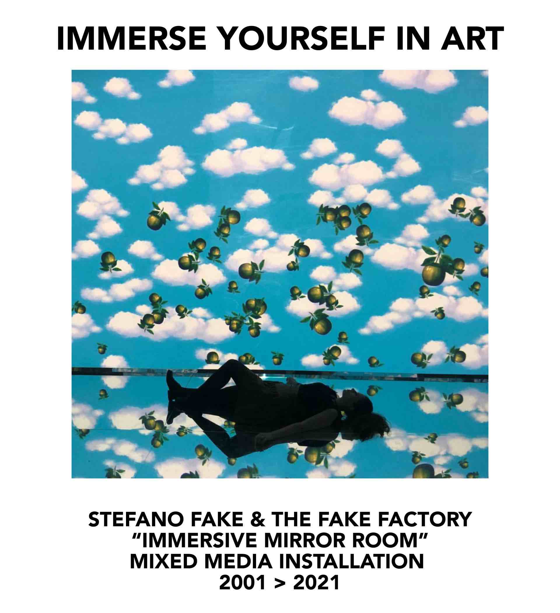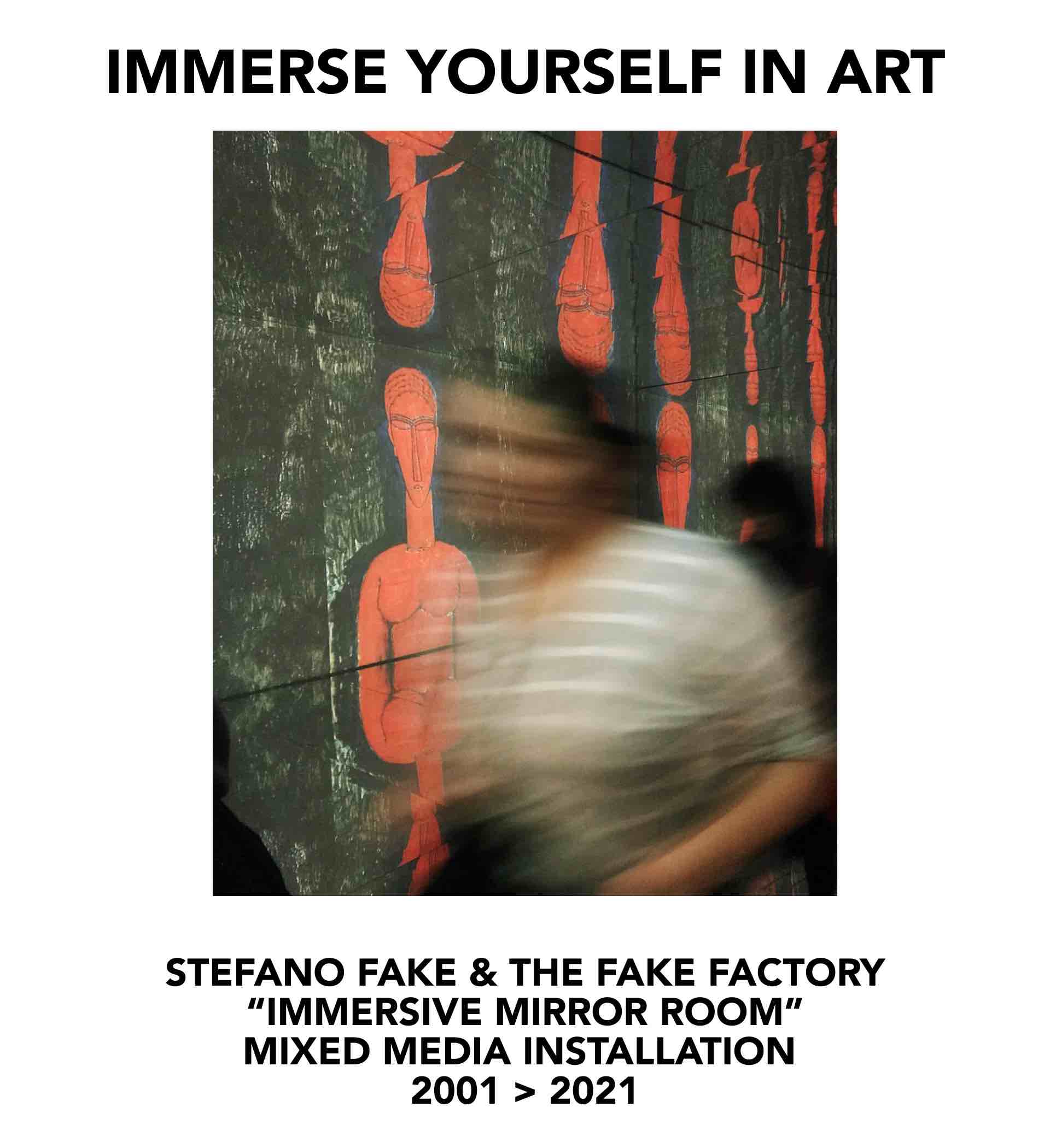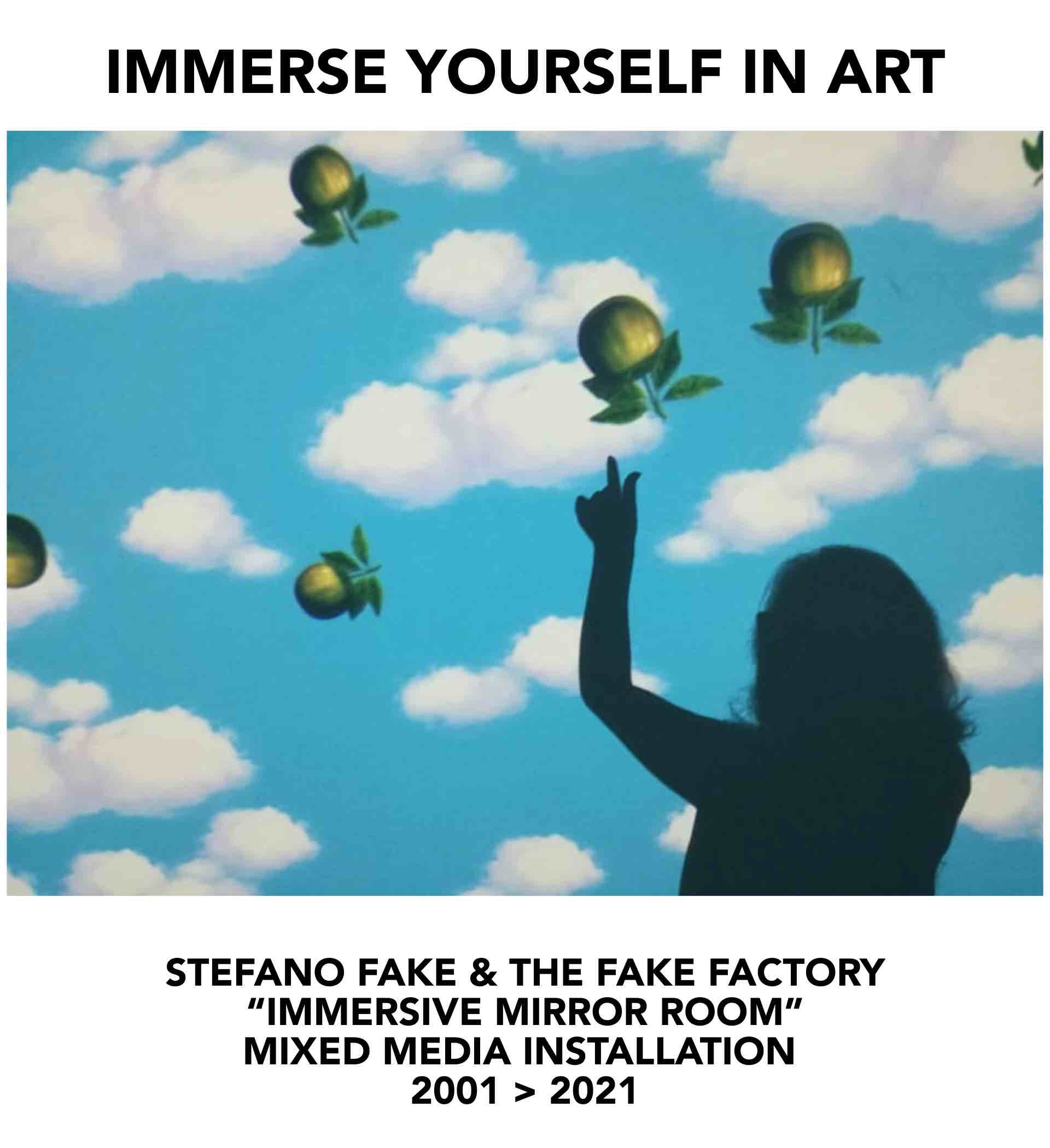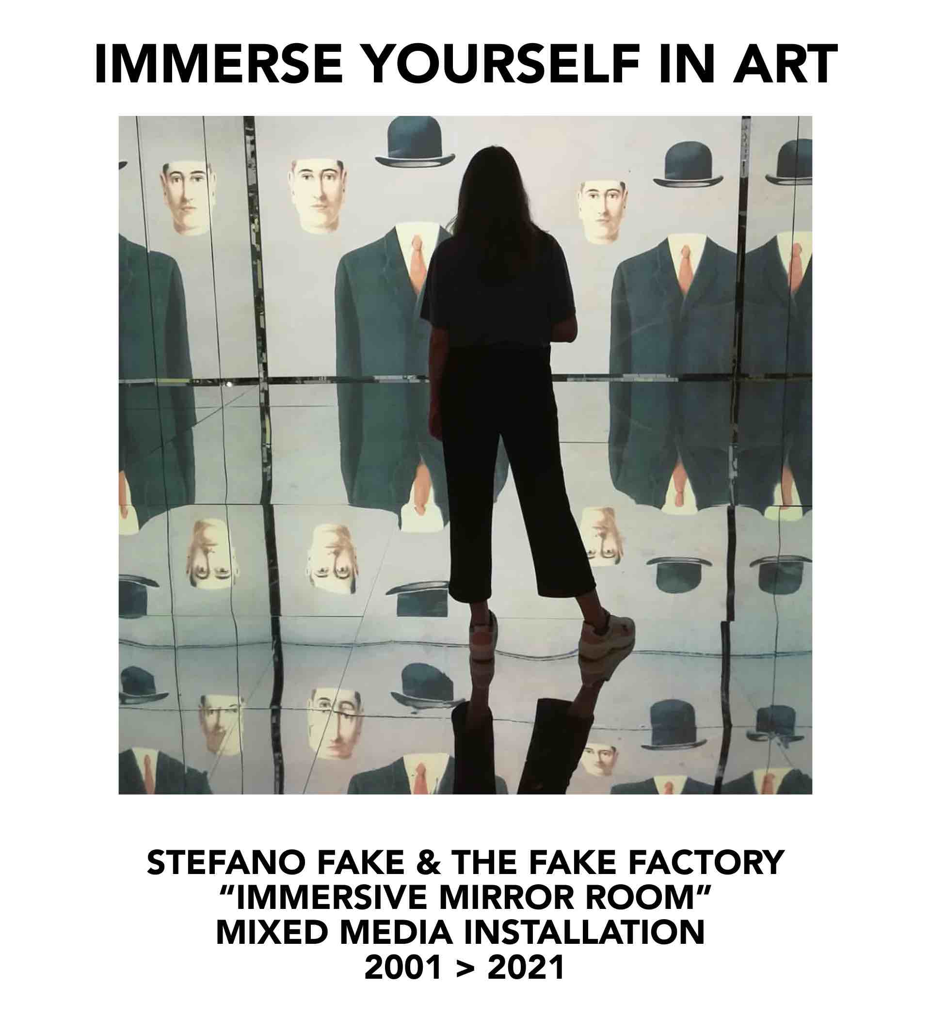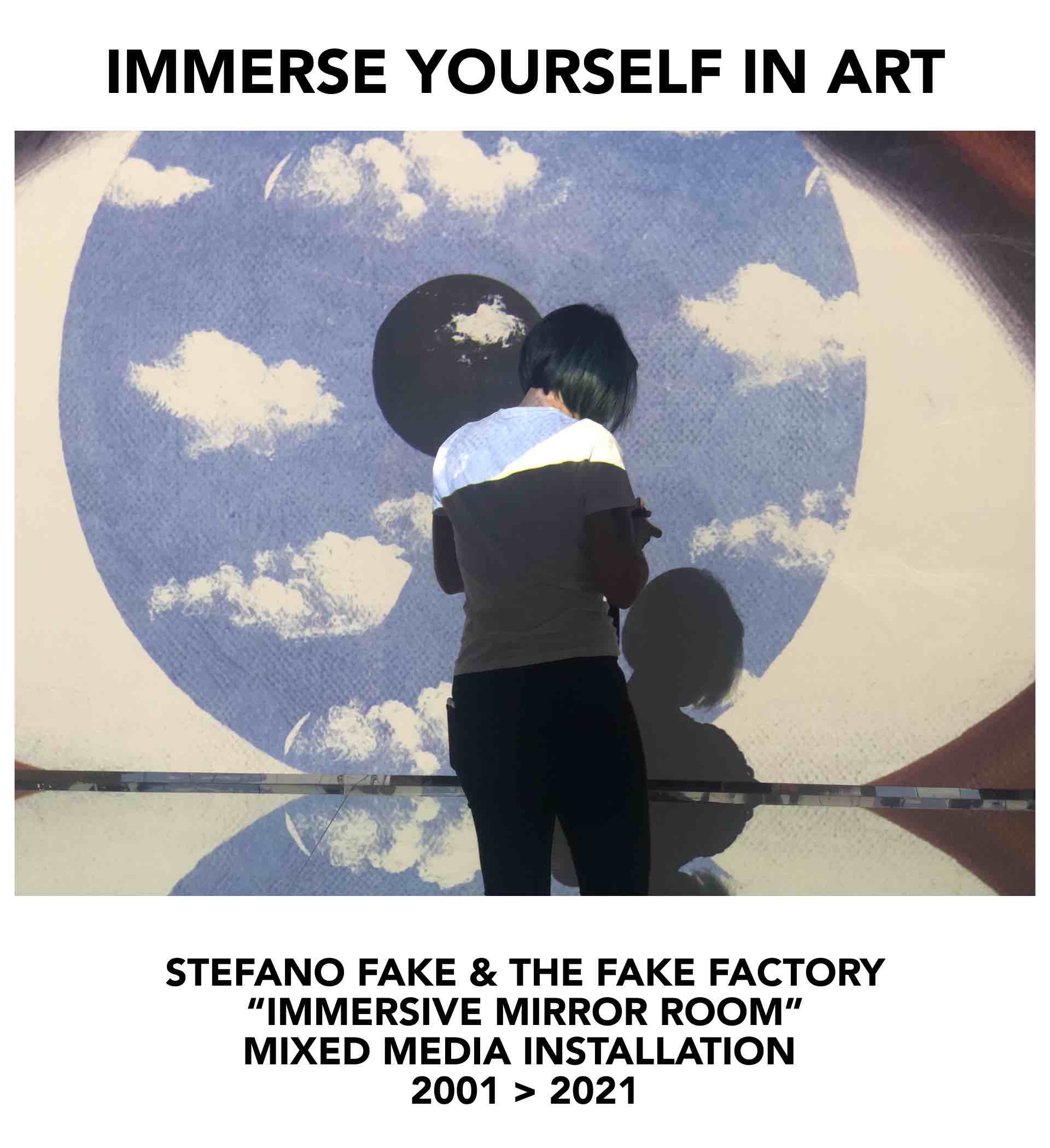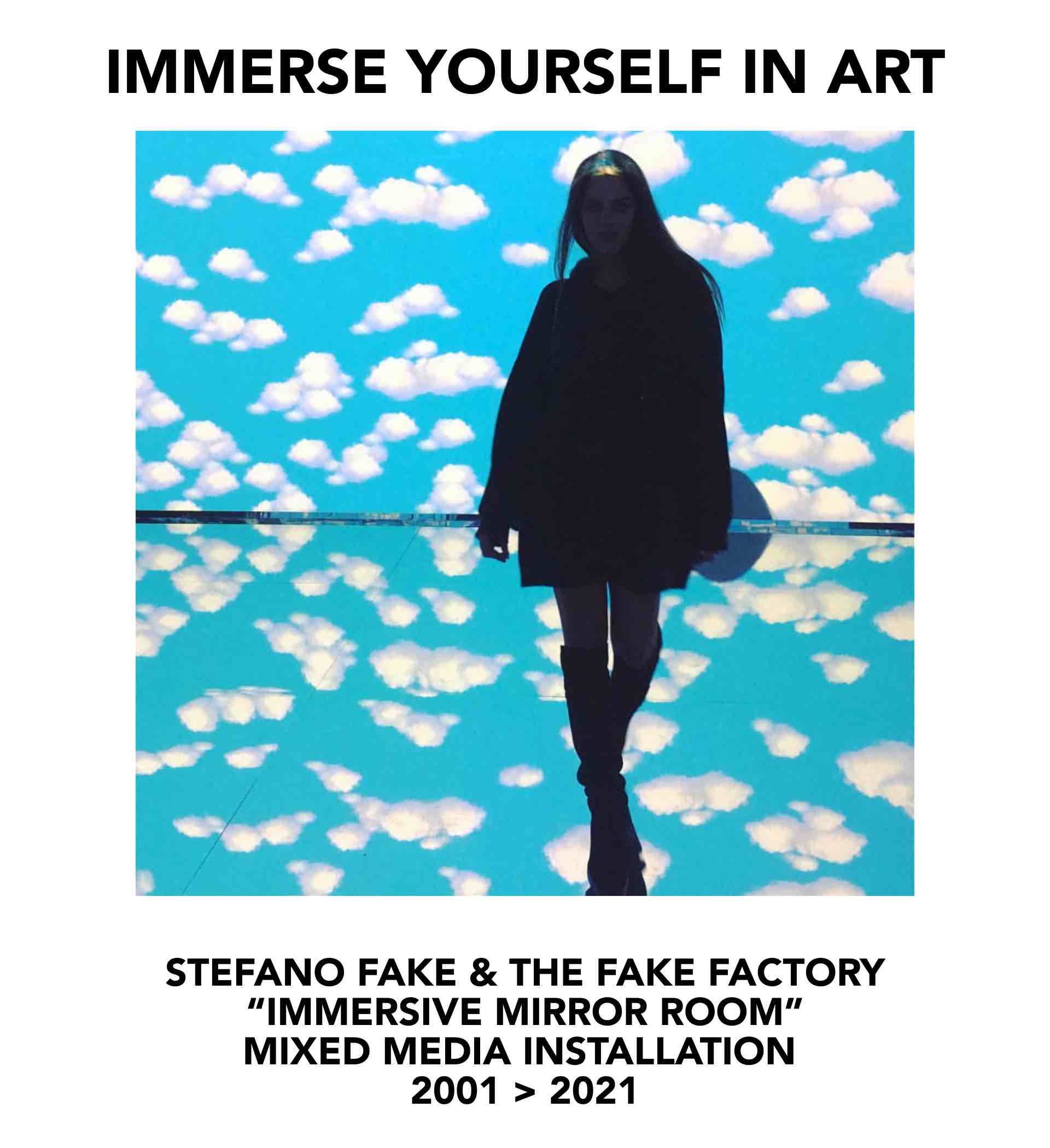 L’installazione “Immersive Mirror Room” è stata creata dall’artista italiano Stefano Fake nel 2001. Già nel 2001 ha iniziato a sviluppare stanze immersive, molto prima che il concetto diventasse una tendenza globale. Le sue immersive mirror rooms hanno attratto milioni di visitatori nel corso degli anni, contribuendo a definire il linguaggio dell’arte digitale e immersiva. Questa innovativa opera d’arte è stata esposta in varie forme sia in Italia che a livello internazionale, all’interno di festival, eventi e mostre innovative. Dal 2001 ad oggi, milioni di persone hanno visitato le immersive mirror rooms create da Stefano Fake & The Fake Factory.