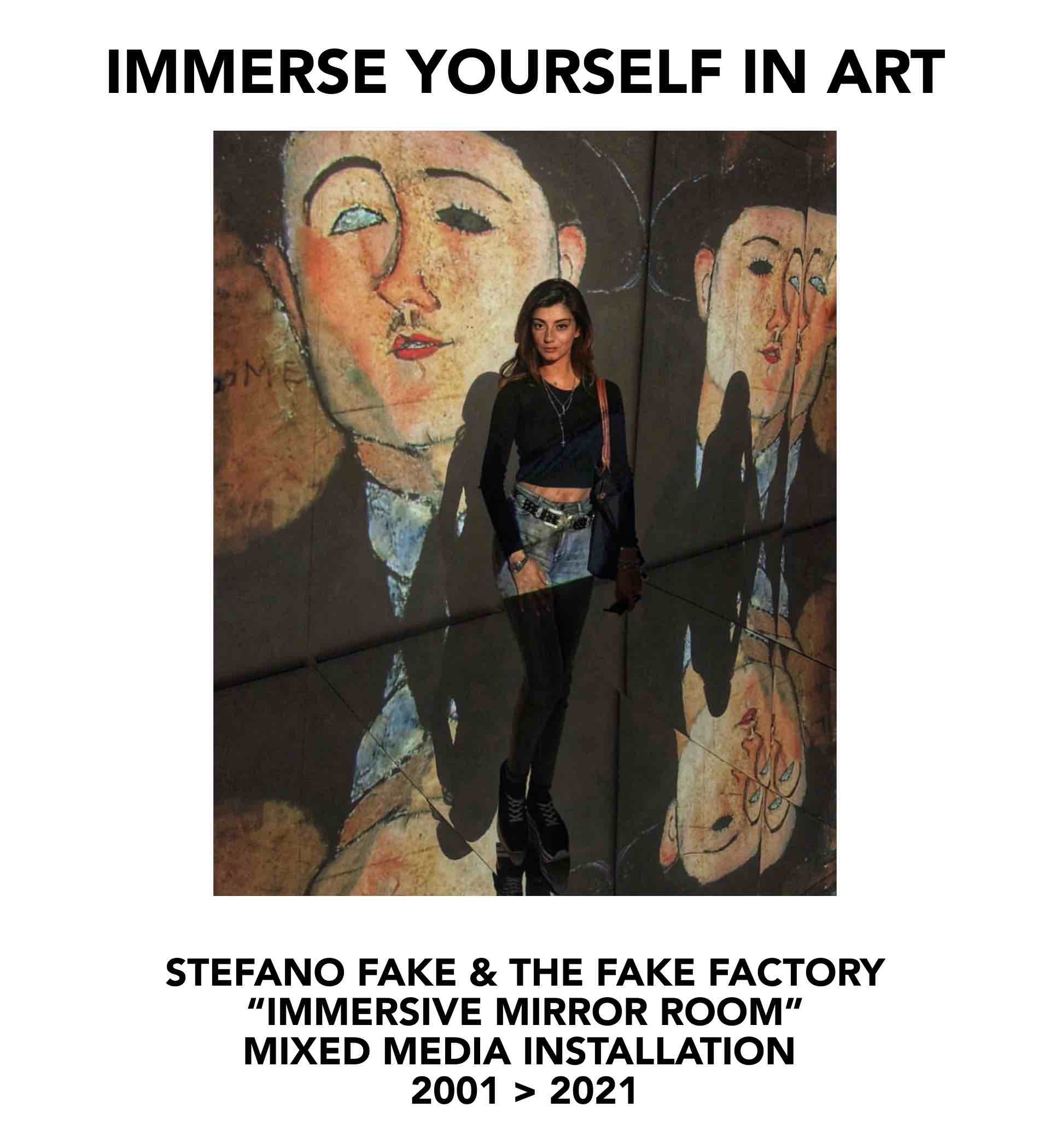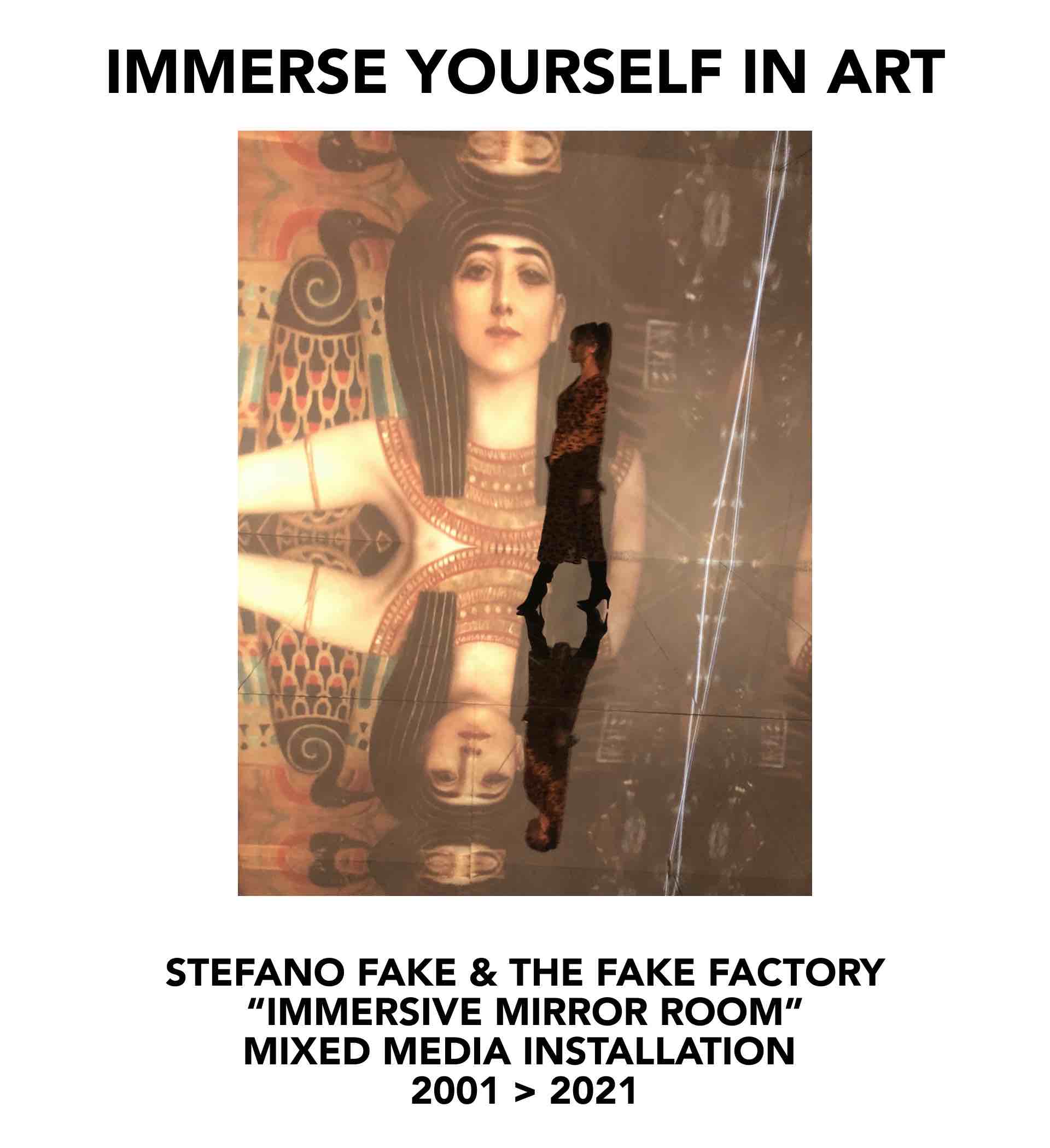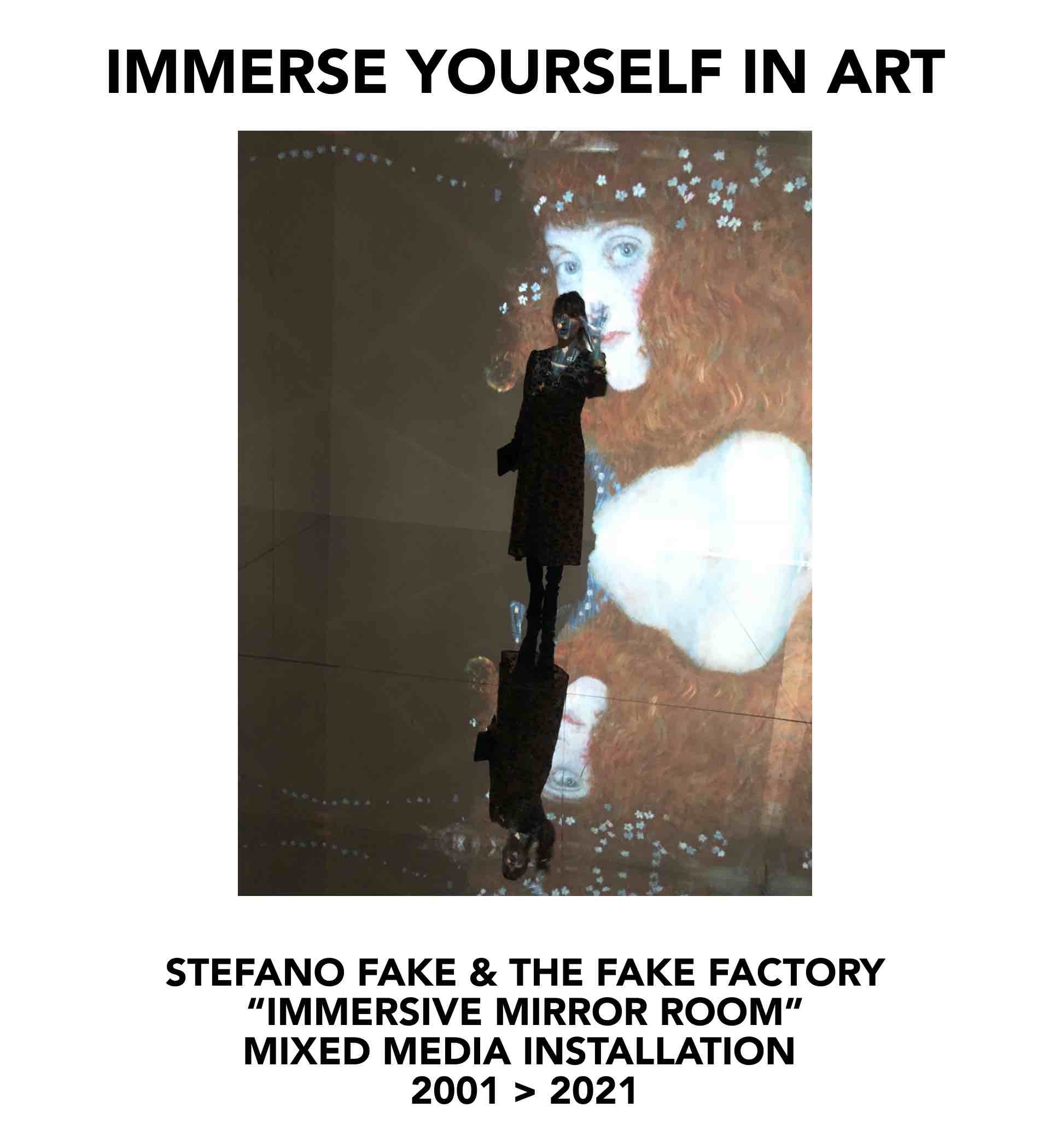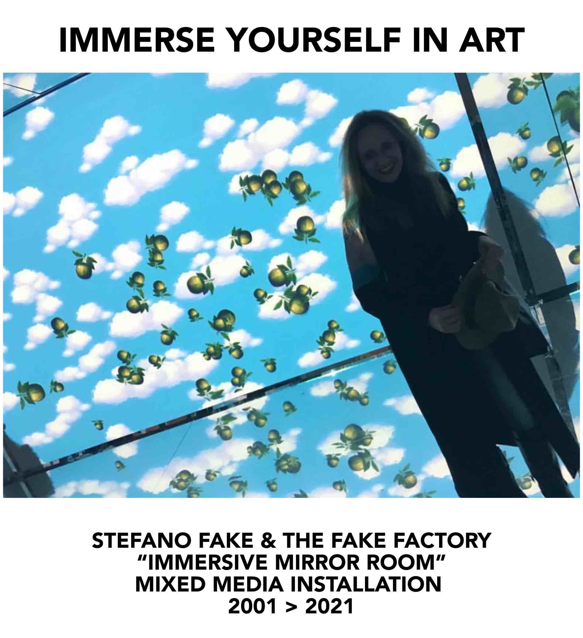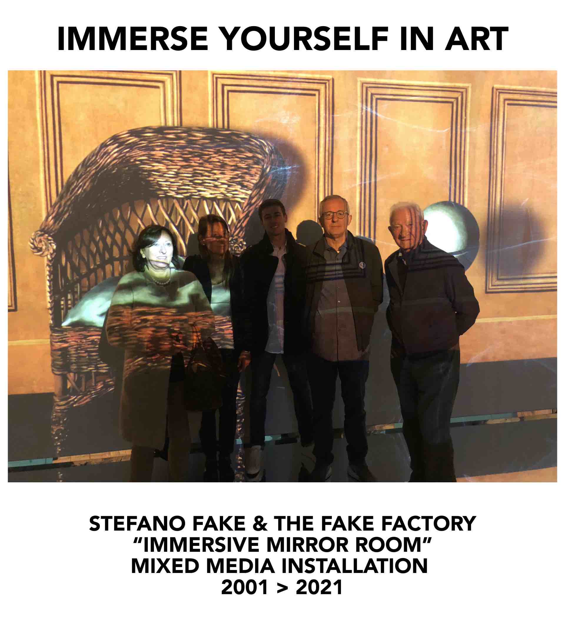 L’installazione “Immersive Mirror Room” è stata creata dall’artista italiano Stefano Fake nel 2001. Già nel 2001 ha iniziato a sviluppare stanze immersive, molto prima che il concetto diventasse una tendenza globale. Le sue immersive mirror rooms hanno attratto milioni di visitatori nel corso degli anni, contribuendo a definire il linguaggio dell’arte digitale e immersiva. Questa innovativa opera d’arte è stata esposta in varie forme sia in Italia che a livello internazionale, all’interno di festival, eventi e mostre innovative. Dal 2001 ad oggi, milioni di persone hanno visitato le immersive mirror rooms create da Stefano Fake & The Fake Factory.