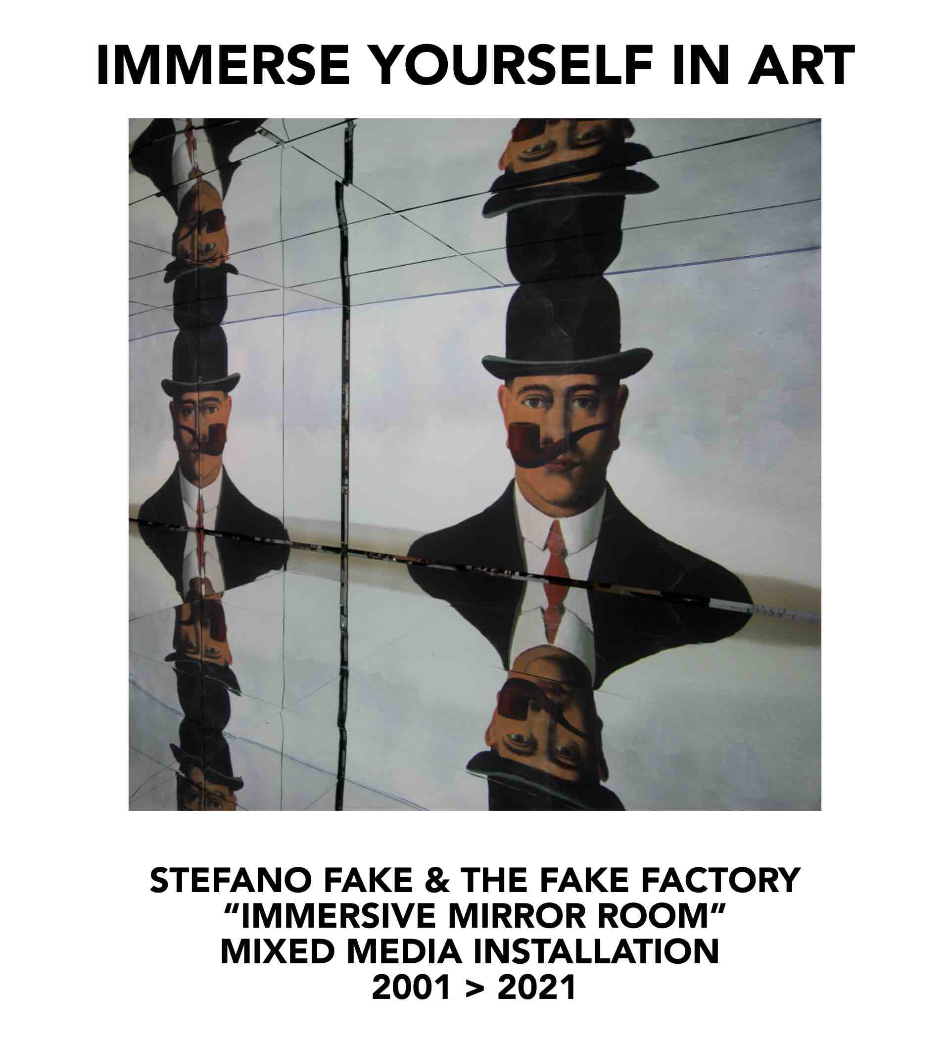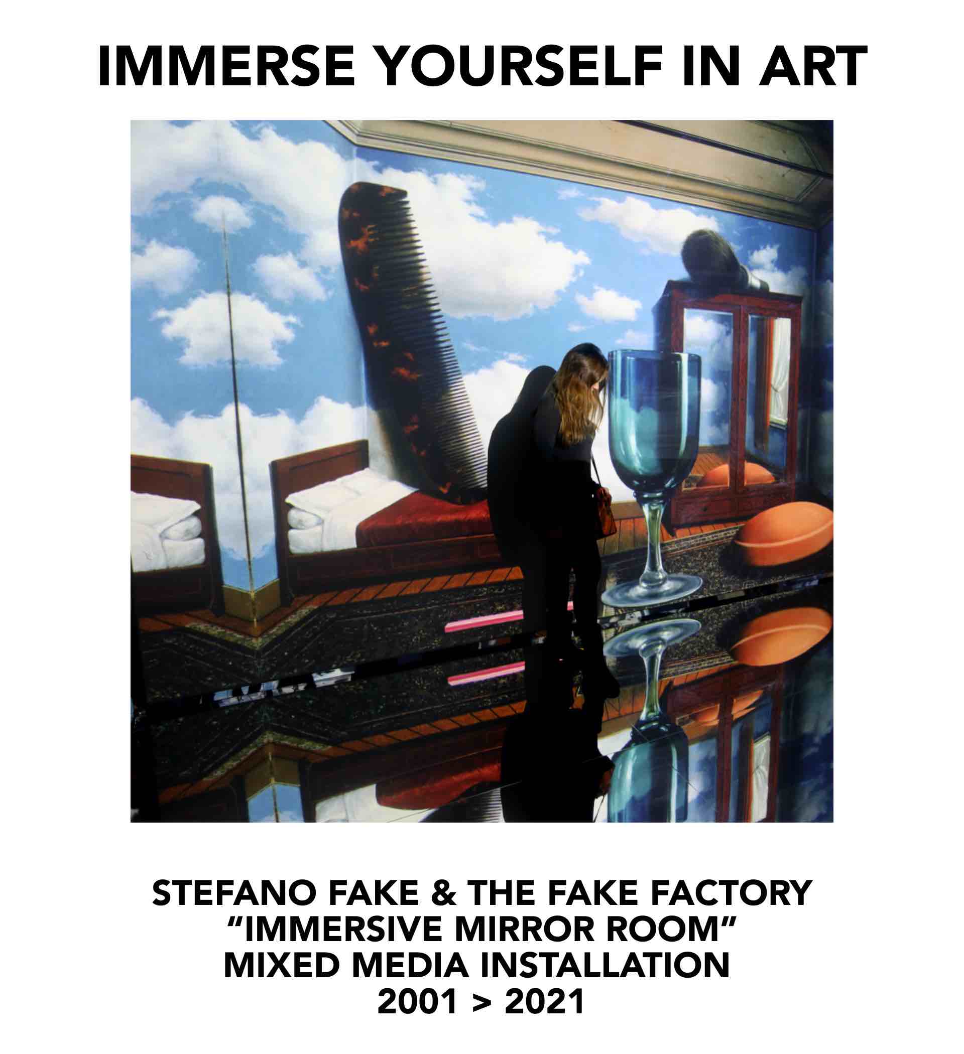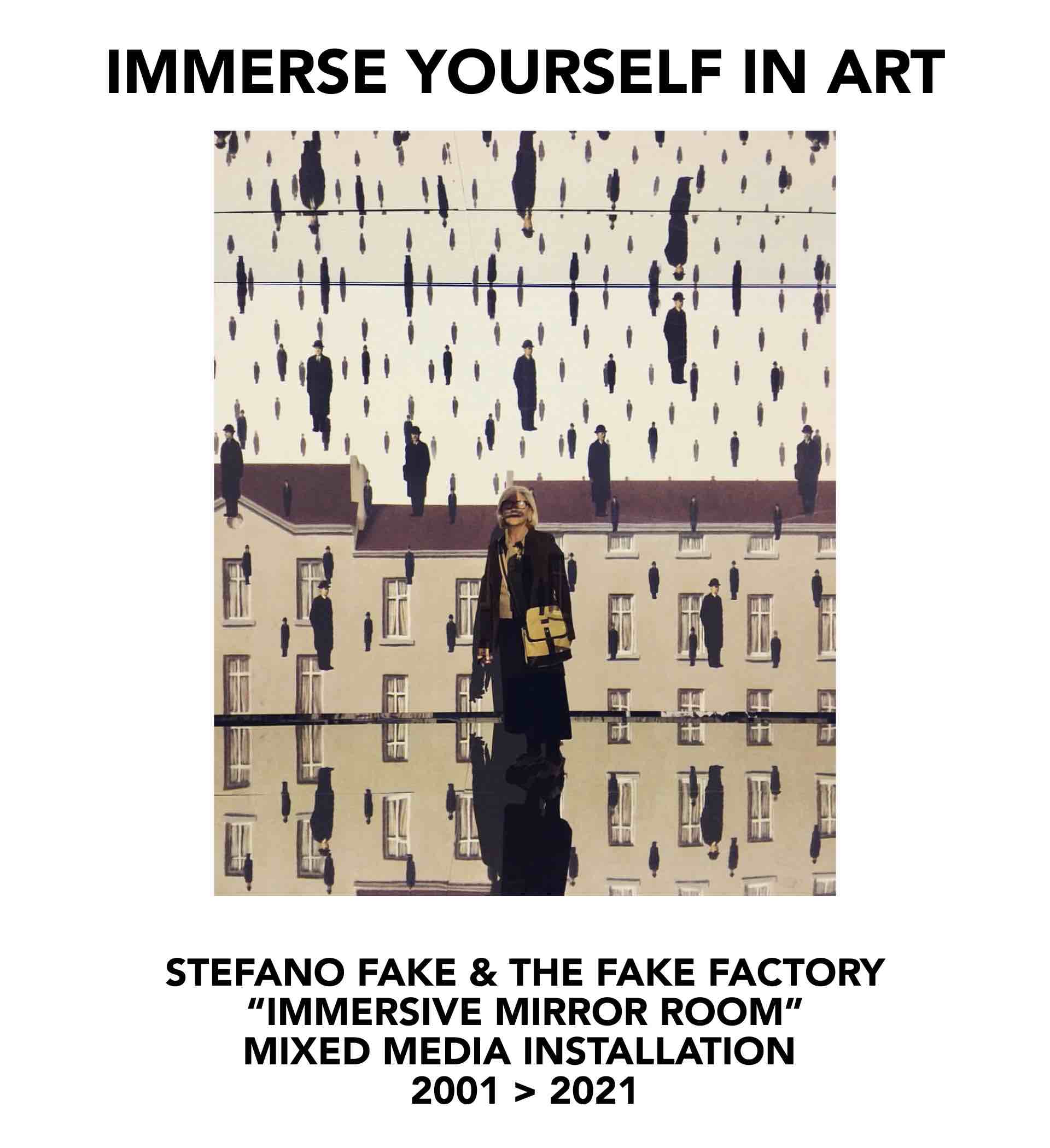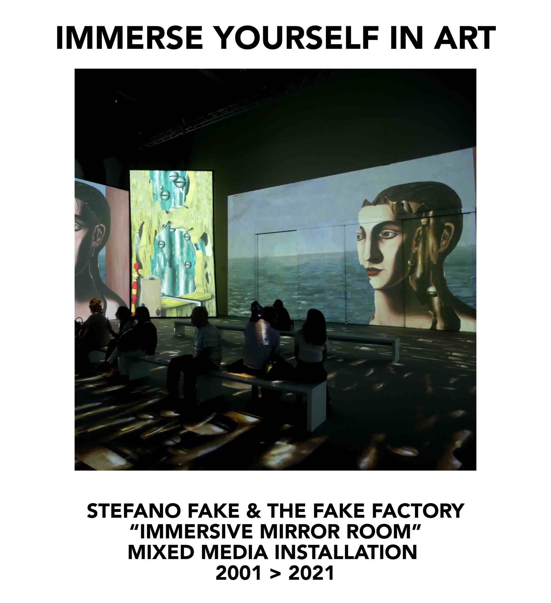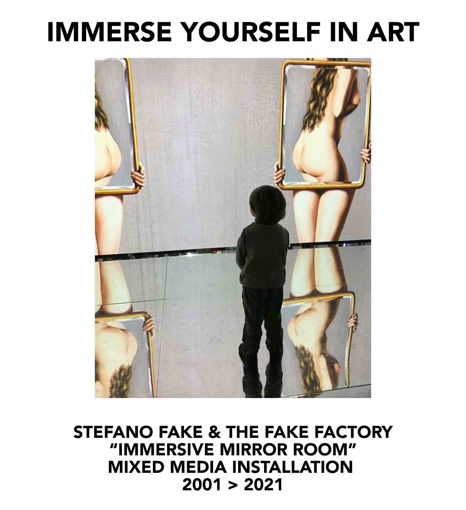 L’installazione “Immersive Mirror Room” è stata creata dall’artista italiano Stefano Fake nel 2001. Già nel 2001 ha iniziato a sviluppare stanze immersive, molto prima che il concetto diventasse una tendenza globale. Le sue immersive mirror rooms hanno attratto milioni di visitatori nel corso degli anni, contribuendo a definire il linguaggio dell’arte digitale e immersiva. Questa innovativa opera d’arte è stata esposta in varie forme sia in Italia che a livello internazionale, all’interno di festival, eventi e mostre innovative. Dal 2001 ad oggi, milioni di persone hanno visitato le immersive mirror rooms create da Stefano Fake & The Fake Factory.