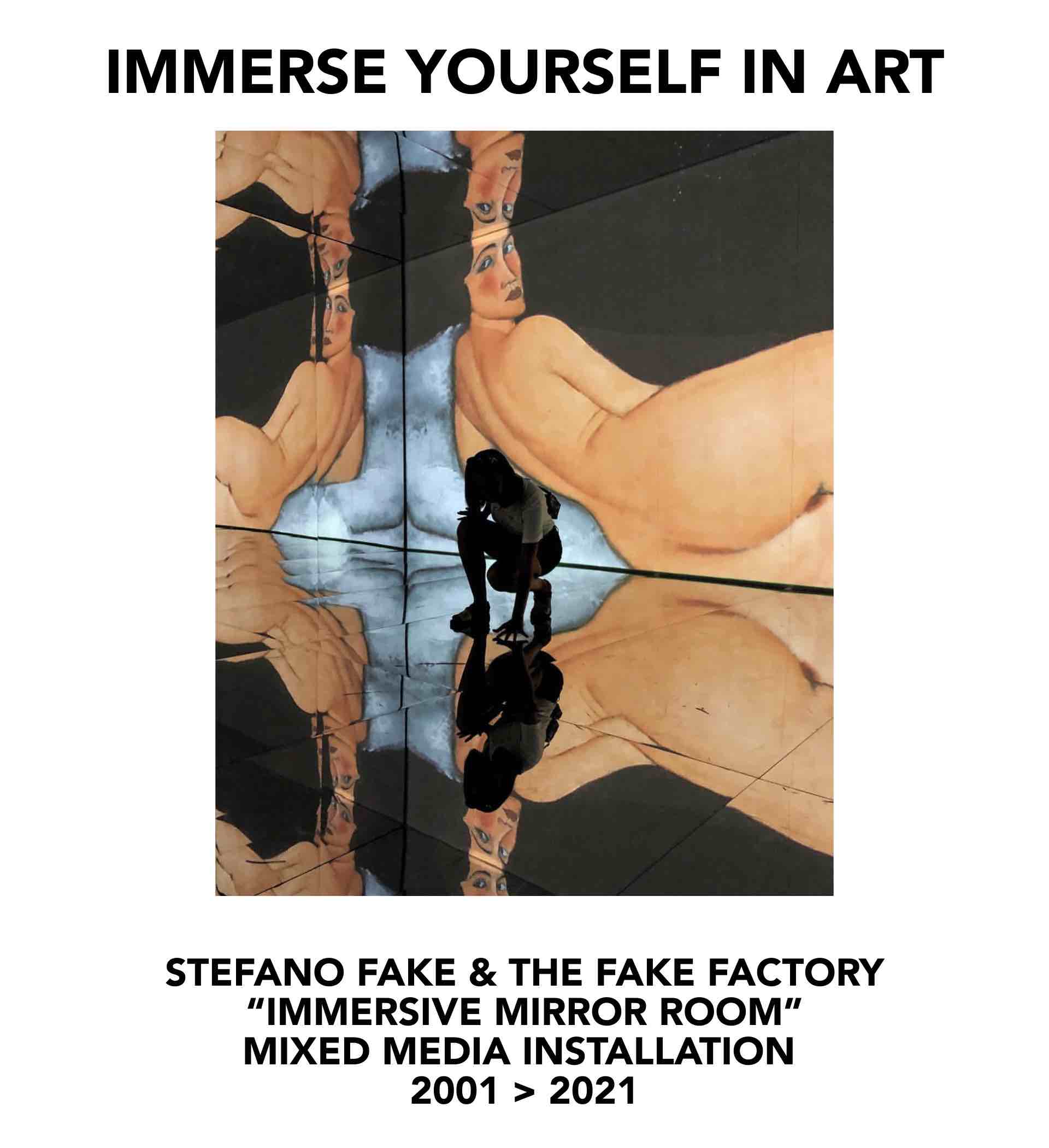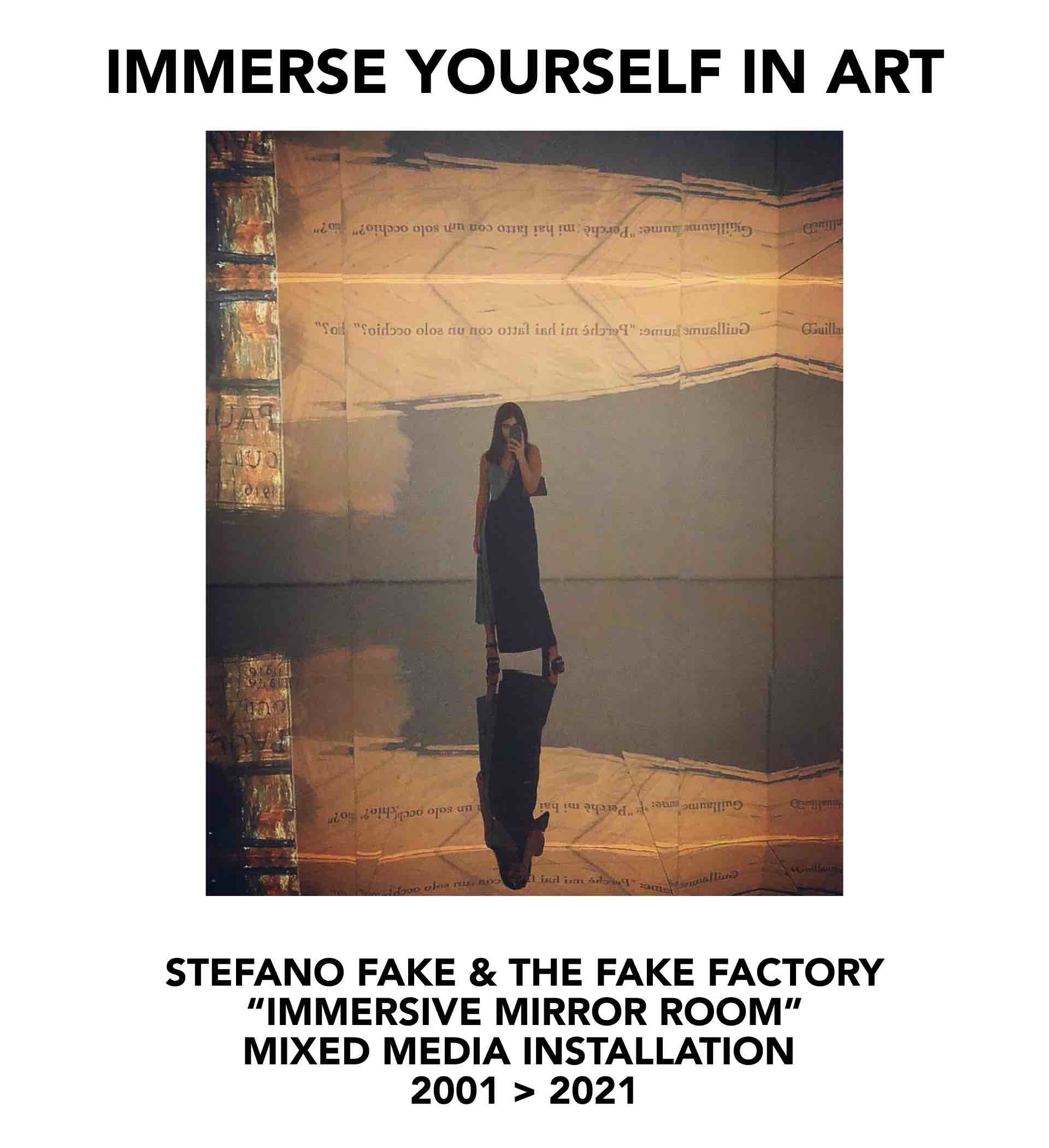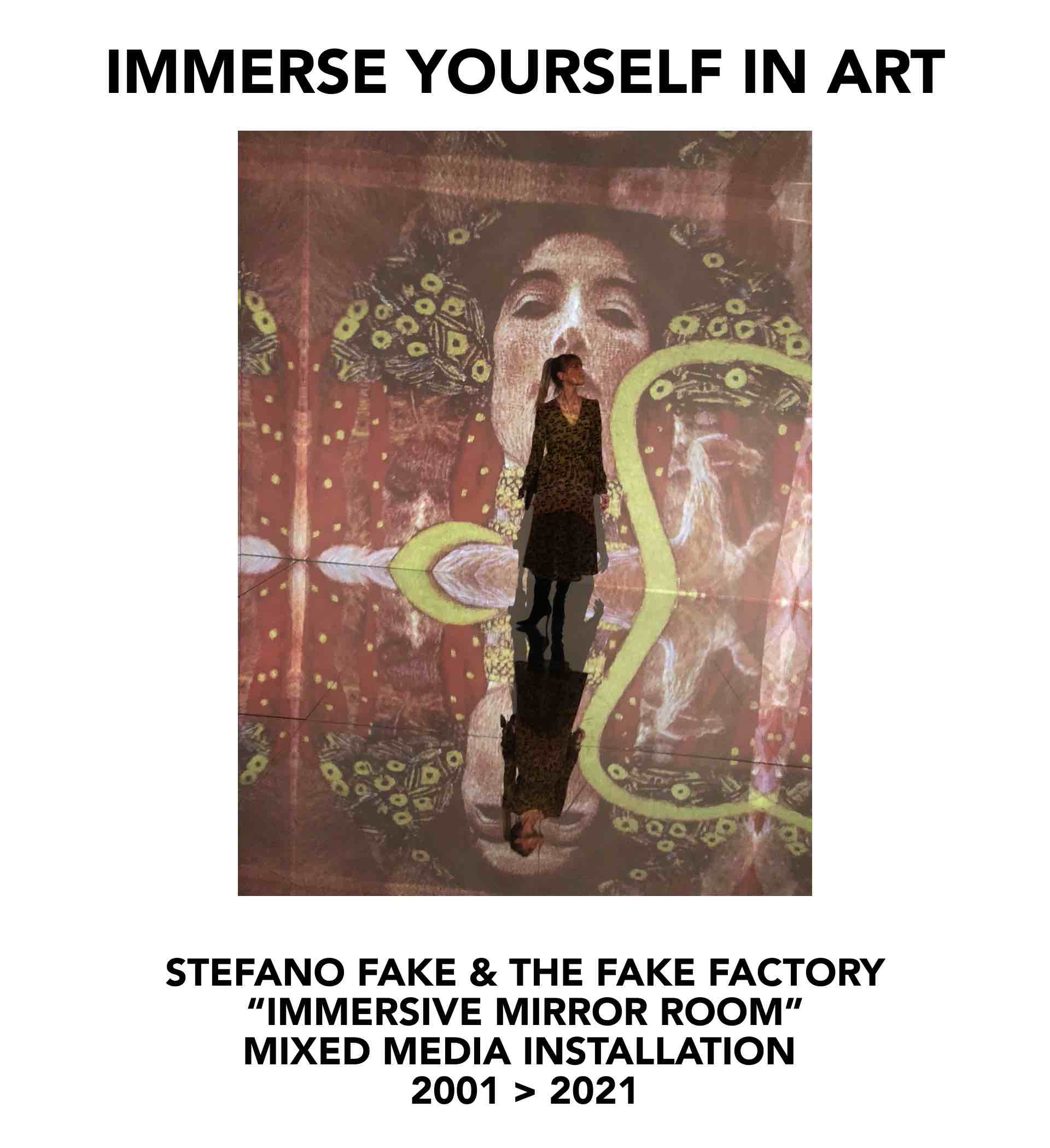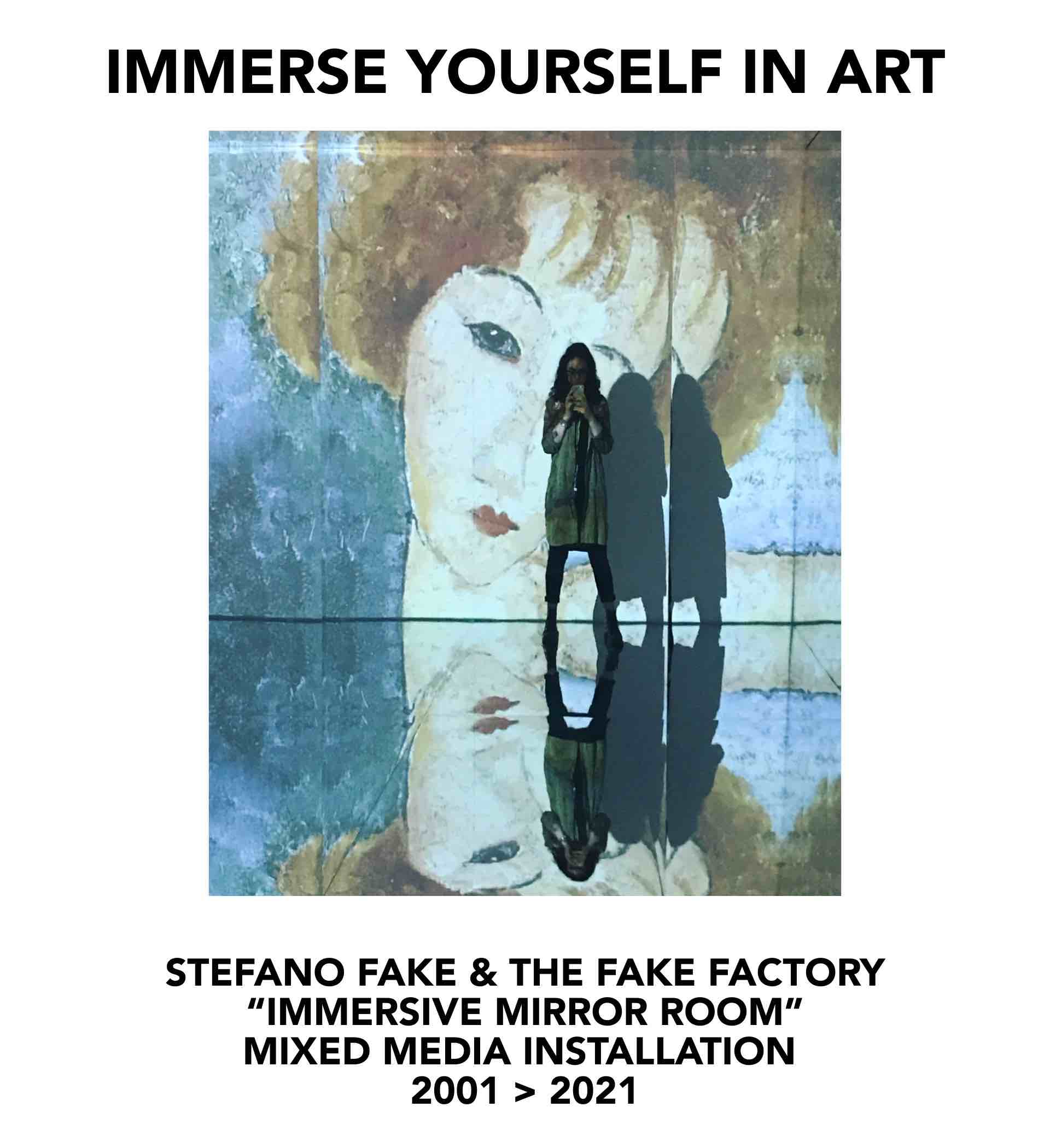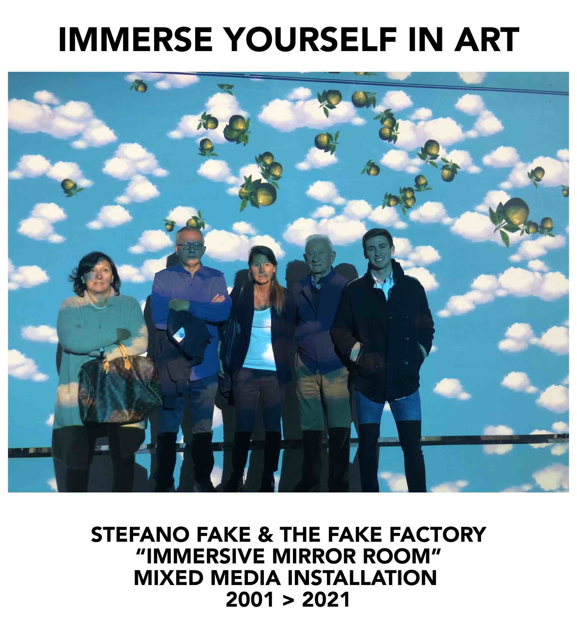 L’installazione “Immersive Mirror Room” è stata creata dall’artista italiano Stefano Fake nel 2001. Già nel 2001 ha iniziato a sviluppare stanze immersive, molto prima che il concetto diventasse una tendenza globale. Le sue immersive mirror rooms hanno attratto milioni di visitatori nel corso degli anni, contribuendo a definire il linguaggio dell’arte digitale e immersiva. Questa innovativa opera d’arte è stata esposta in varie forme sia in Italia che a livello internazionale, all’interno di festival, eventi e mostre innovative. Dal 2001 ad oggi, milioni di persone hanno visitato le immersive mirror rooms create da Stefano Fake & The Fake Factory.
