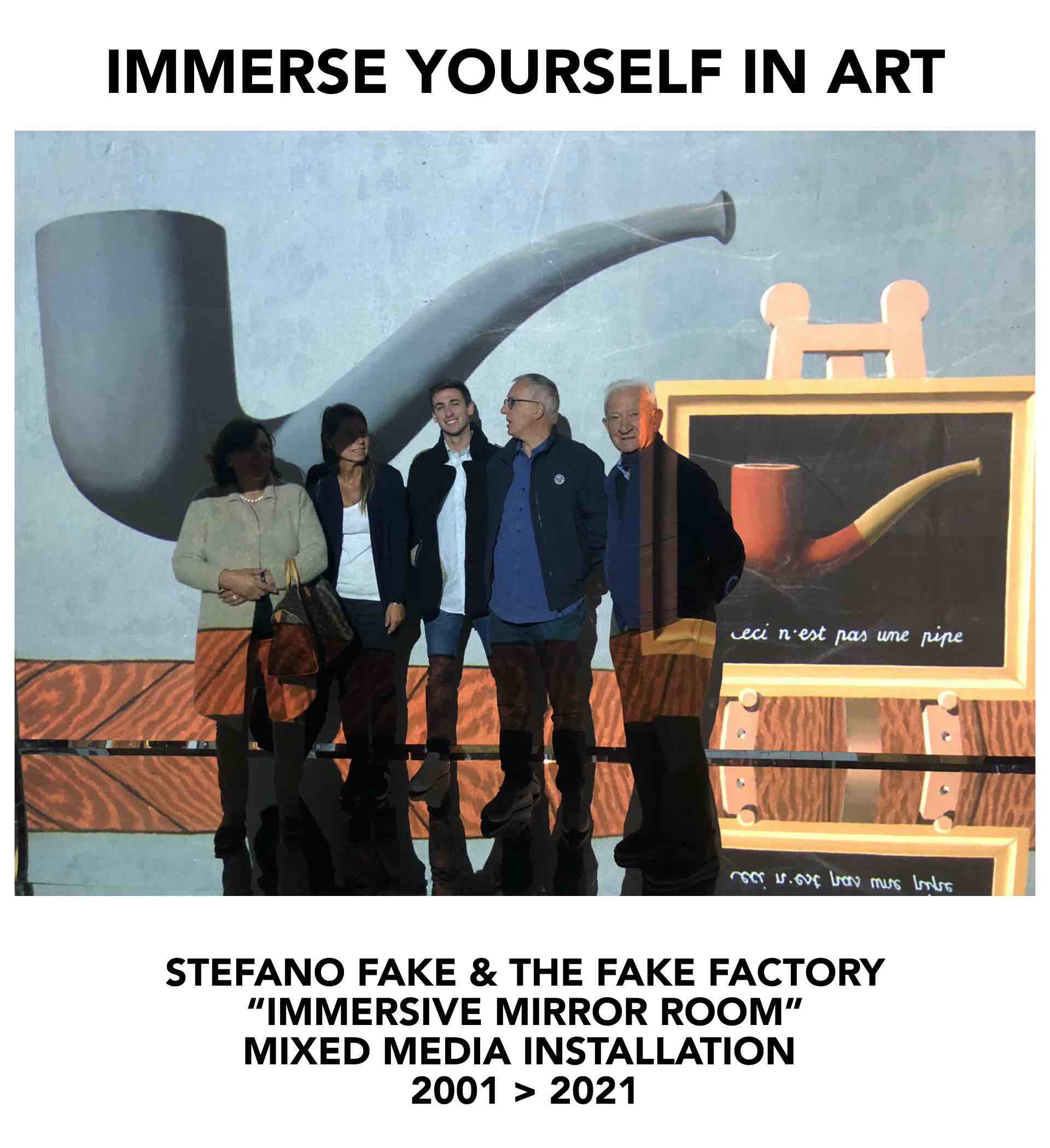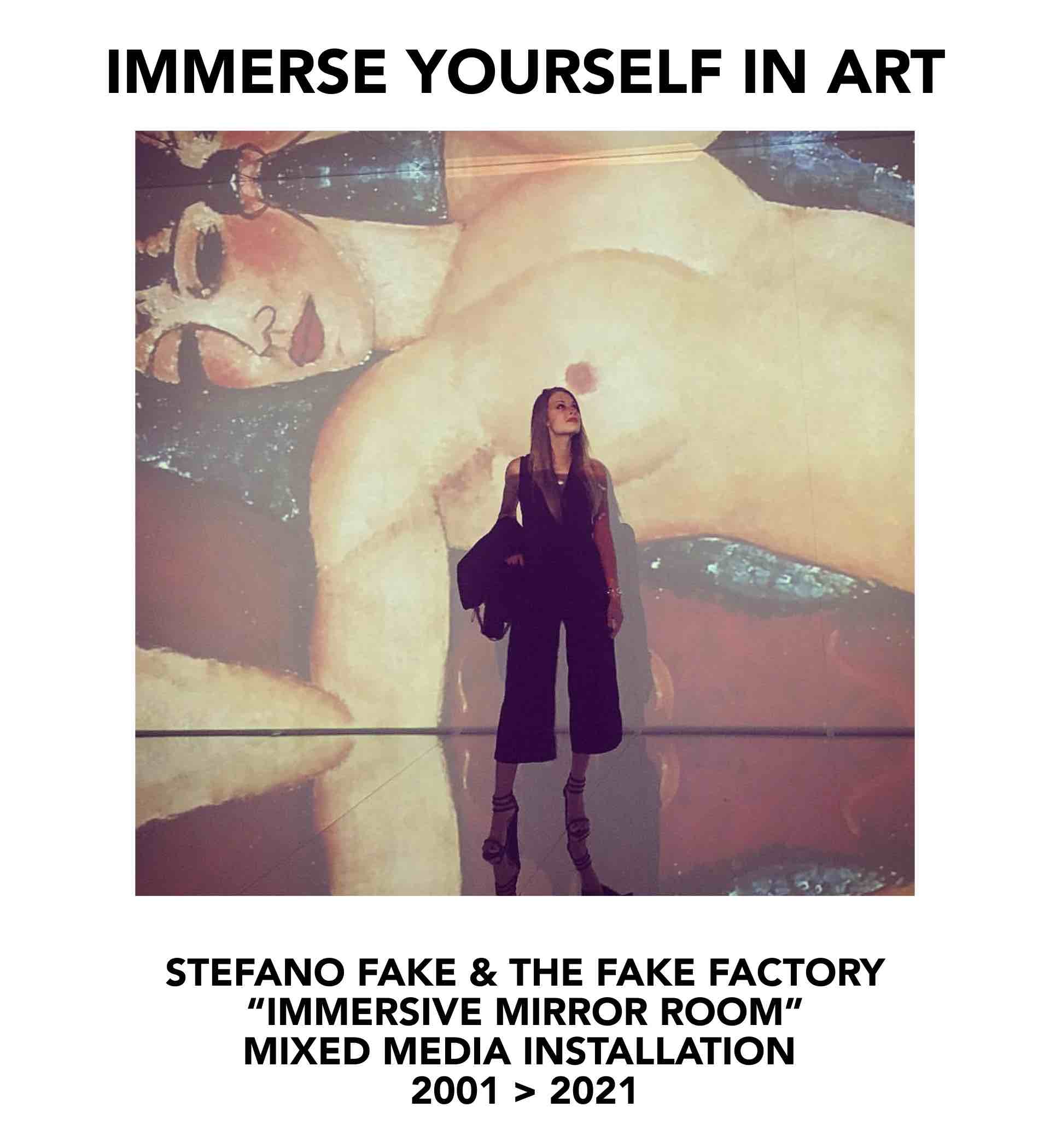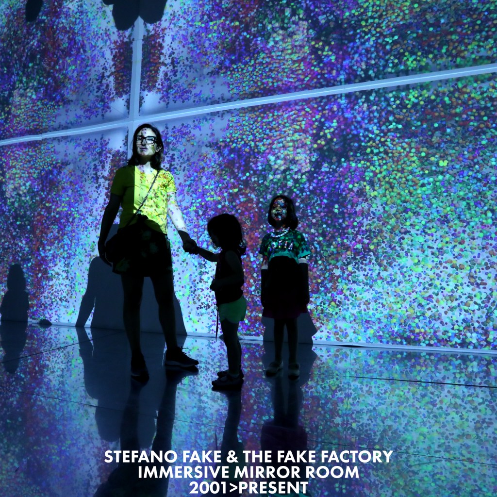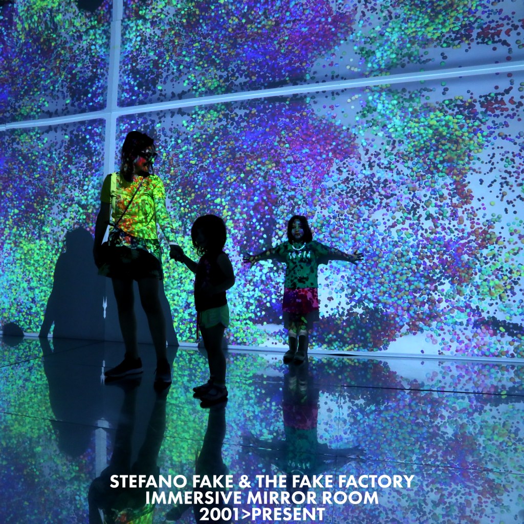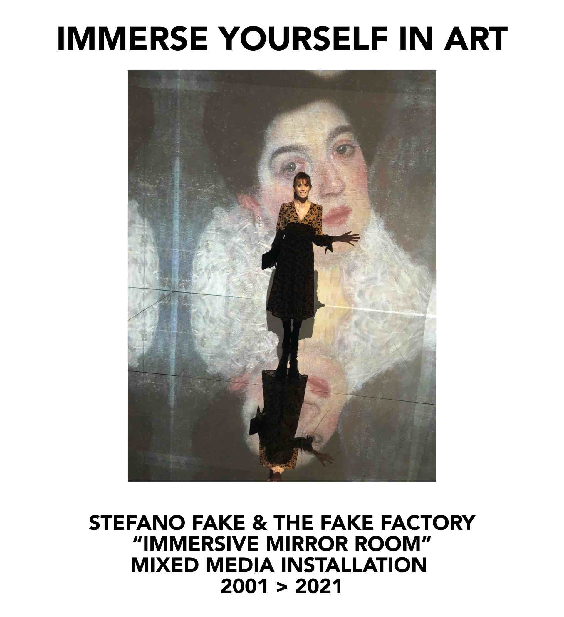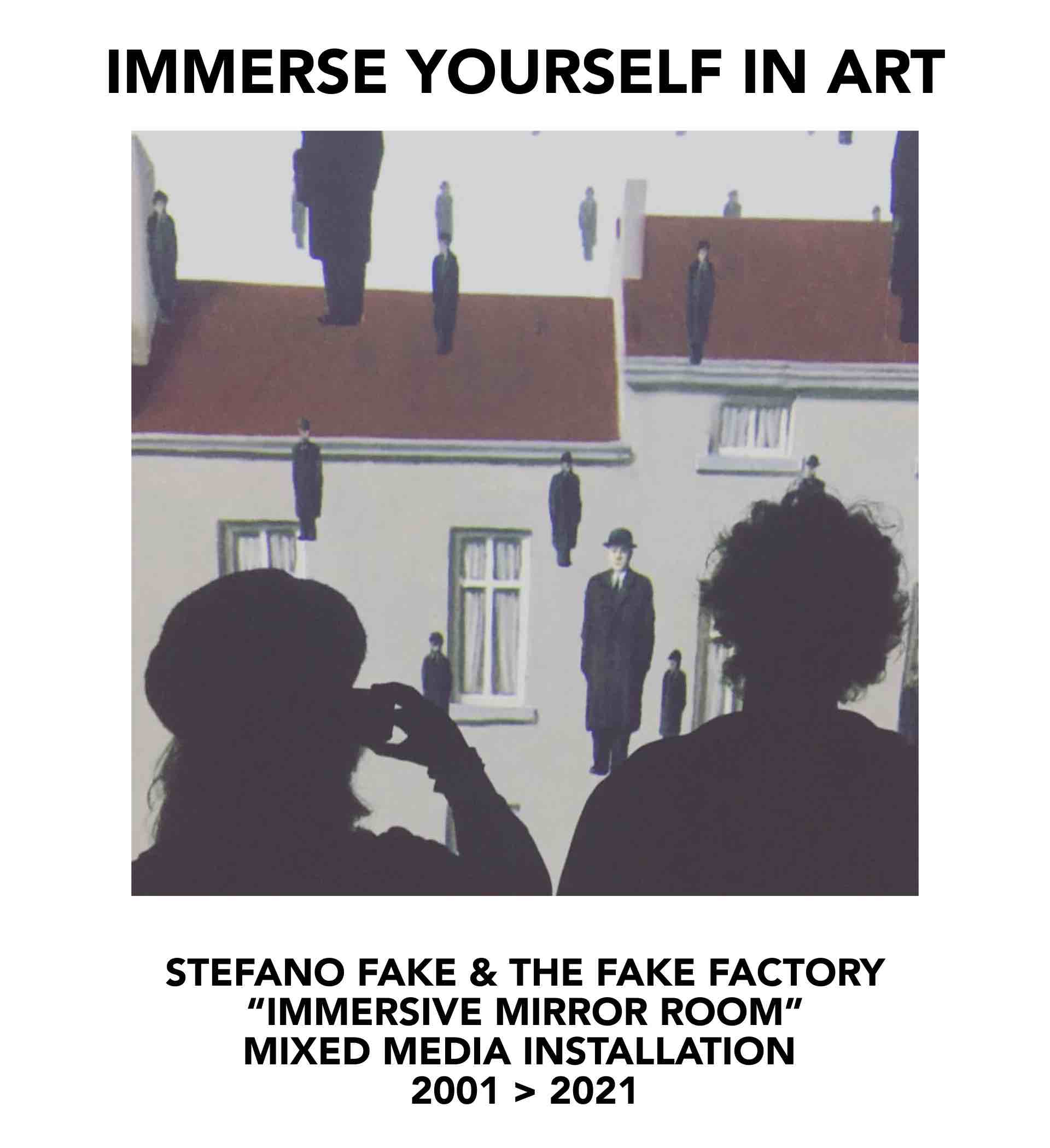 L’installazione “Immersive Mirror Room” è stata creata dall’artista italiano Stefano Fake nel 2001. Già nel 2001 ha iniziato a sviluppare stanze immersive, molto prima che il concetto diventasse una tendenza globale. Le sue immersive mirror rooms hanno attratto milioni di visitatori nel corso degli anni, contribuendo a definire il linguaggio dell’arte digitale e immersiva. Questa innovativa opera d’arte è stata esposta in varie forme sia in Italia che a livello internazionale, all’interno di festival, eventi e mostre innovative. Dal 2001 ad oggi, milioni di persone hanno visitato le immersive mirror rooms create da Stefano Fake & The Fake Factory.