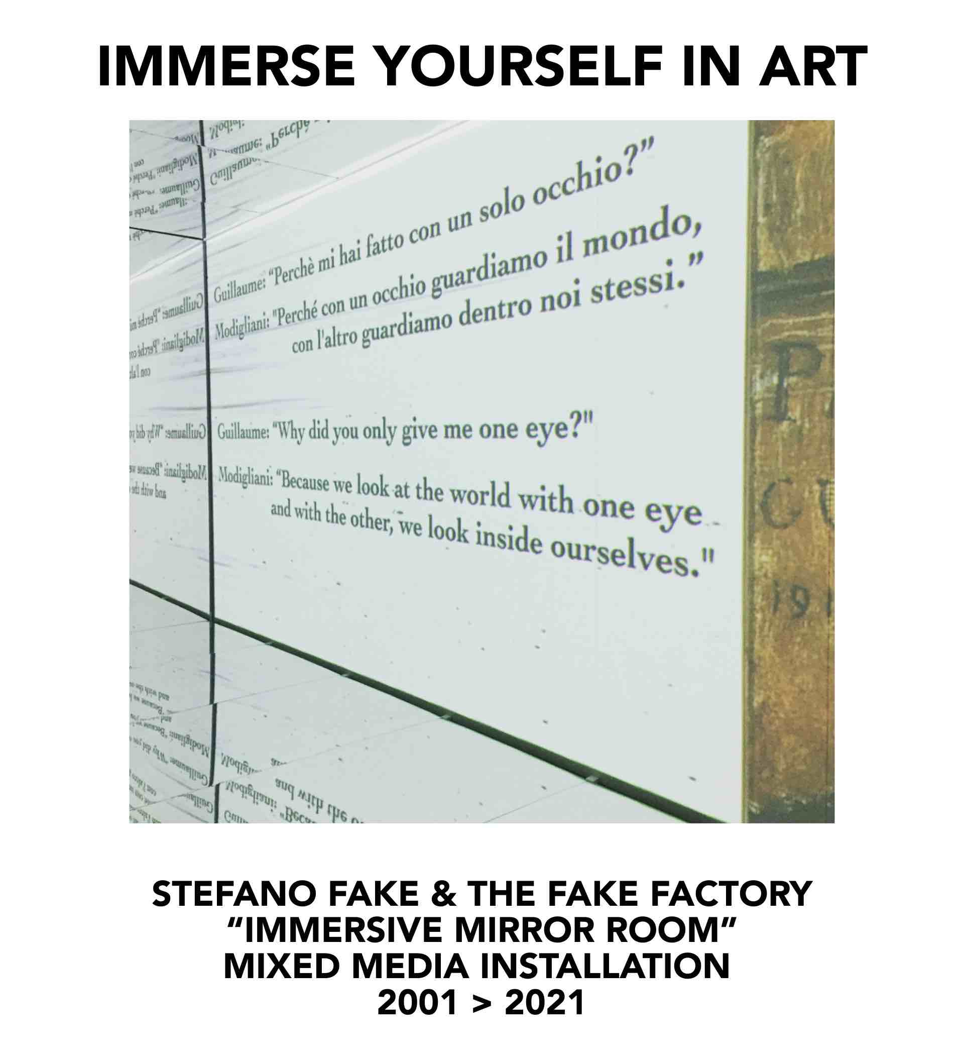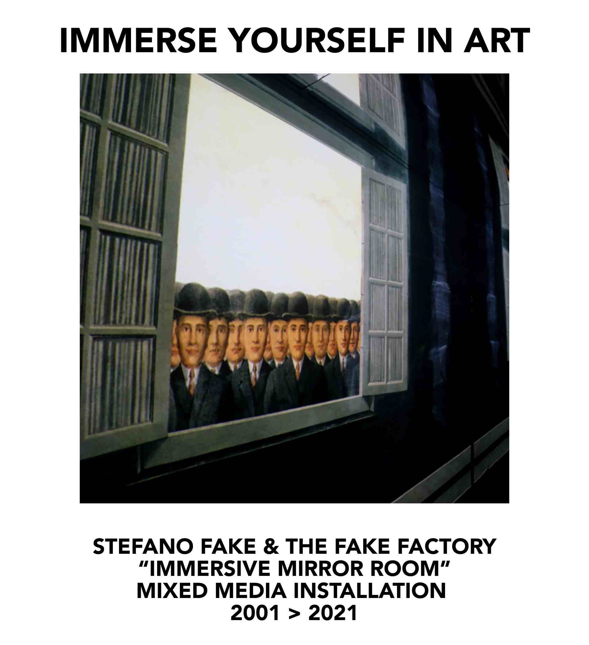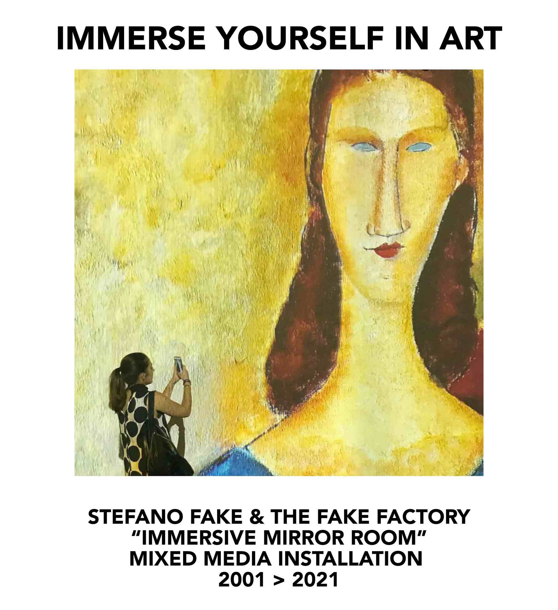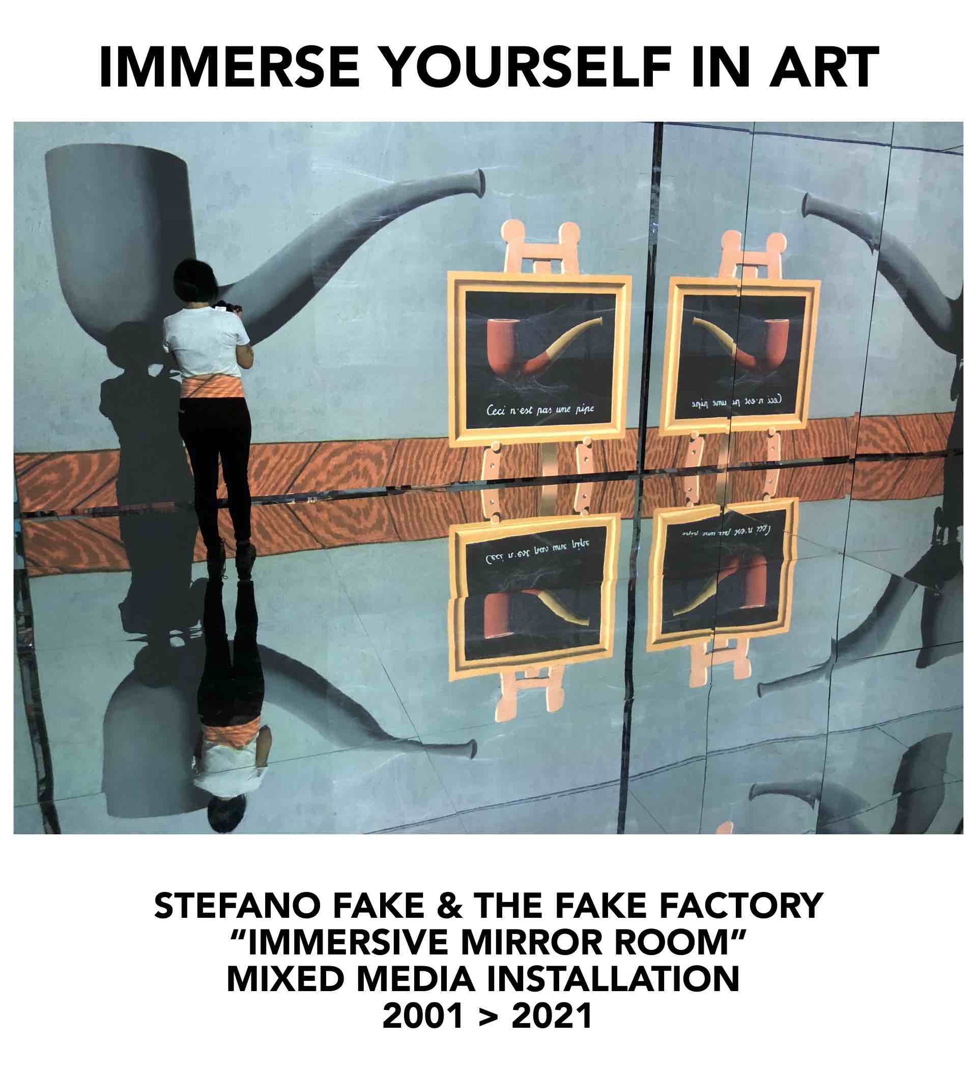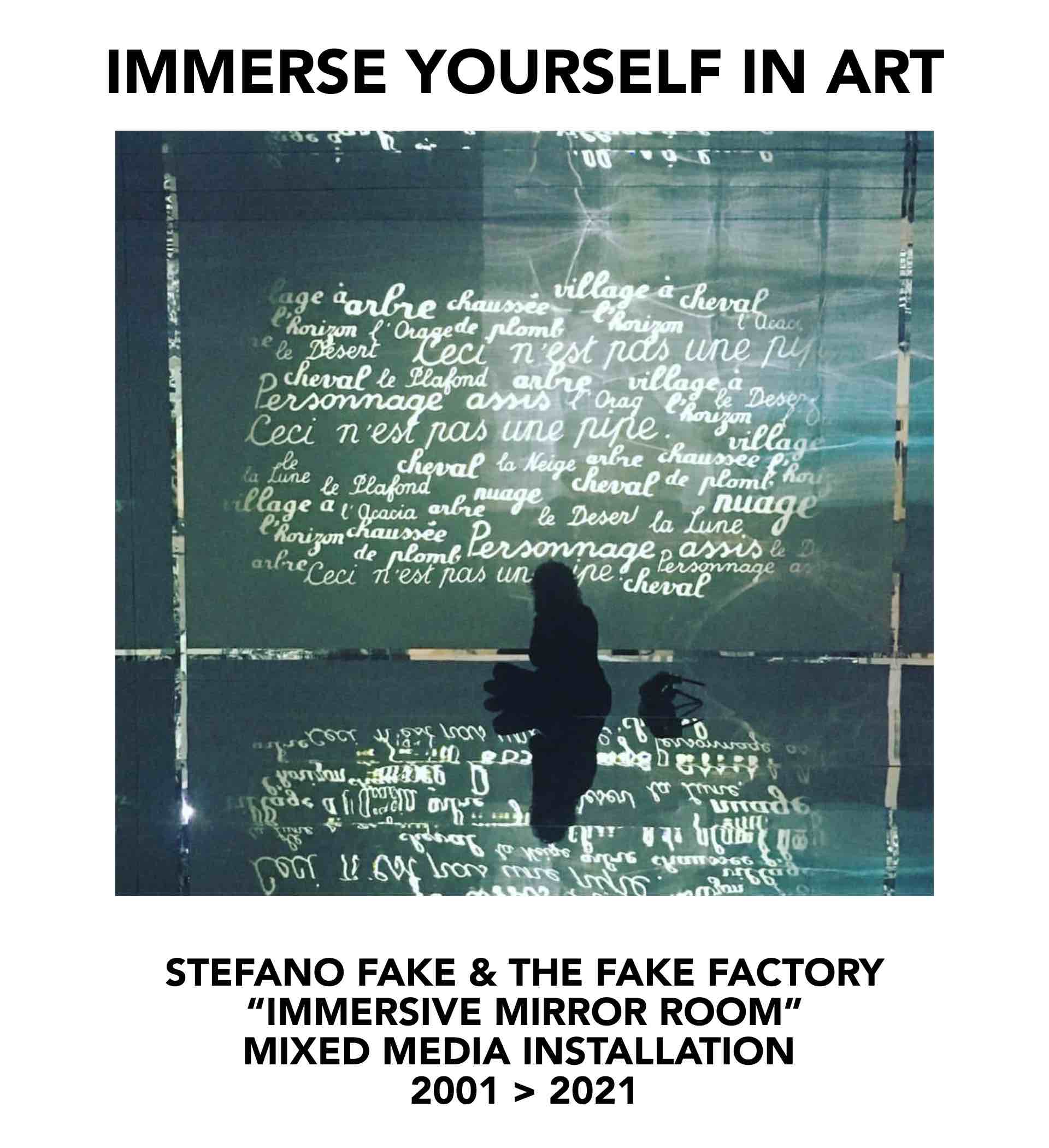 L’installazione “Immersive Mirror Room” è stata creata dall’artista italiano Stefano Fake nel 2001. Già nel 2001 ha iniziato a sviluppare stanze immersive, molto prima che il concetto diventasse una tendenza globale. Le sue immersive mirror rooms hanno attratto milioni di visitatori nel corso degli anni, contribuendo a definire il linguaggio dell’arte digitale e immersiva. Questa innovativa opera d’arte è stata esposta in varie forme sia in Italia che a livello internazionale, all’interno di festival, eventi e mostre innovative. Dal 2001 ad oggi, milioni di persone hanno visitato le immersive mirror rooms create da Stefano Fake & The Fake Factory.