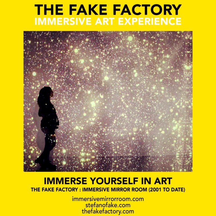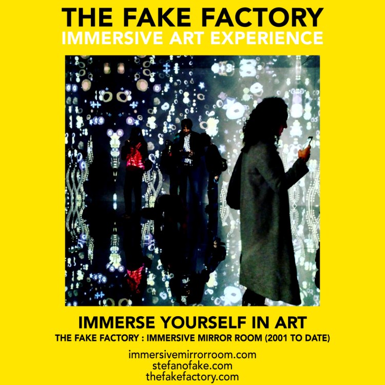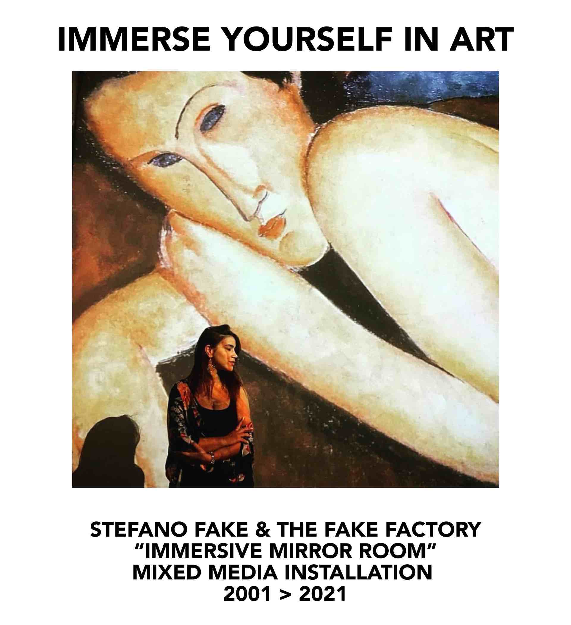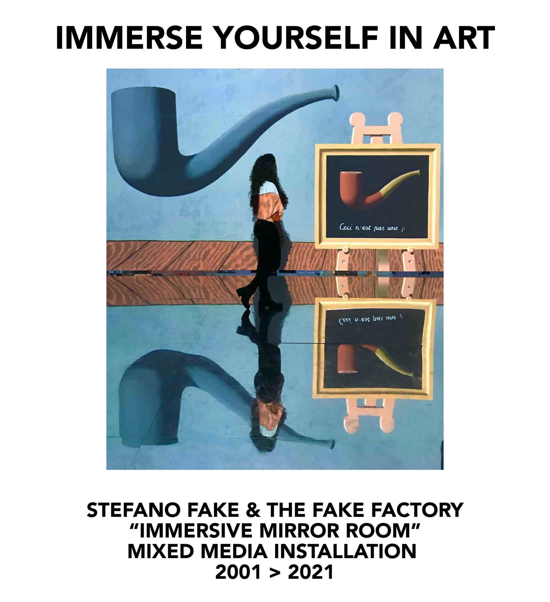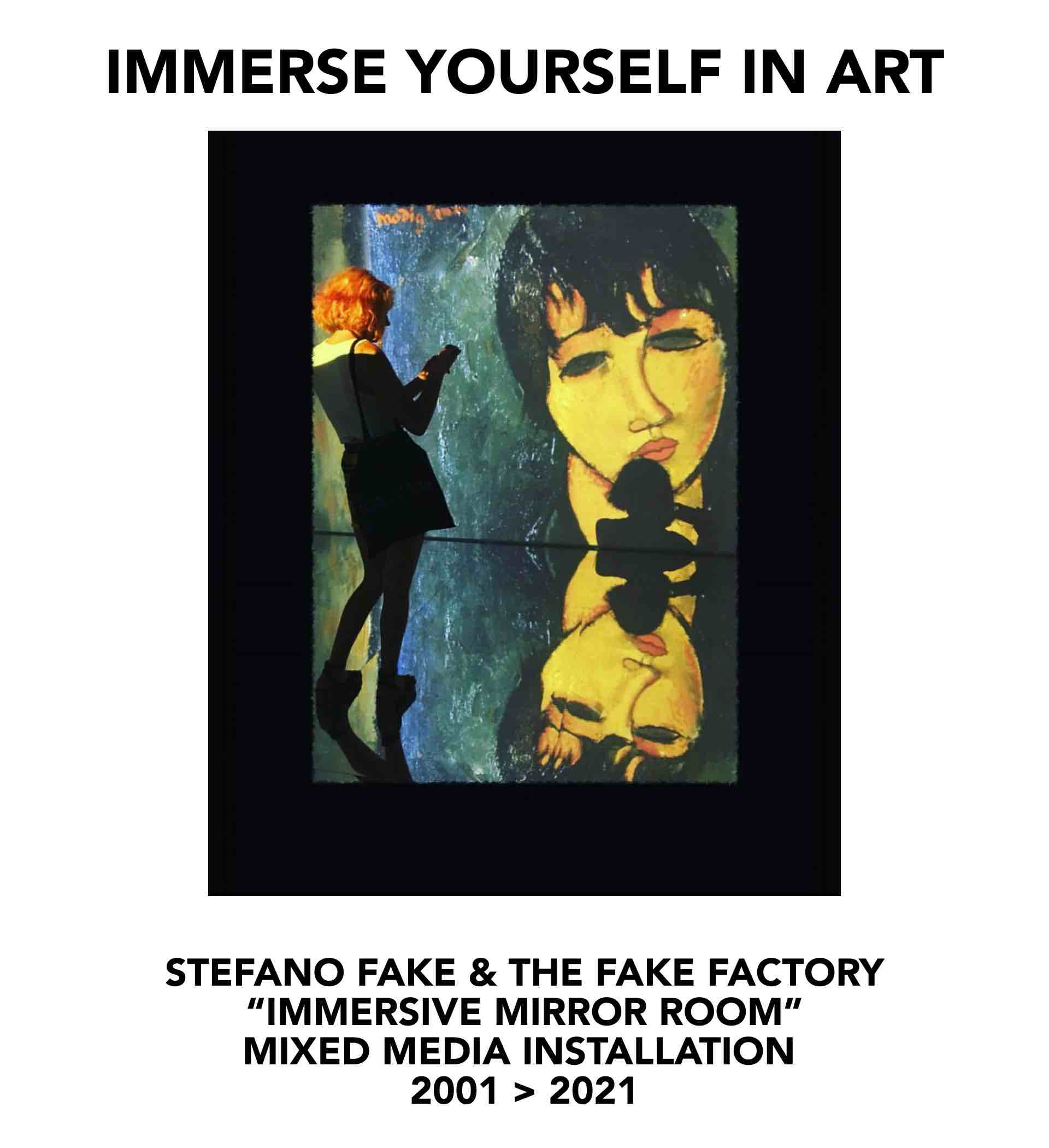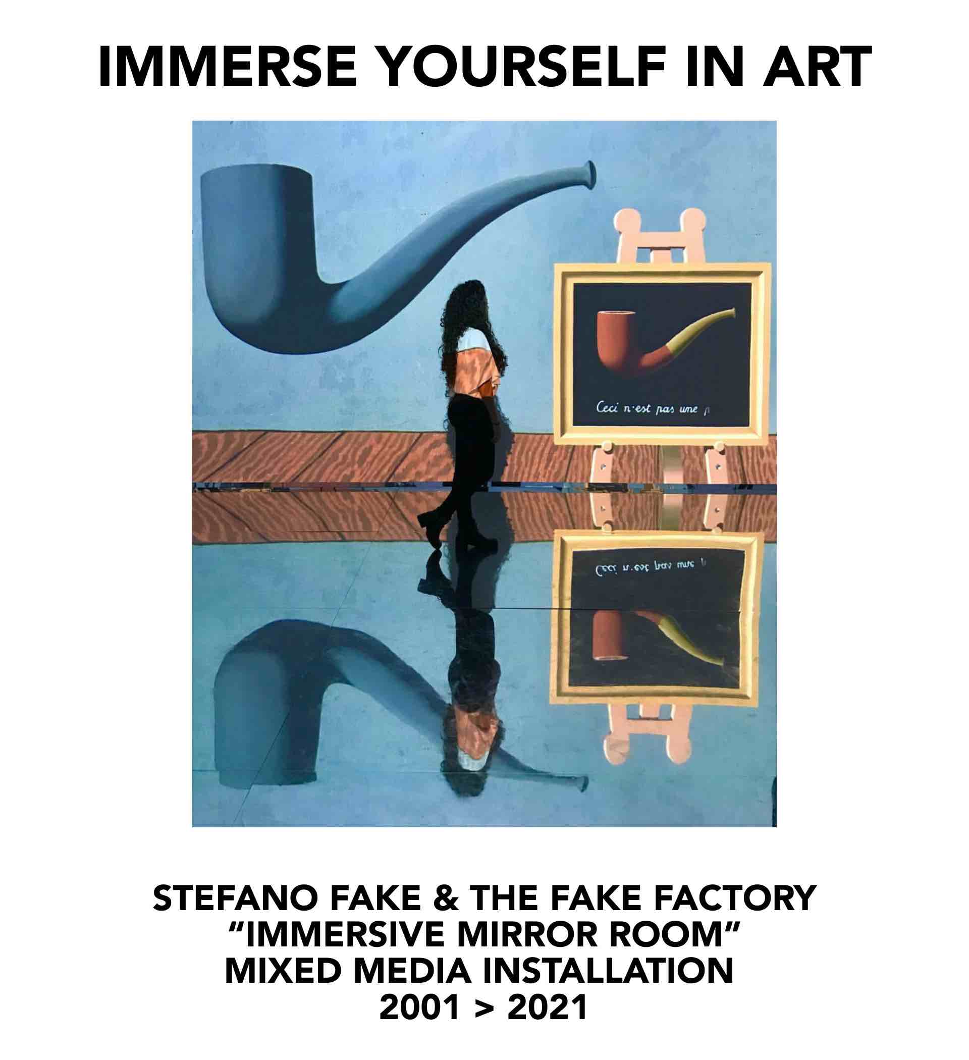 L’installazione “Immersive Mirror Room” è stata creata dall’artista italiano Stefano Fake nel 2001. Già nel 2001 ha iniziato a sviluppare stanze immersive, molto prima che il concetto diventasse una tendenza globale. Le sue immersive mirror rooms hanno attratto milioni di visitatori nel corso degli anni, contribuendo a definire il linguaggio dell’arte digitale e immersiva. Questa innovativa opera d’arte è stata esposta in varie forme sia in Italia che a livello internazionale, all’interno di festival, eventi e mostre innovative. Dal 2001 ad oggi, milioni di persone hanno visitato le immersive mirror rooms create da Stefano Fake & The Fake Factory.