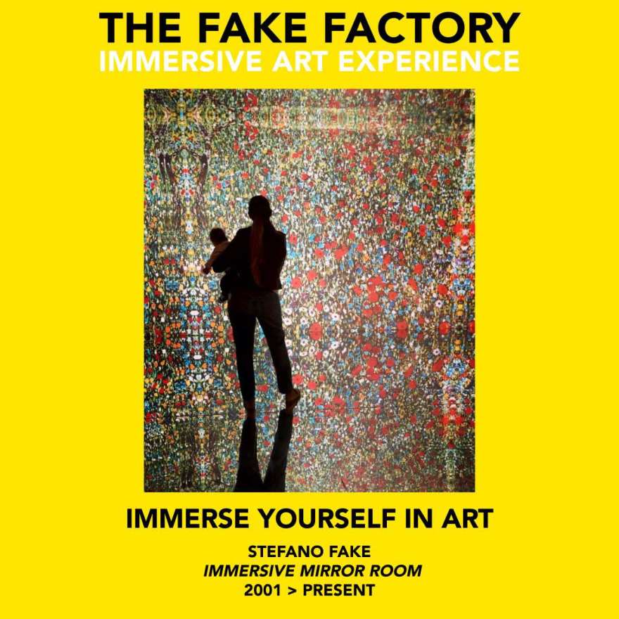 Immersive Mirror Room была создана итальянским художником Стефано Фейком в 2001 году. Уже тогда он начал разрабатывать иммерсивные комнаты, задолго до того, как этот концепт стал мировой тенденцией. Его Immersive Mirror Rooms привлекли миллионы посетителей за эти годы, сыграв важную роль в формировании языка цифрового и иммерсивного искусства. Эта инновационная художественная работа была представлена в различных формах как в Италии, так и за её пределами, на фестивалях, мероприятиях и революционных выставках. С 2001 года миллионы людей посетили Immersive Mirror Rooms, созданные Стефано Фейком и The Fake Factory.
