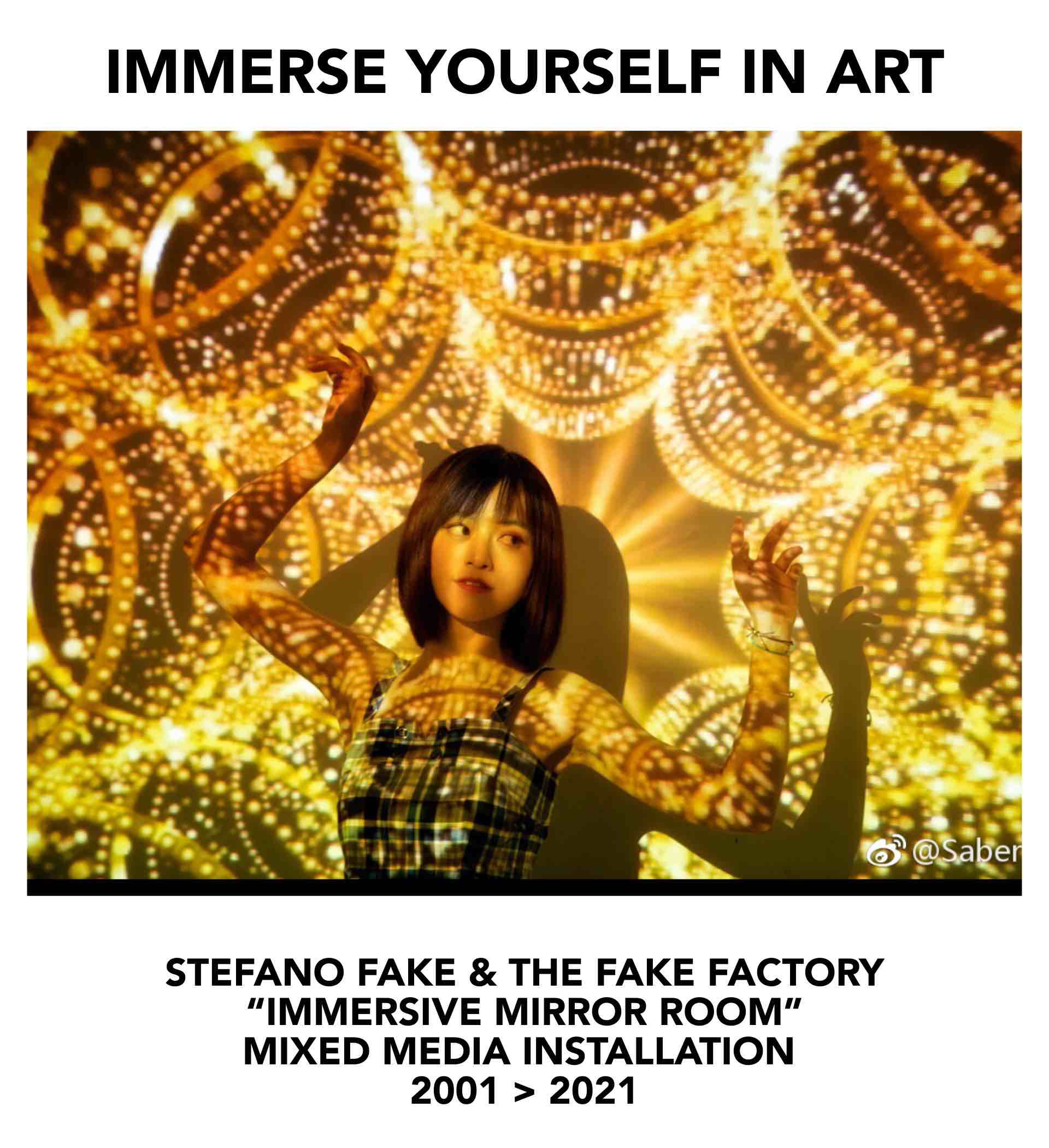 Immersive Mirror Room 由意大利艺术家斯特凡诺·费克于2001年创作。他早在2001年就开始研究沉浸式空间的构建,比这一概念成为全球趋势还要早很多年。他的 Immersive Mirror Room 在这些年间吸引了数百万游客,帮助塑造了数字艺术和沉浸式艺术的表达方式。这件创新艺术作品已在意大利及全球多个艺术节、活动和展览中以不同形式呈现。自2001年至今,数百万观众亲身体验了斯特凡诺·费克及 The Fake Factory 创作的 Immersive Mirror Room。